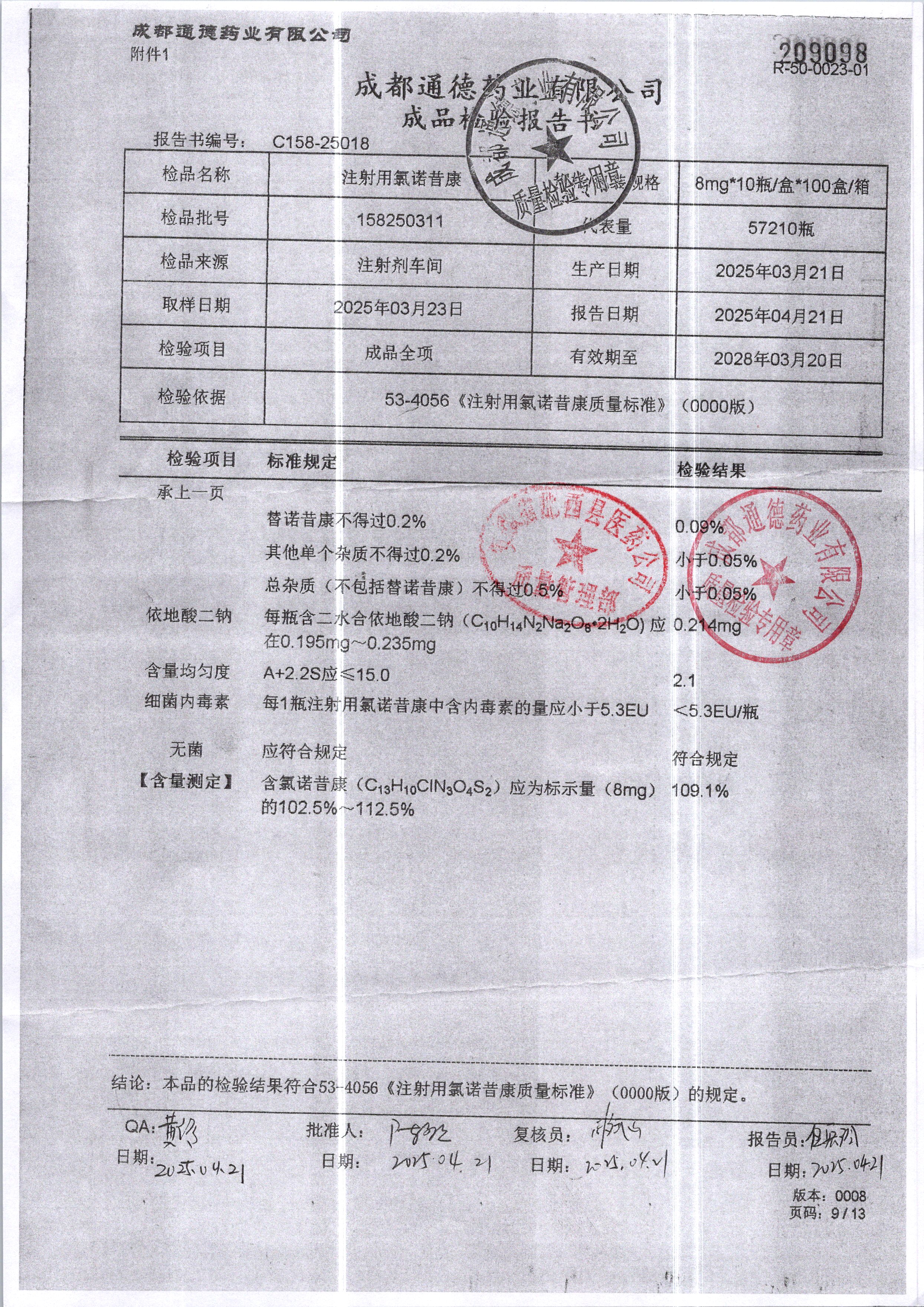 注射用氯諾昔康 8mg 158250311 查看詳情