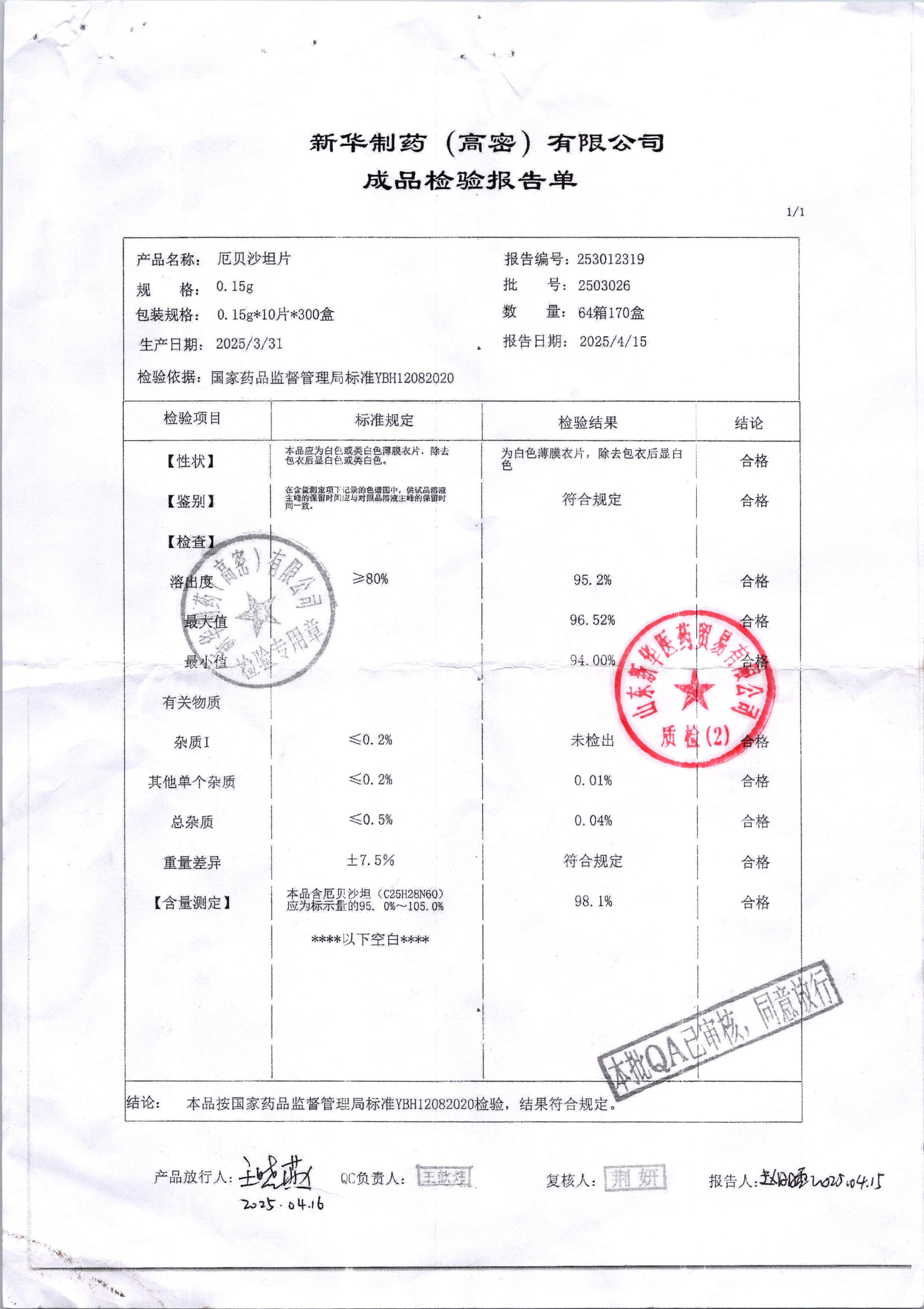 厄貝沙坦片 0.15g*10片 2503026 查看詳情