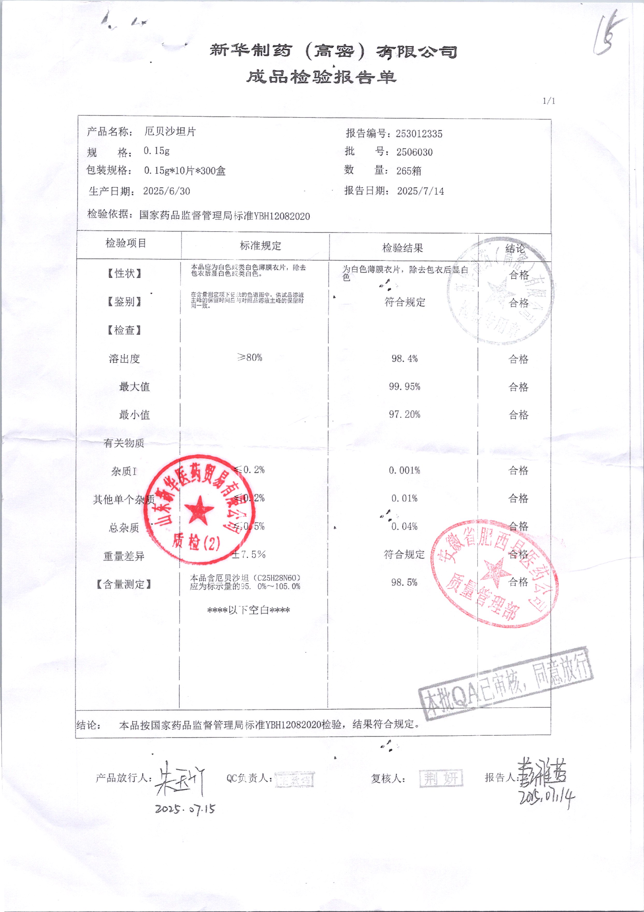厄貝沙坦片 0.15g*10片 2405014 查看詳情