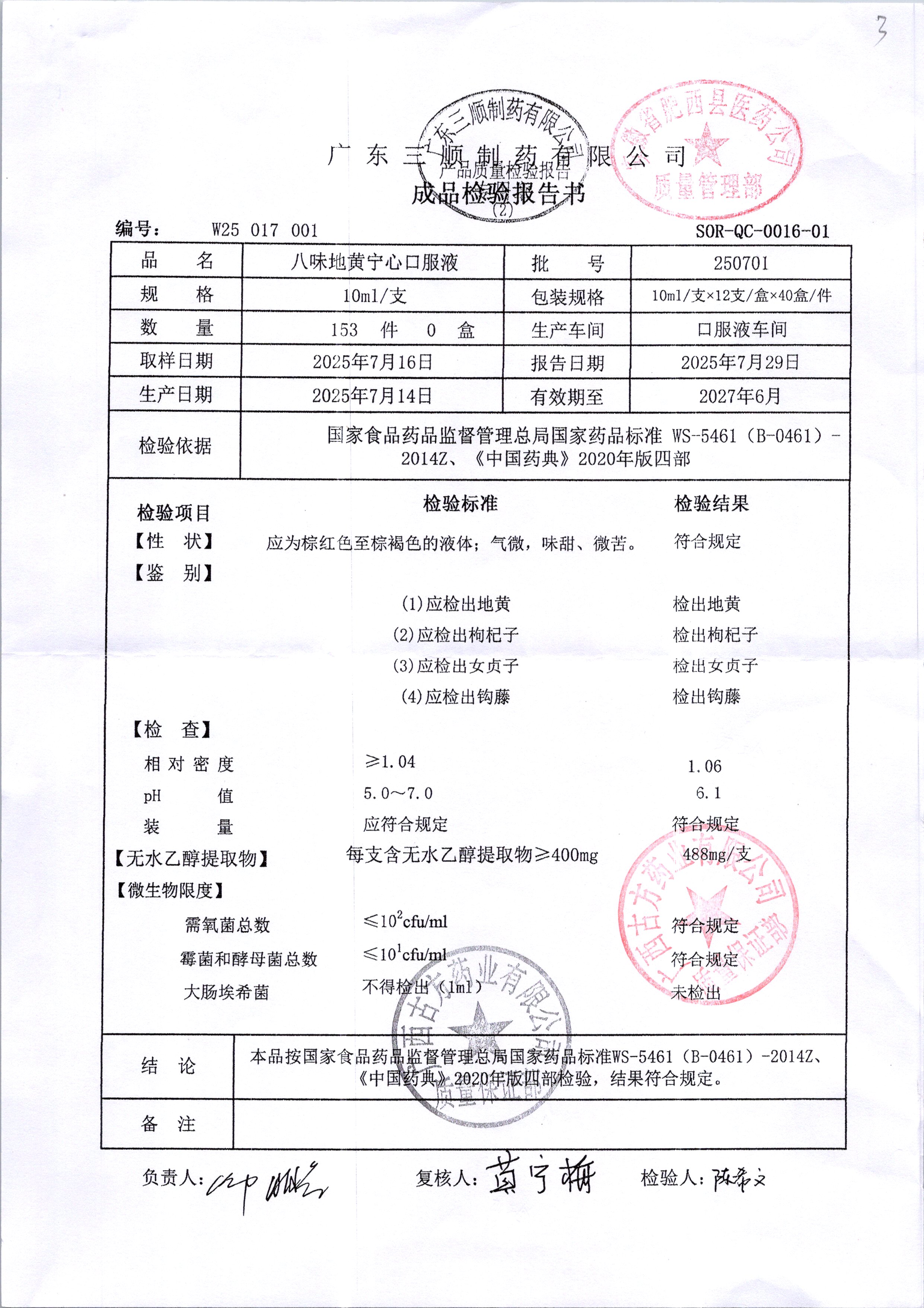 八味地黃寧心口服液 10ml*12支 20231003 查看詳情