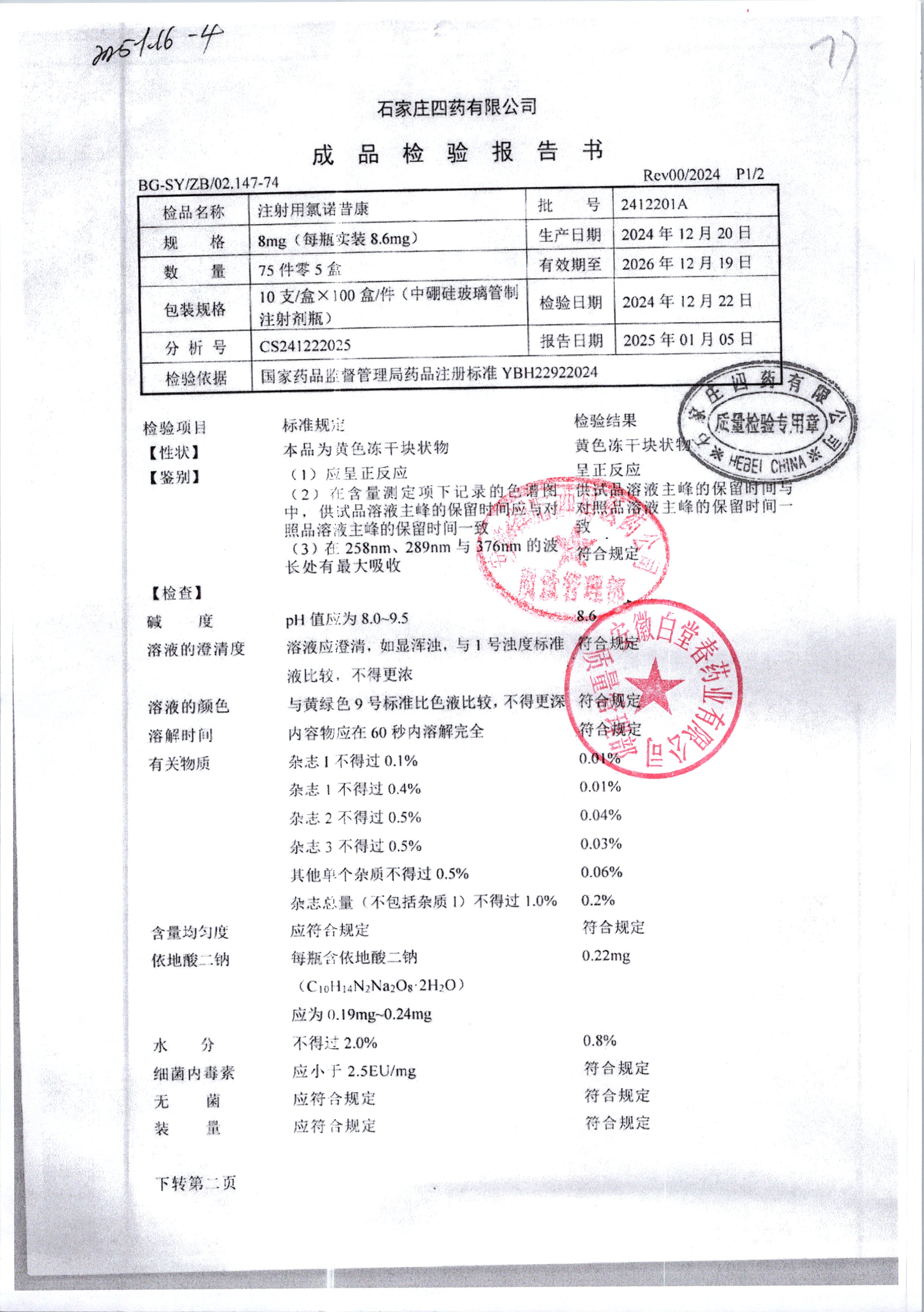 注射用氯諾昔康 8mg*10支 2412201A 查看詳情