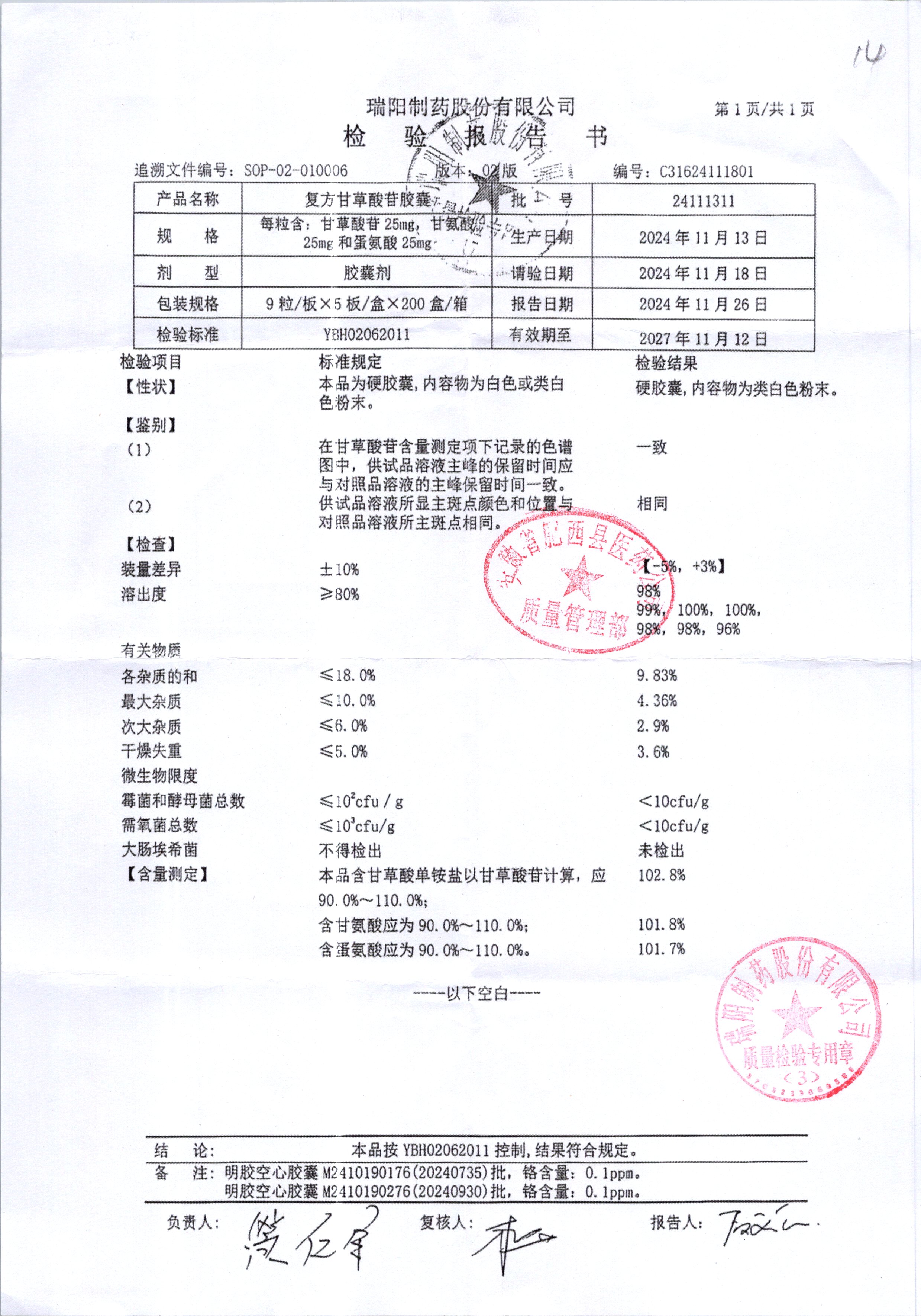 | 復方甘草酸苷膠囊 | 25mg*45s | 24111311 | 查看詳情 |
