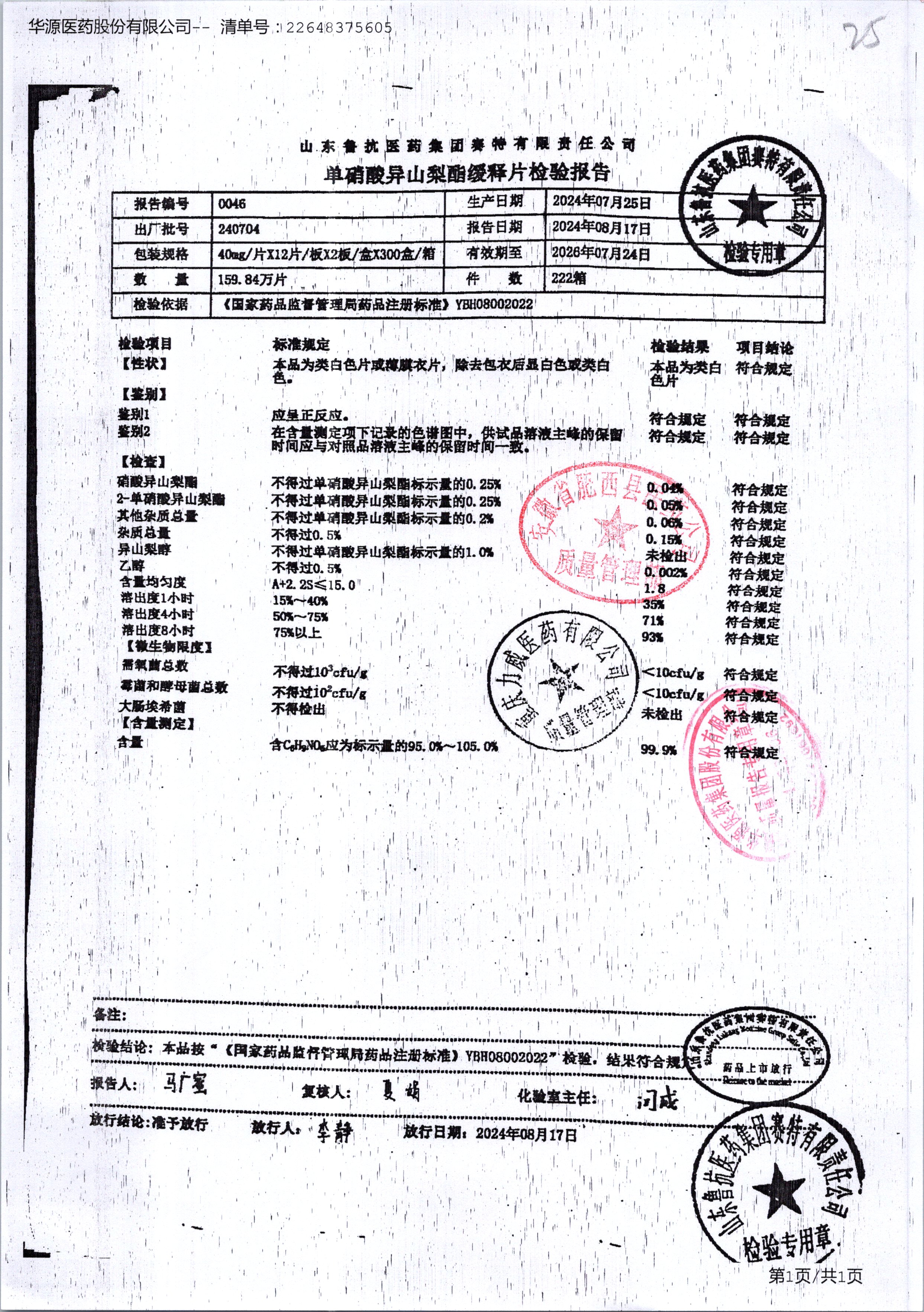 單硝酸異山梨酯緩釋片 40mg*12片*2板 240704 查看詳情