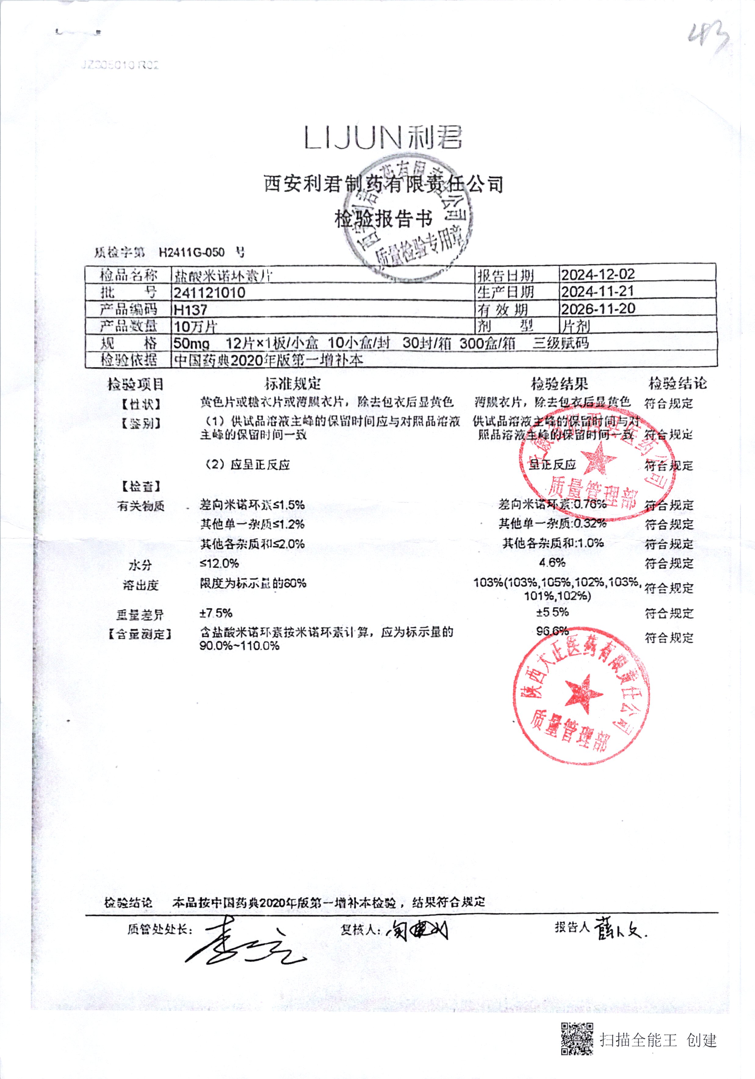 鹽酸米諾環素片 50mg*12片 241121010 查看詳情