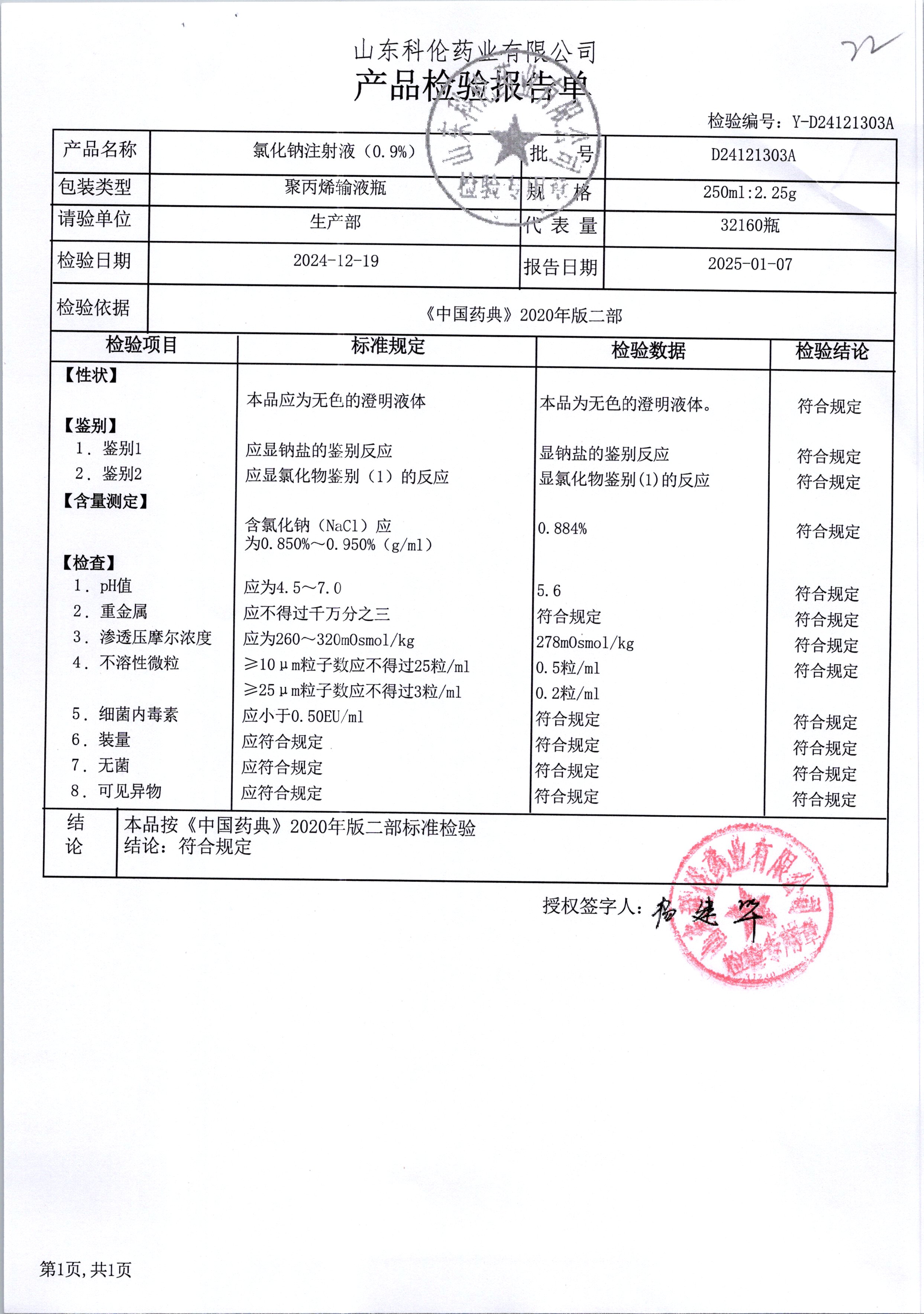 氯化鈉注射液 0.9% 250ml:2.25g D24121303A 查看詳情