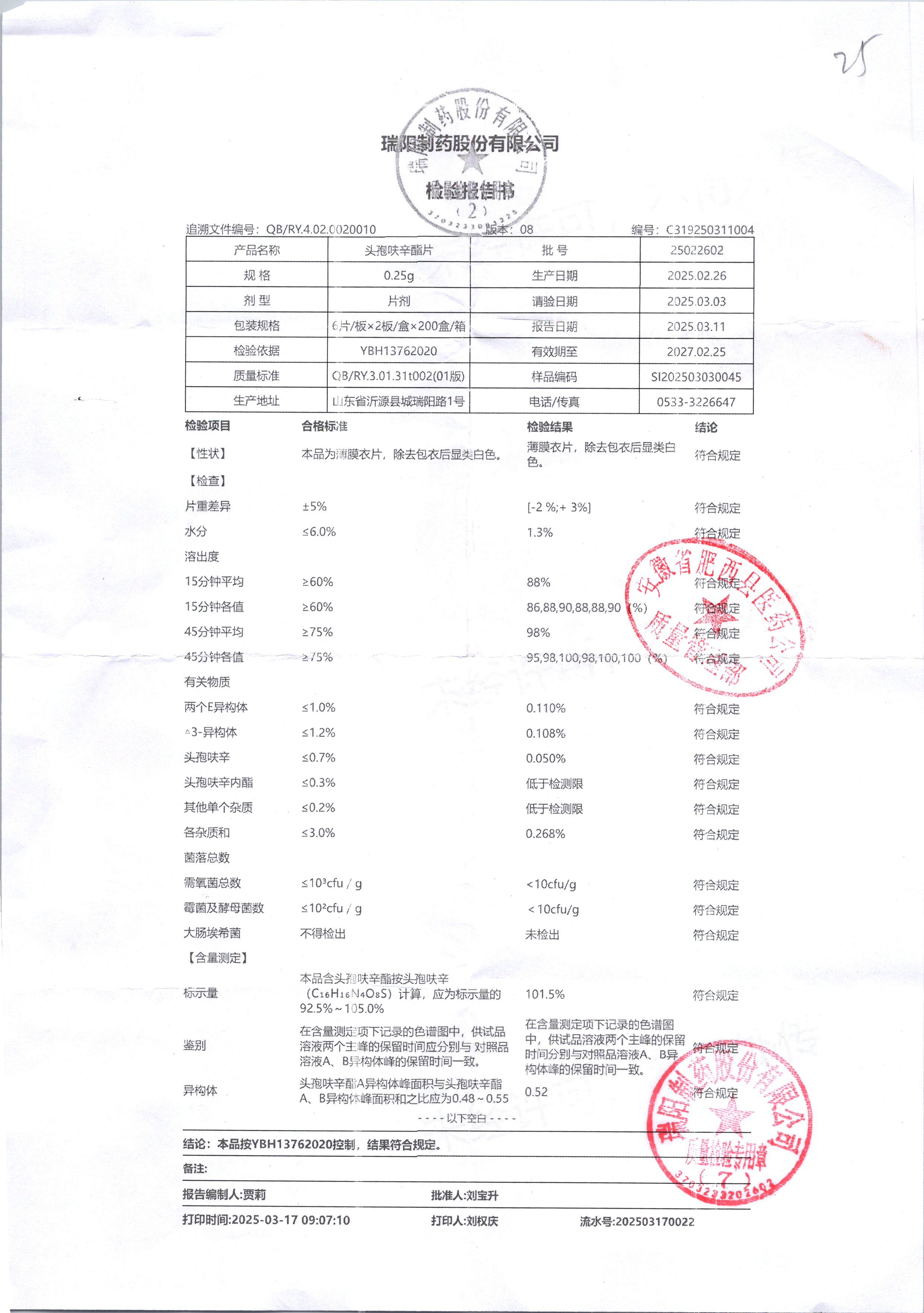 頭孢呋辛酯片 0.25g*12片 25022602 查看詳情