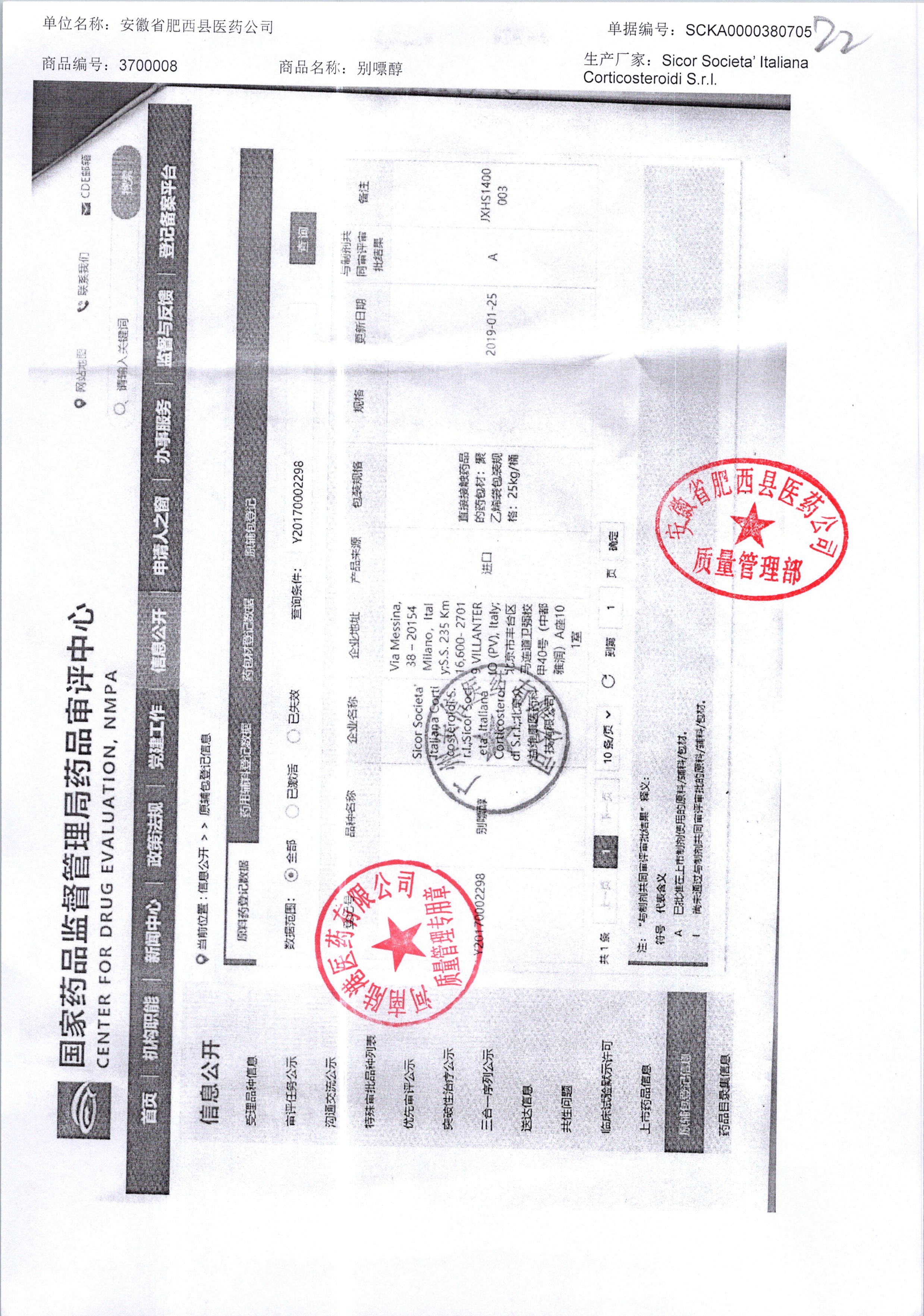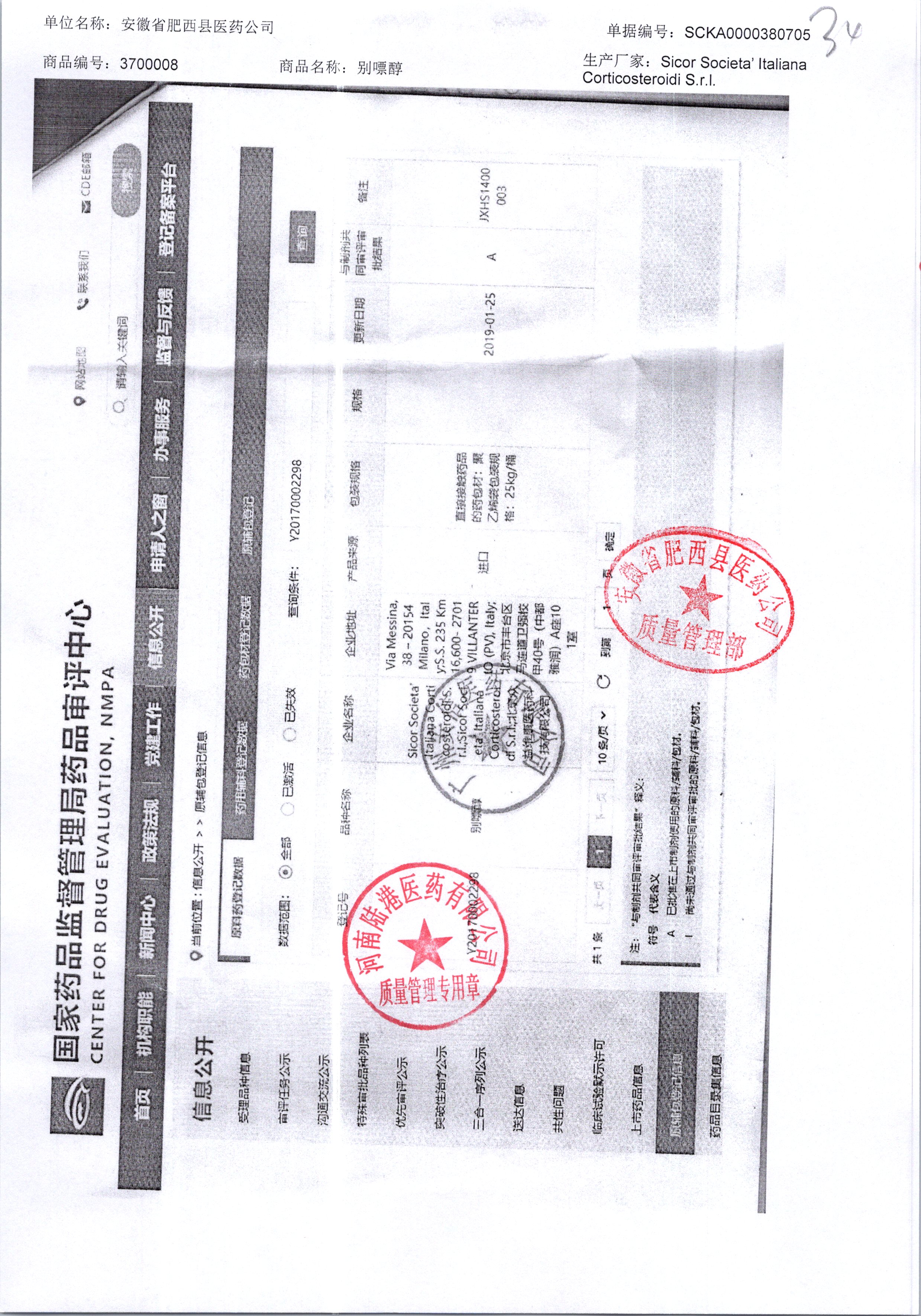 | 別嘌醇 | 25kg | 121207320/3 | 查看詳情 |