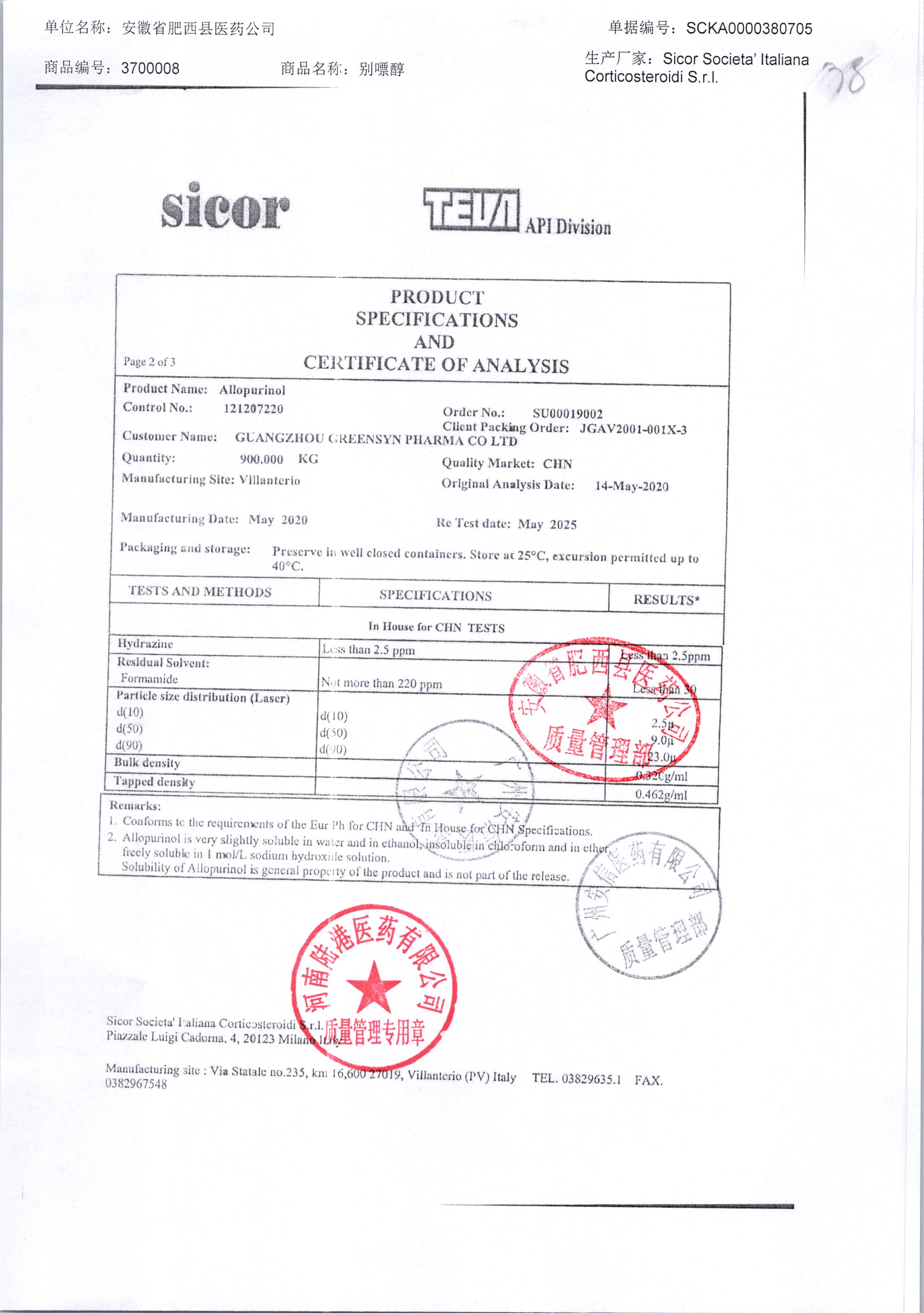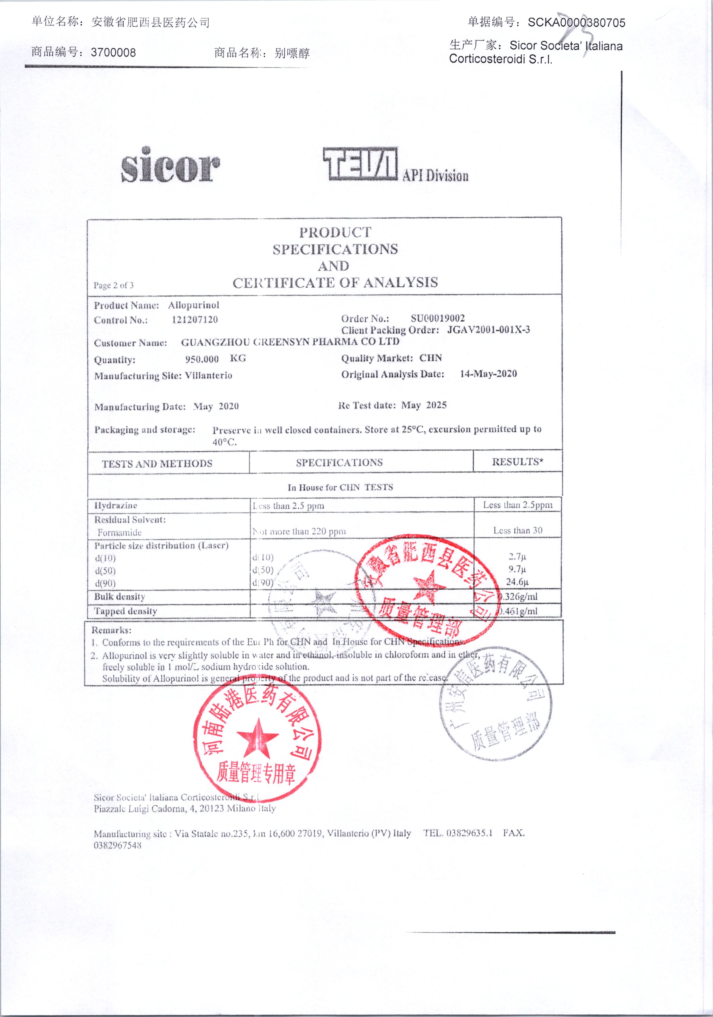 | 別嘌醇 | 25kg | 121207120/2 | 查看詳情 |