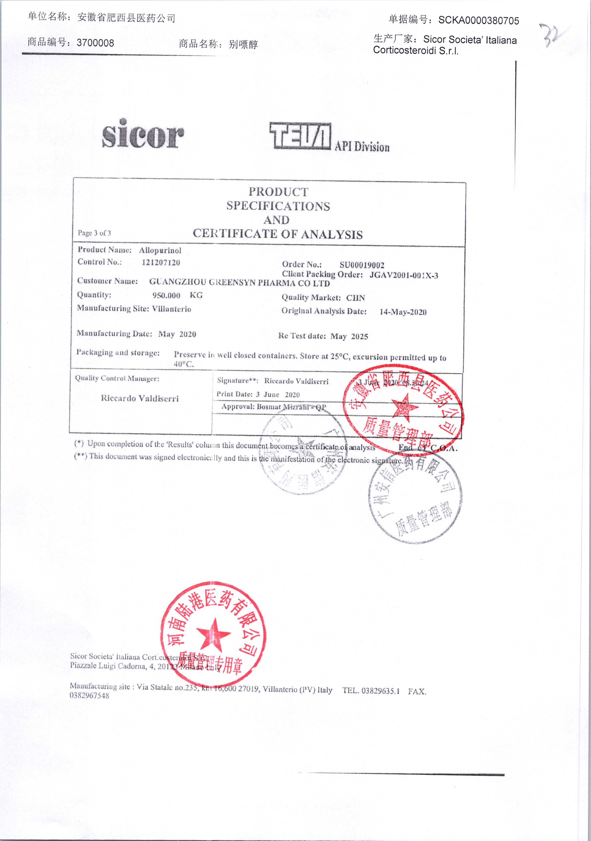 | 別嘌醇 | 25kg | 121207120/6 | 查看詳情 |