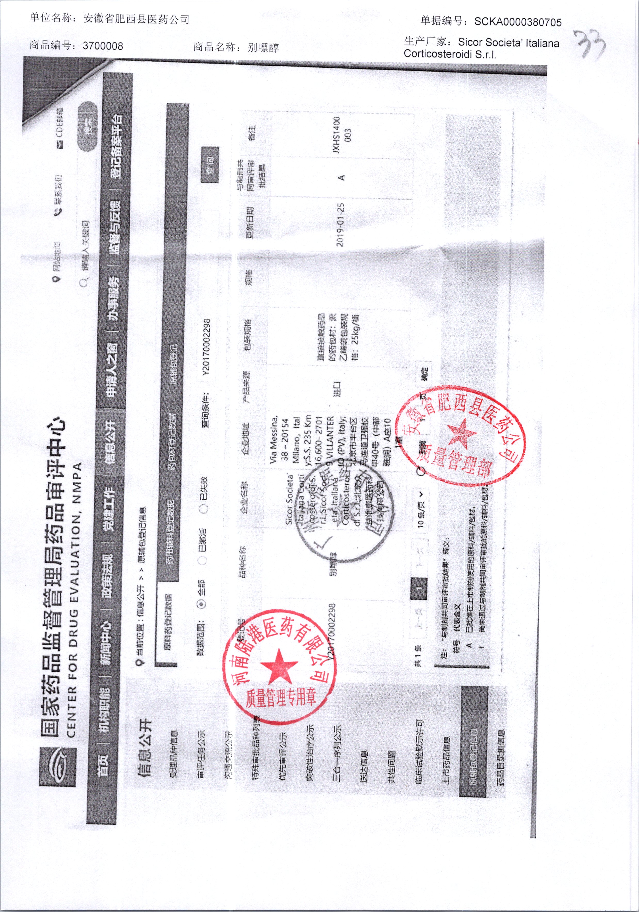 | 別嘌醇 | 25kg | 121207320/1 | 查看詳情 |