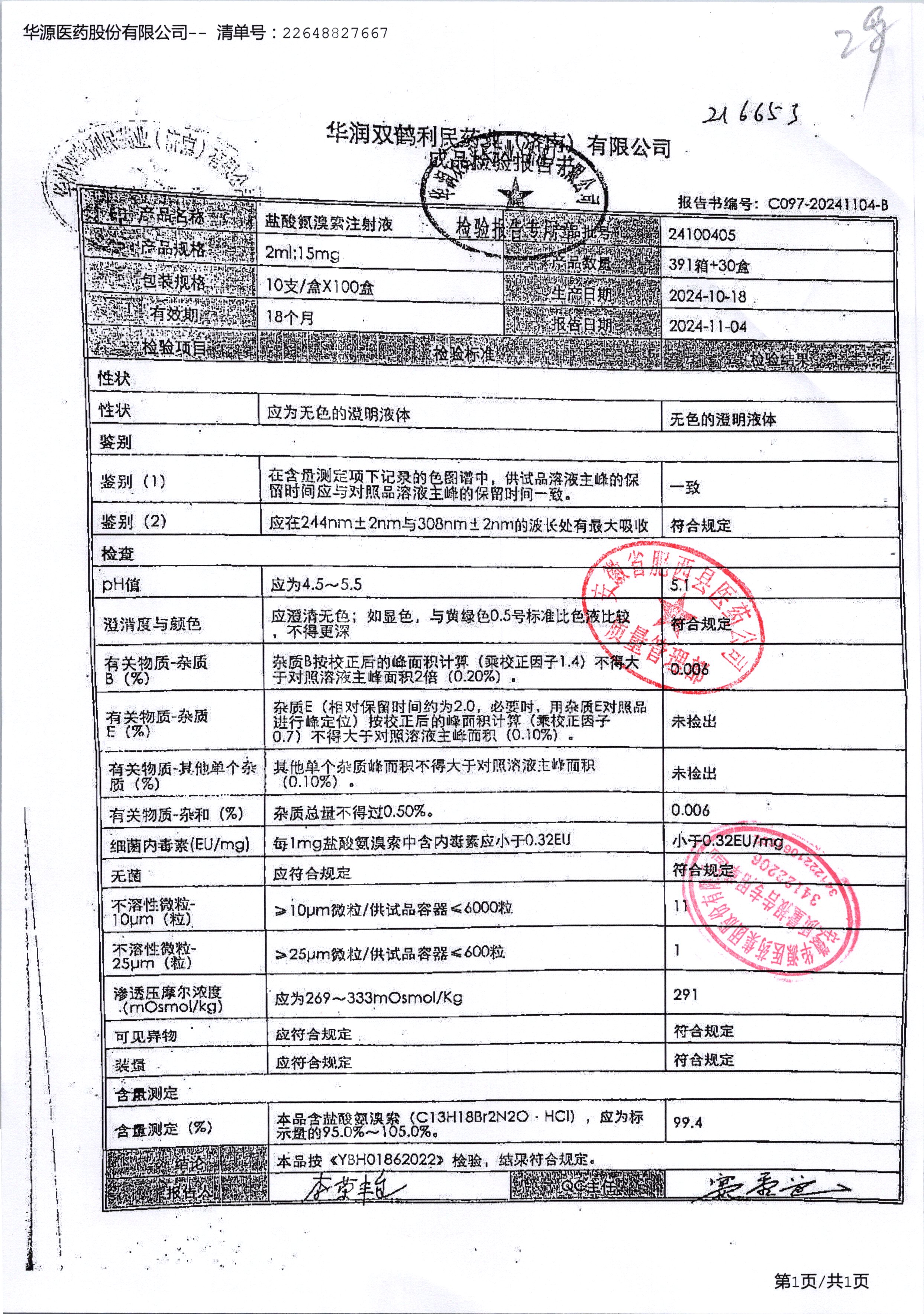 鹽酸氨溴索注射液 2ml:15mgl*10 24100405 查看詳情