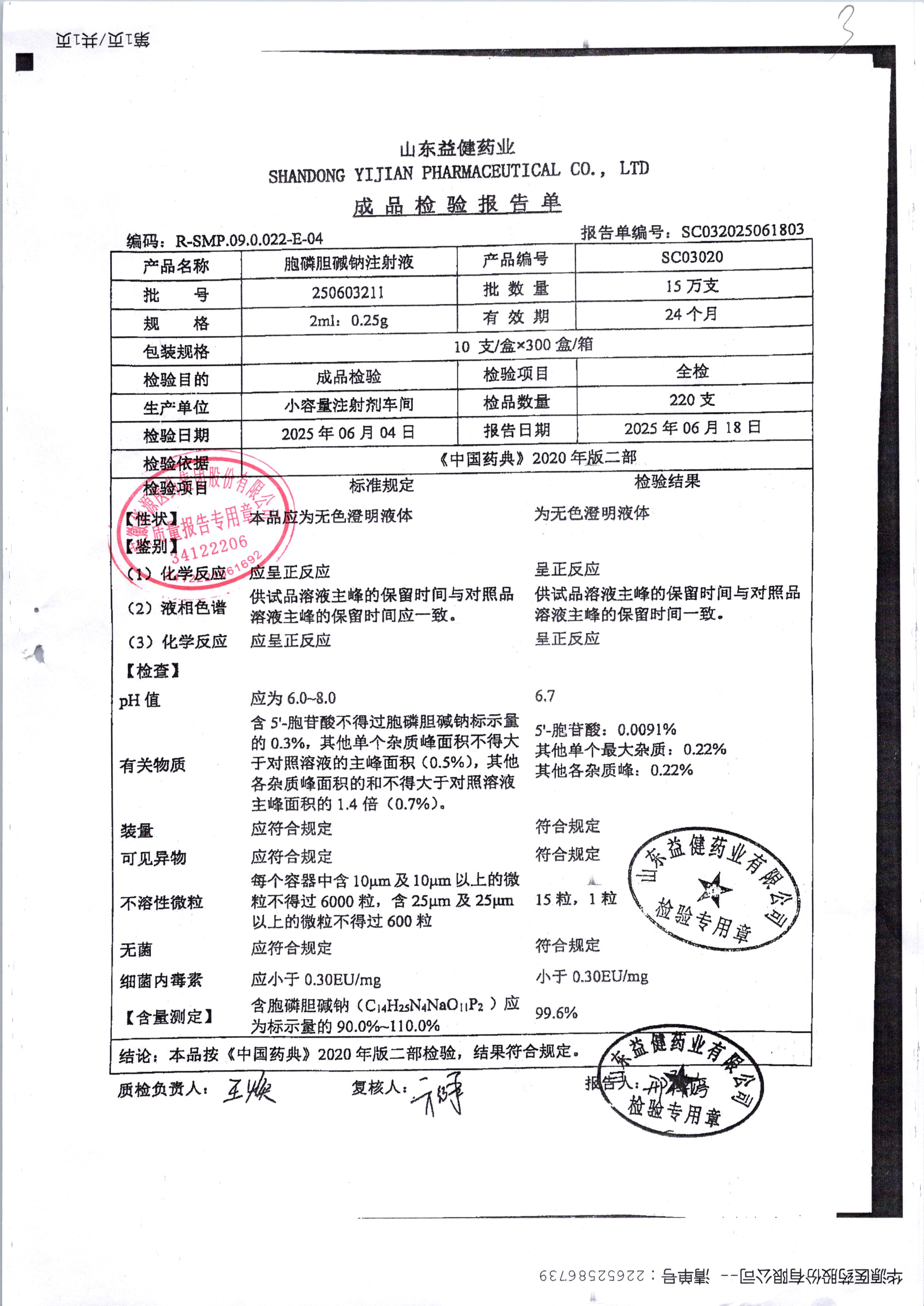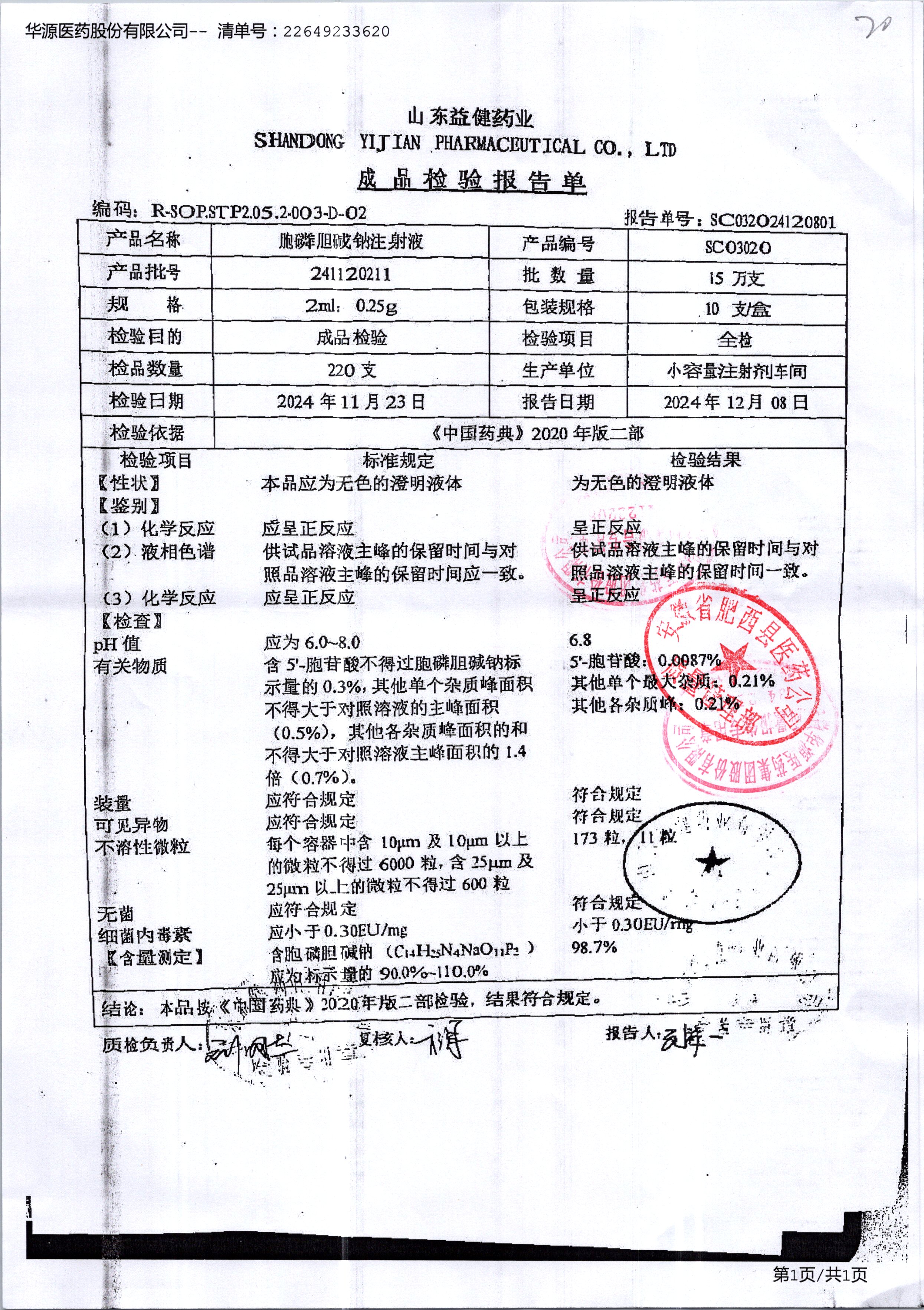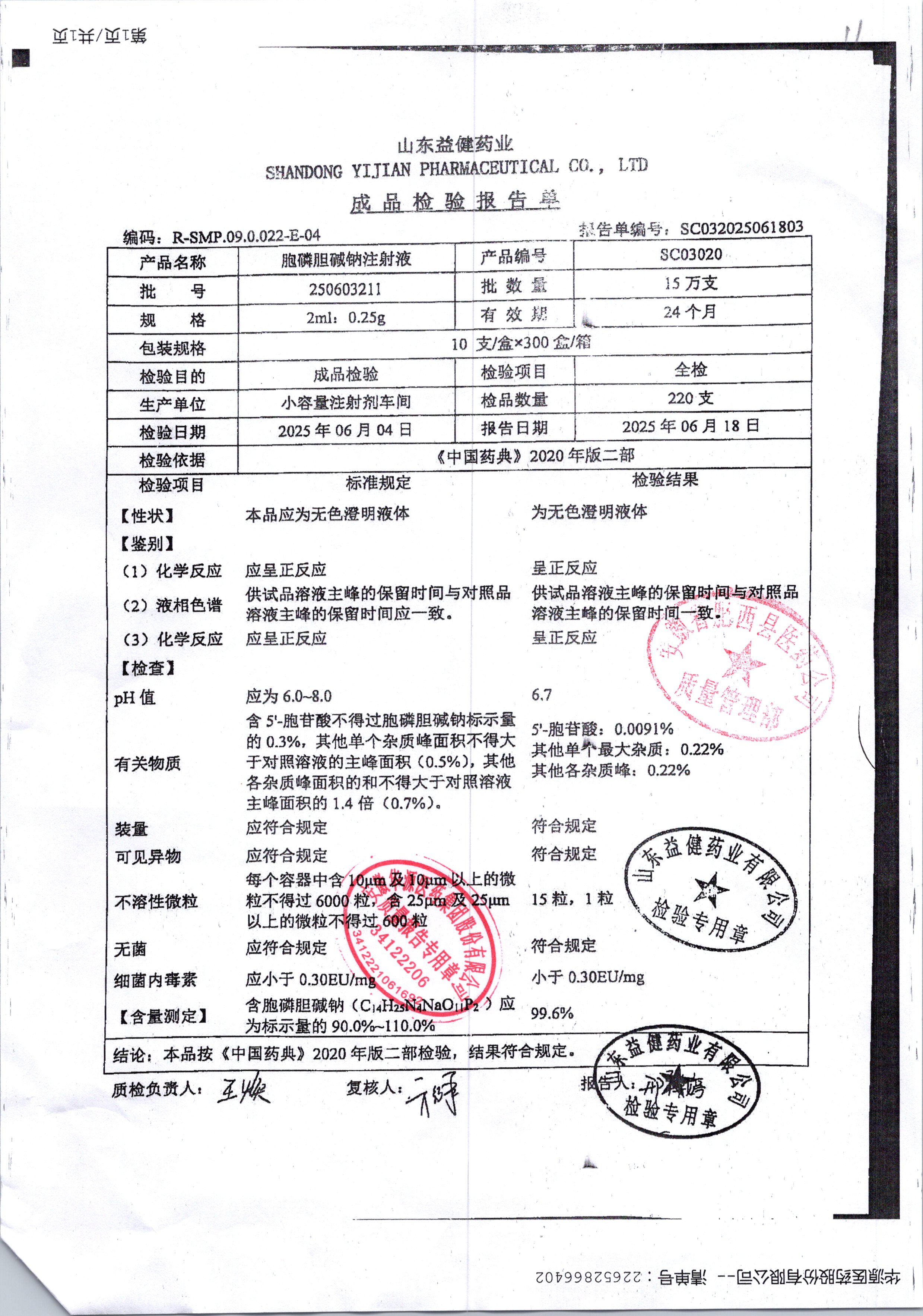 | 胞磷膽堿鈉注射液 | 2ml:0.25g | 241122211 | 查看詳情 |