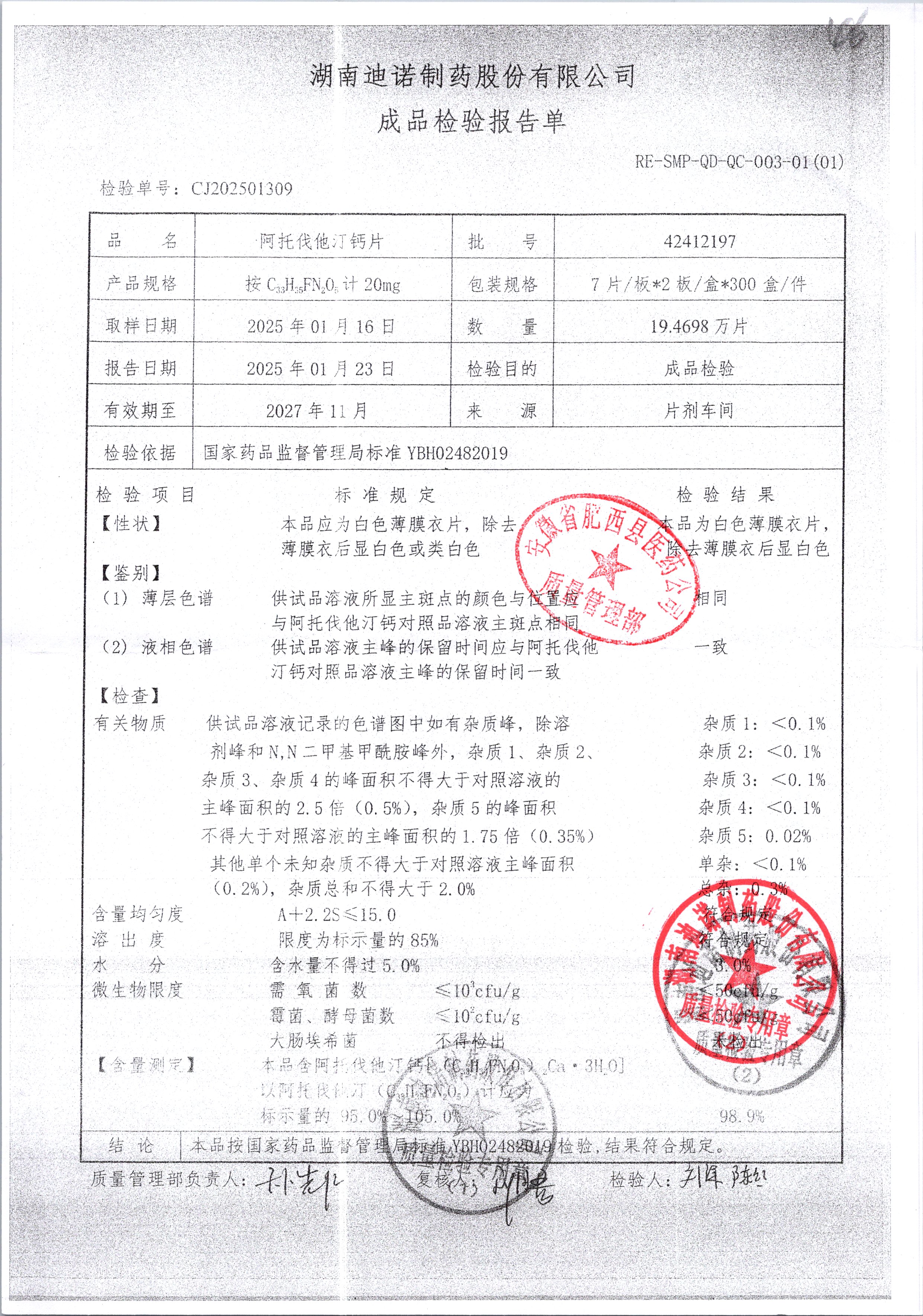 | 阿托伐他汀鈣片 | 20mg*14粒 | 4250308 | 查看詳情 |