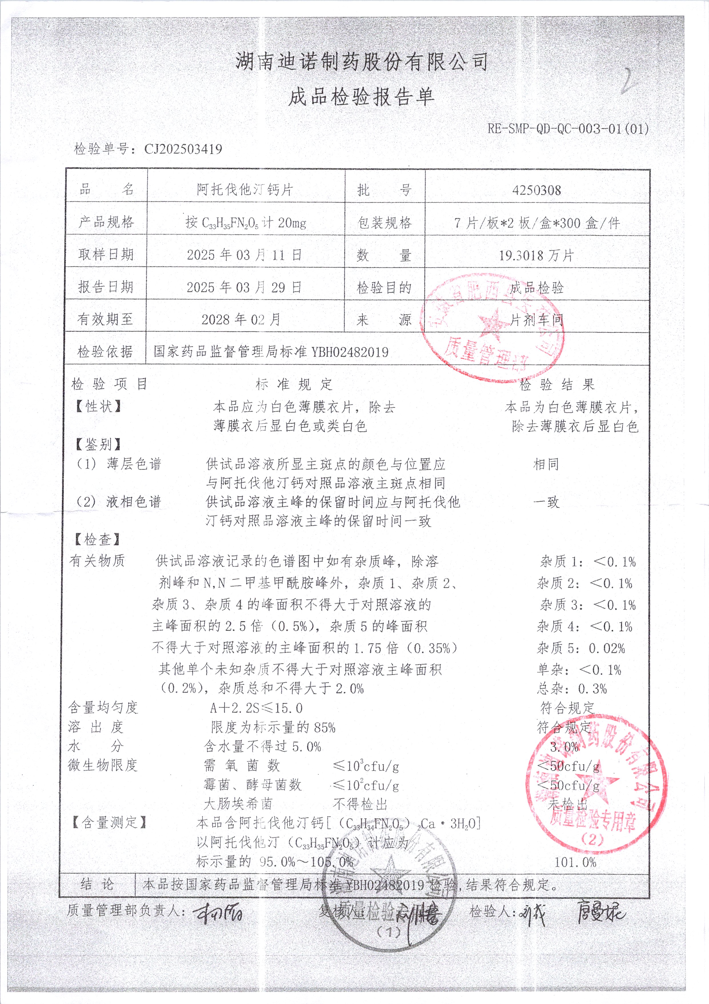 | 阿托伐他汀鈣片 | 20mg*14粒 | 4250904 | 查看詳情 |