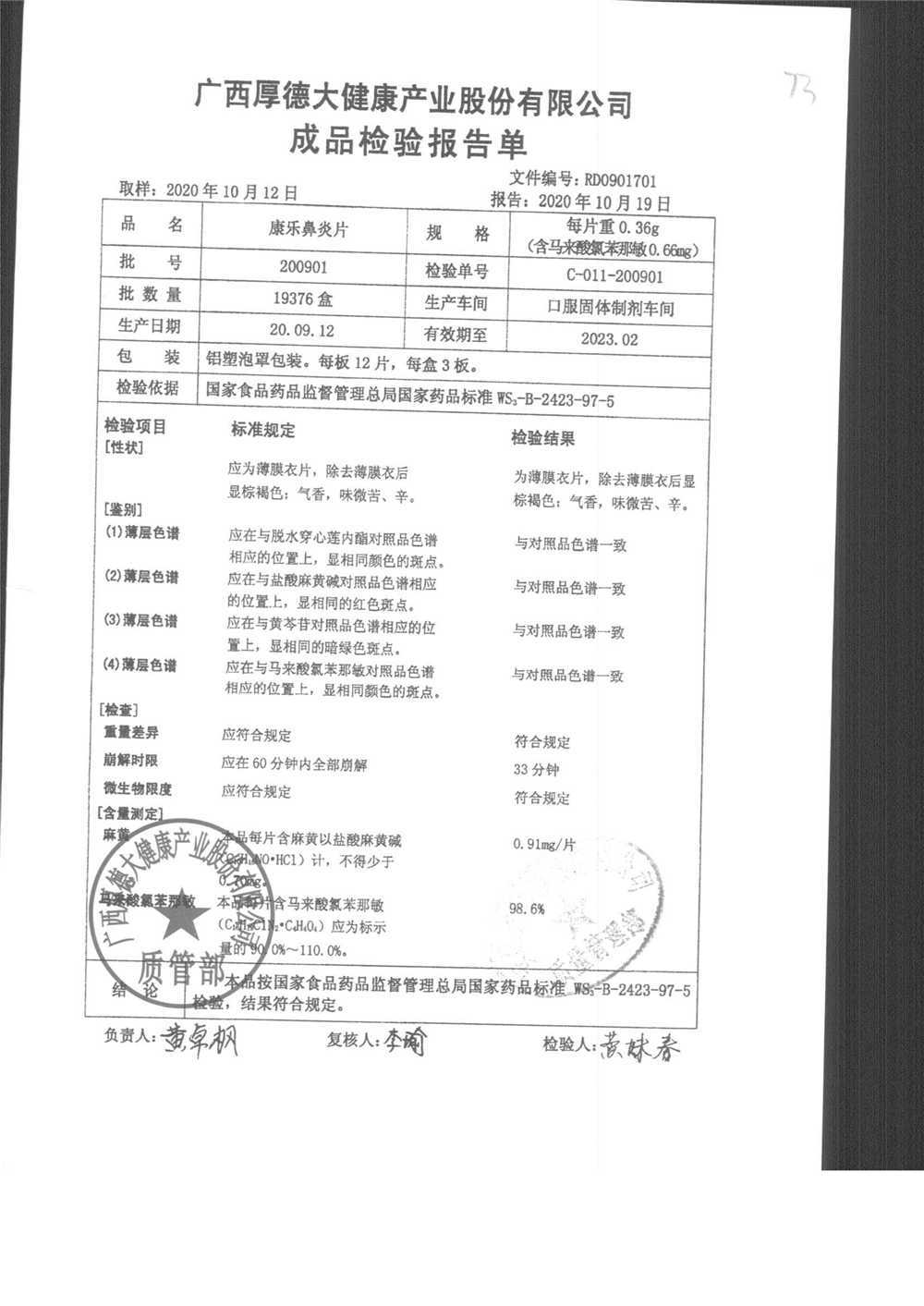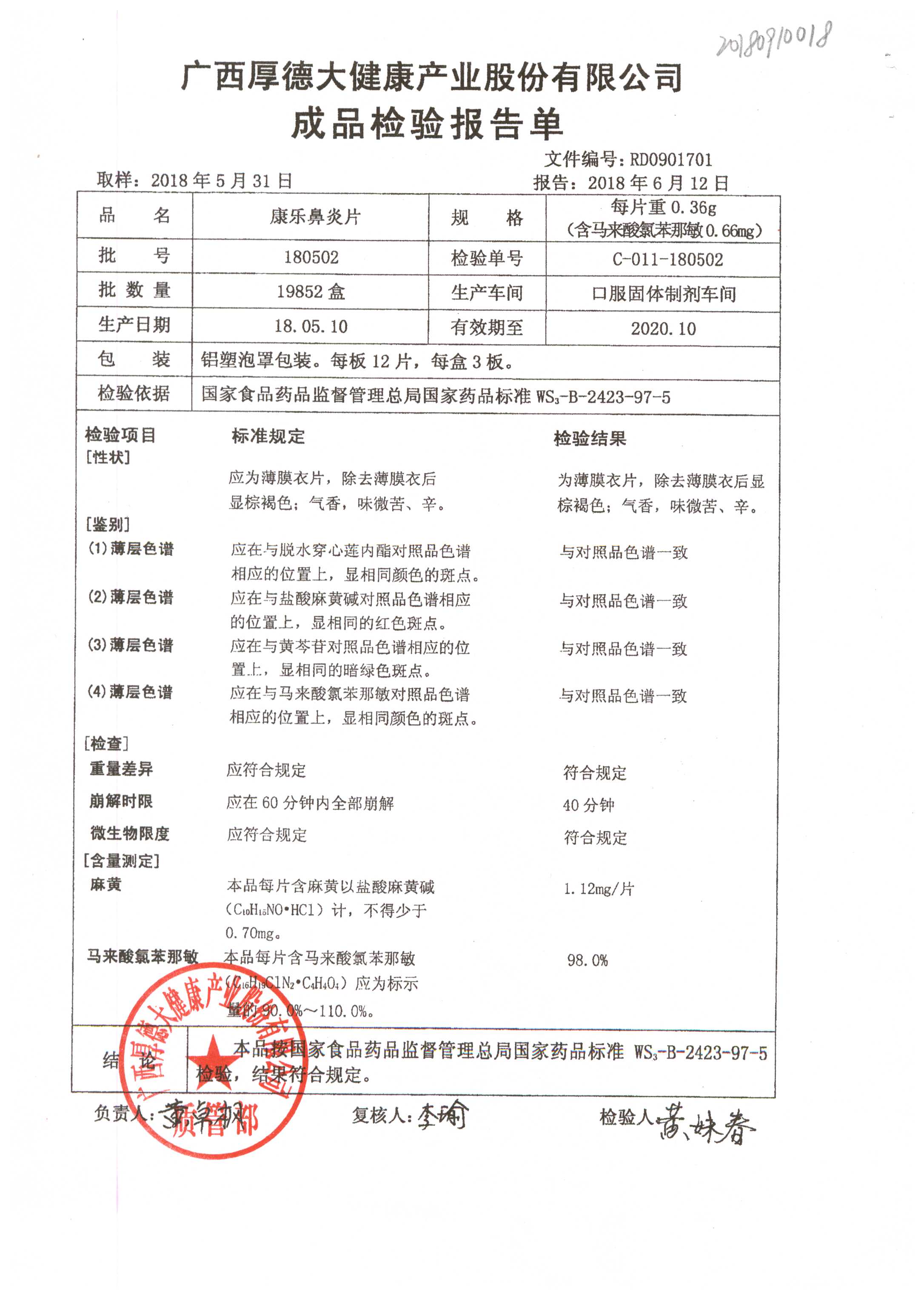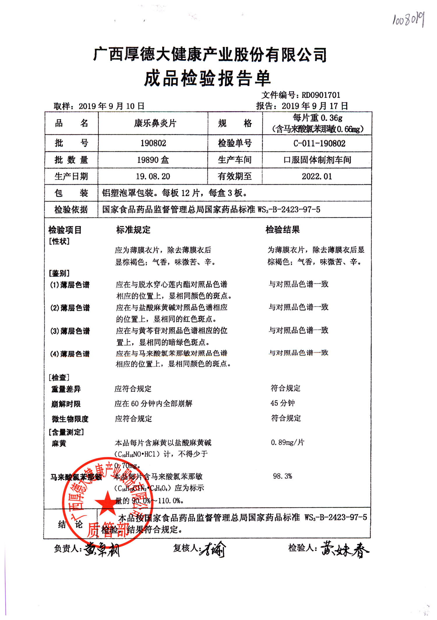 | 康樂鼻炎片 | 0.36g*36粒 | 190802 | 查看詳情 |