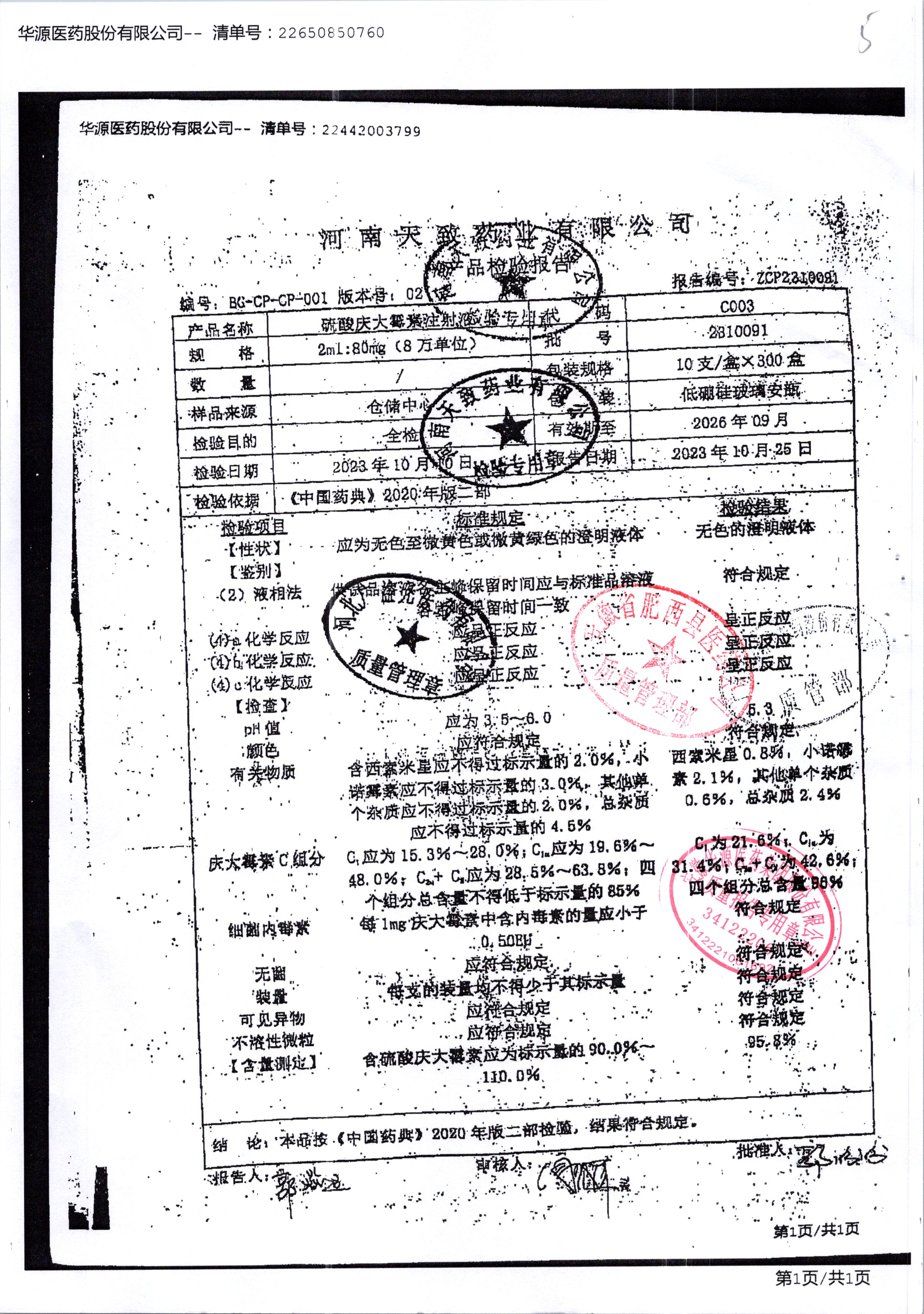 | 硫酸慶大霉素注射液 | 2ml:80mg10支 | 2310091 | 查看詳情 |