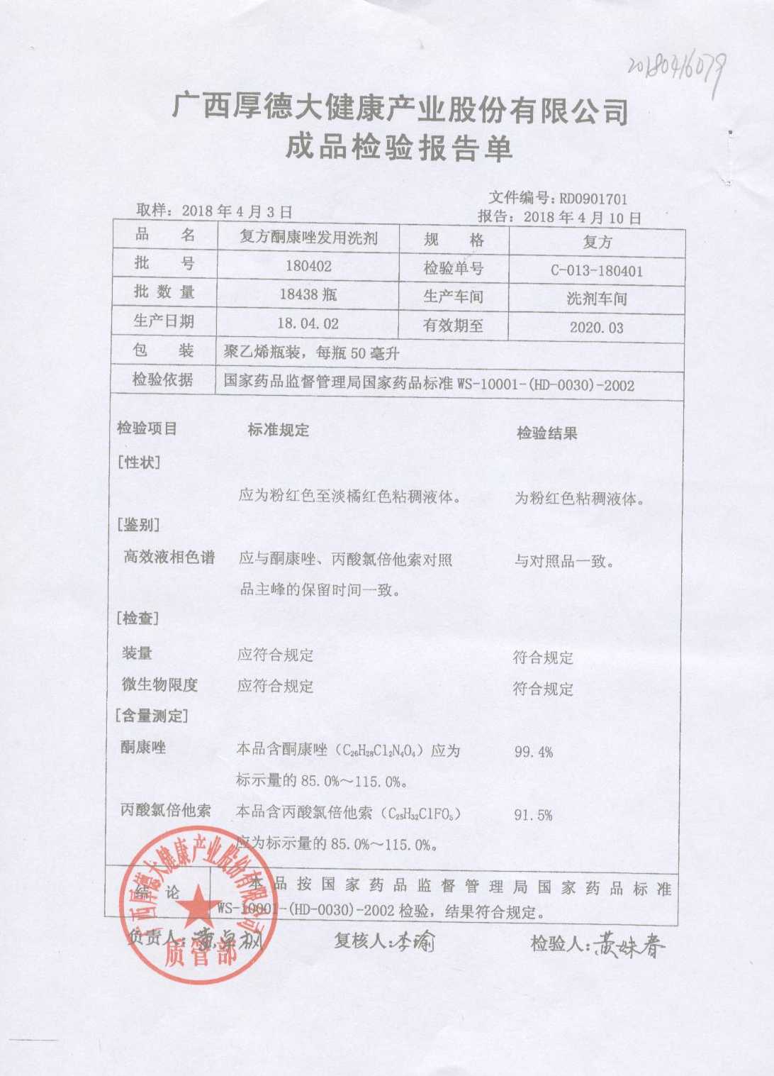 | 復方酮康唑發(fā)用洗劑 | 復方 | 180405 | 查看詳情 |