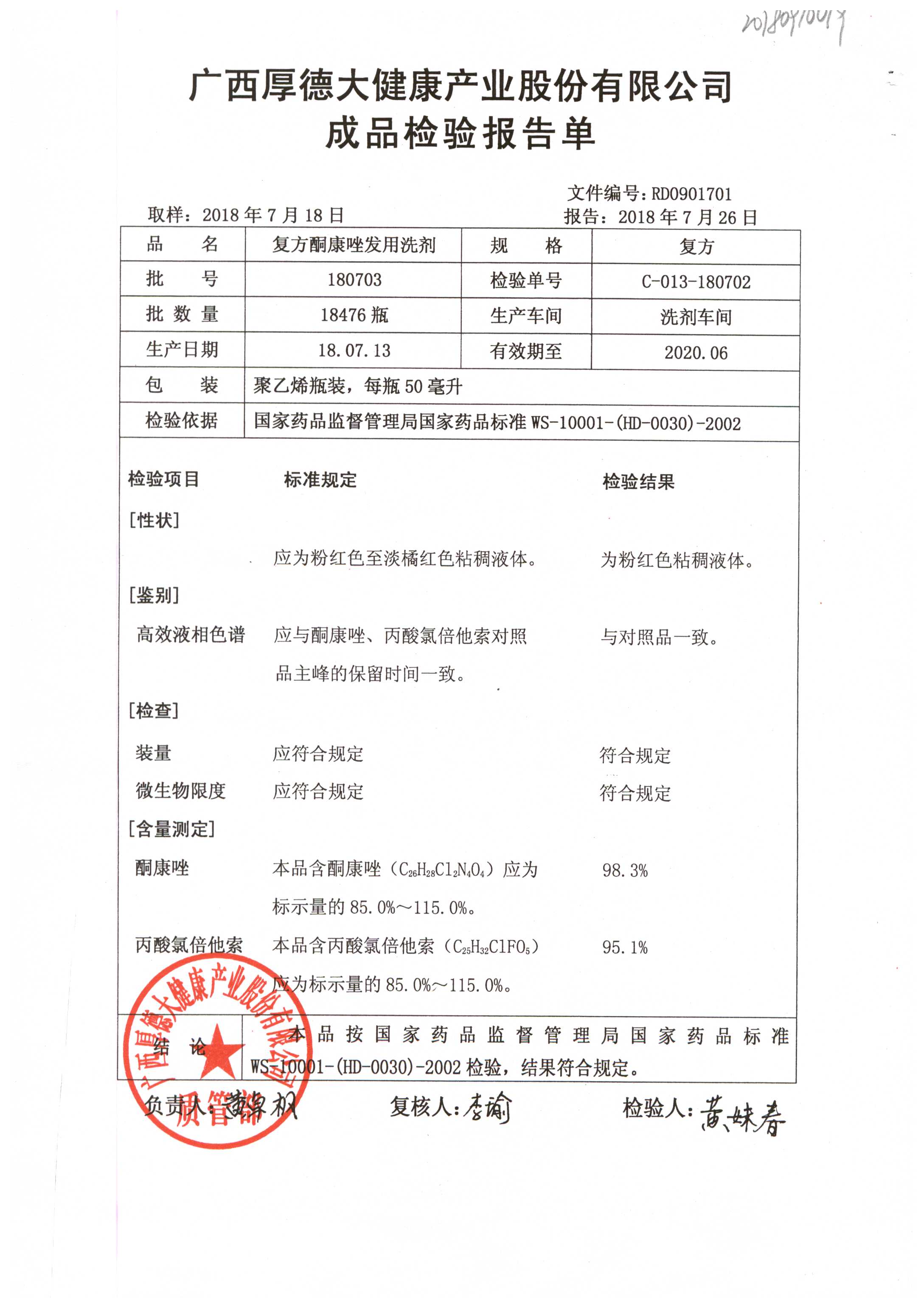 | 復方酮康唑發(fā)用洗劑 | 復方 | 200907 | 查看詳情 |