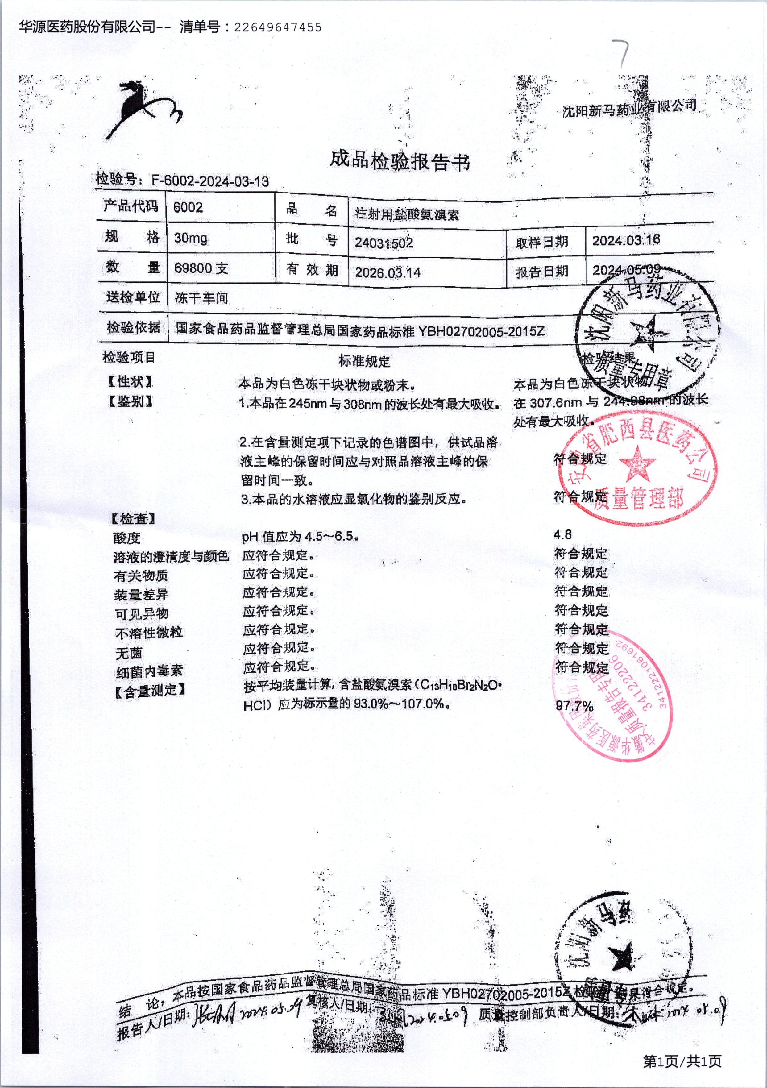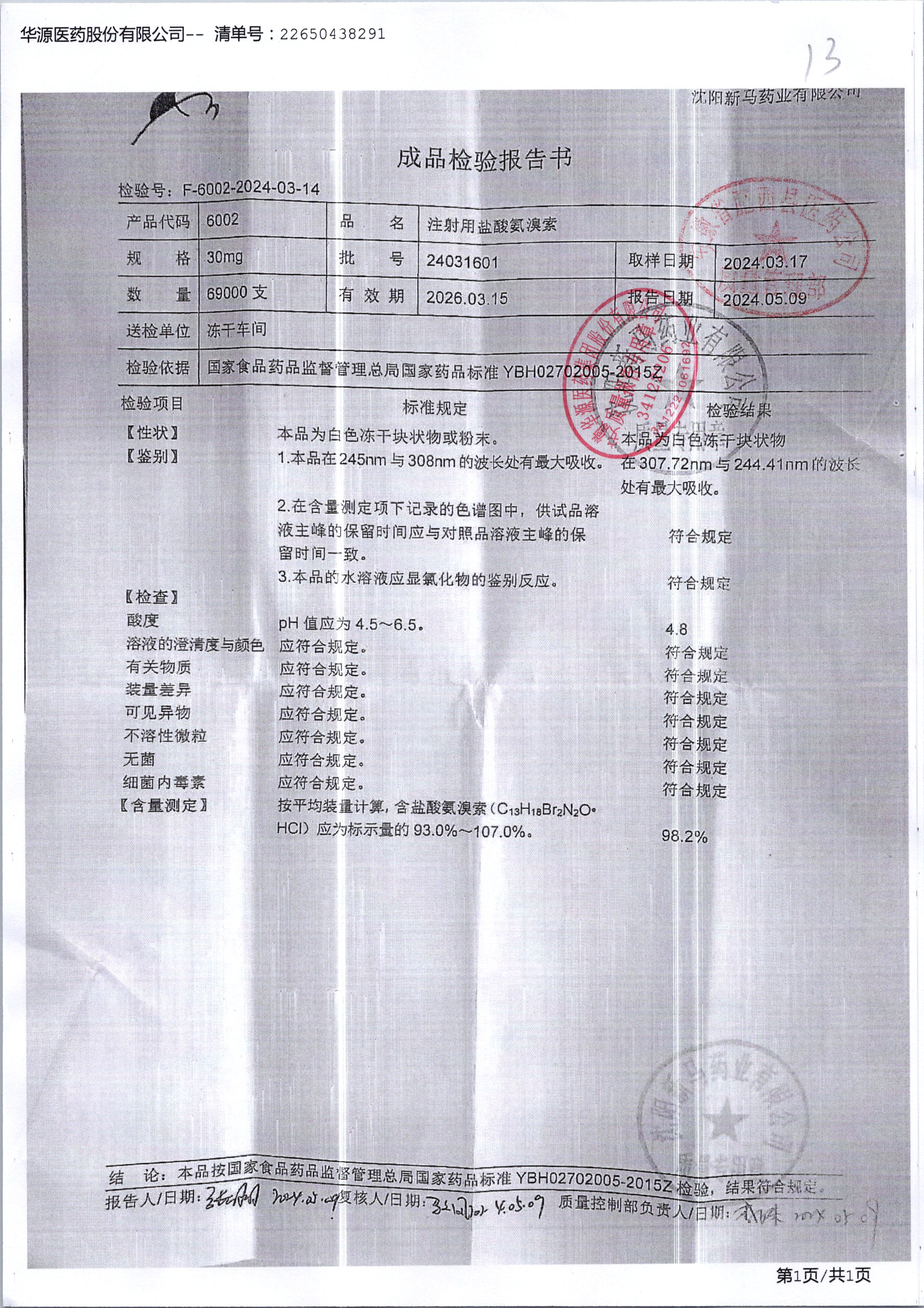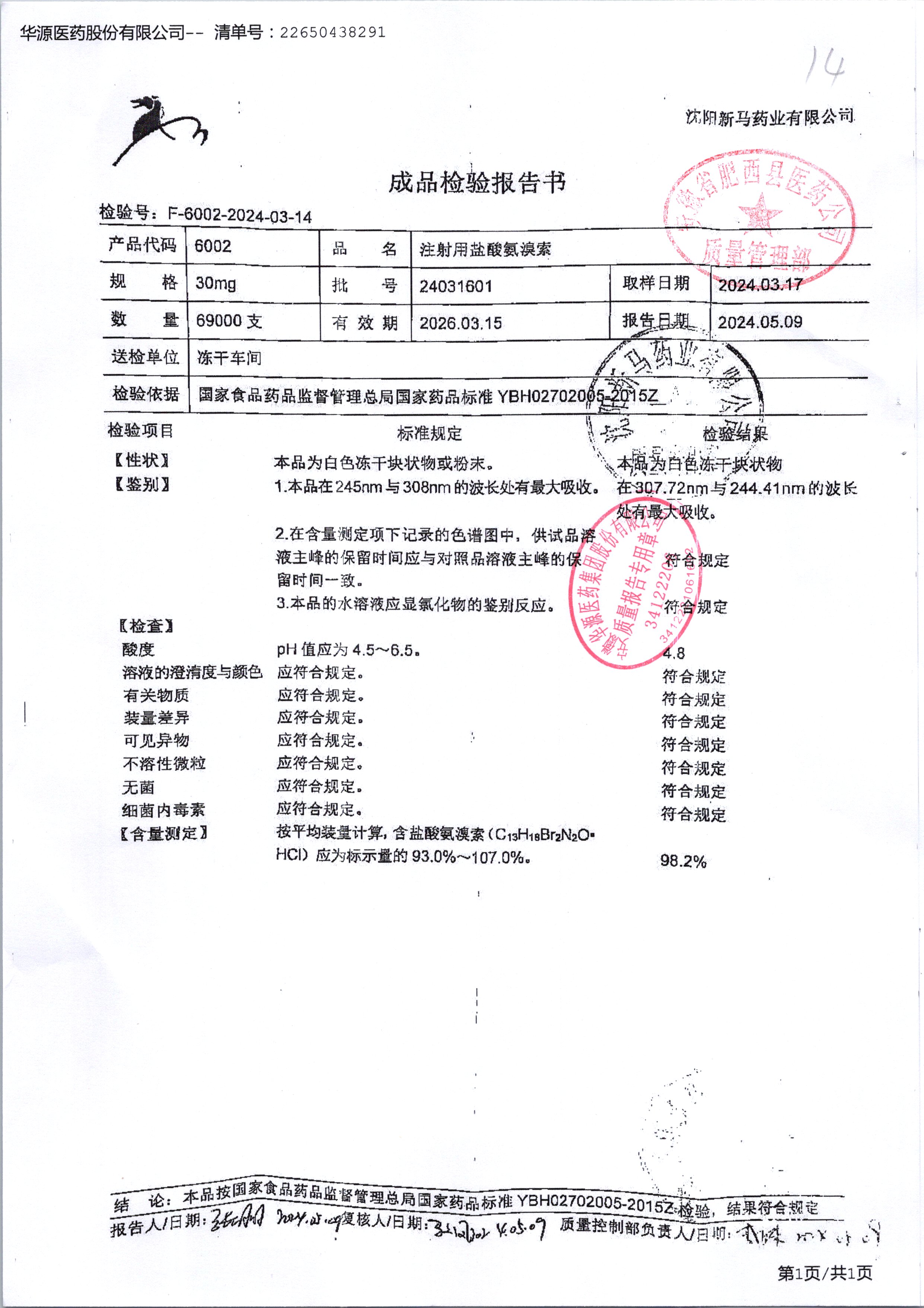 | 注射用鹽酸氨溴索 | 30mg | 24031601 | 查看詳情 |