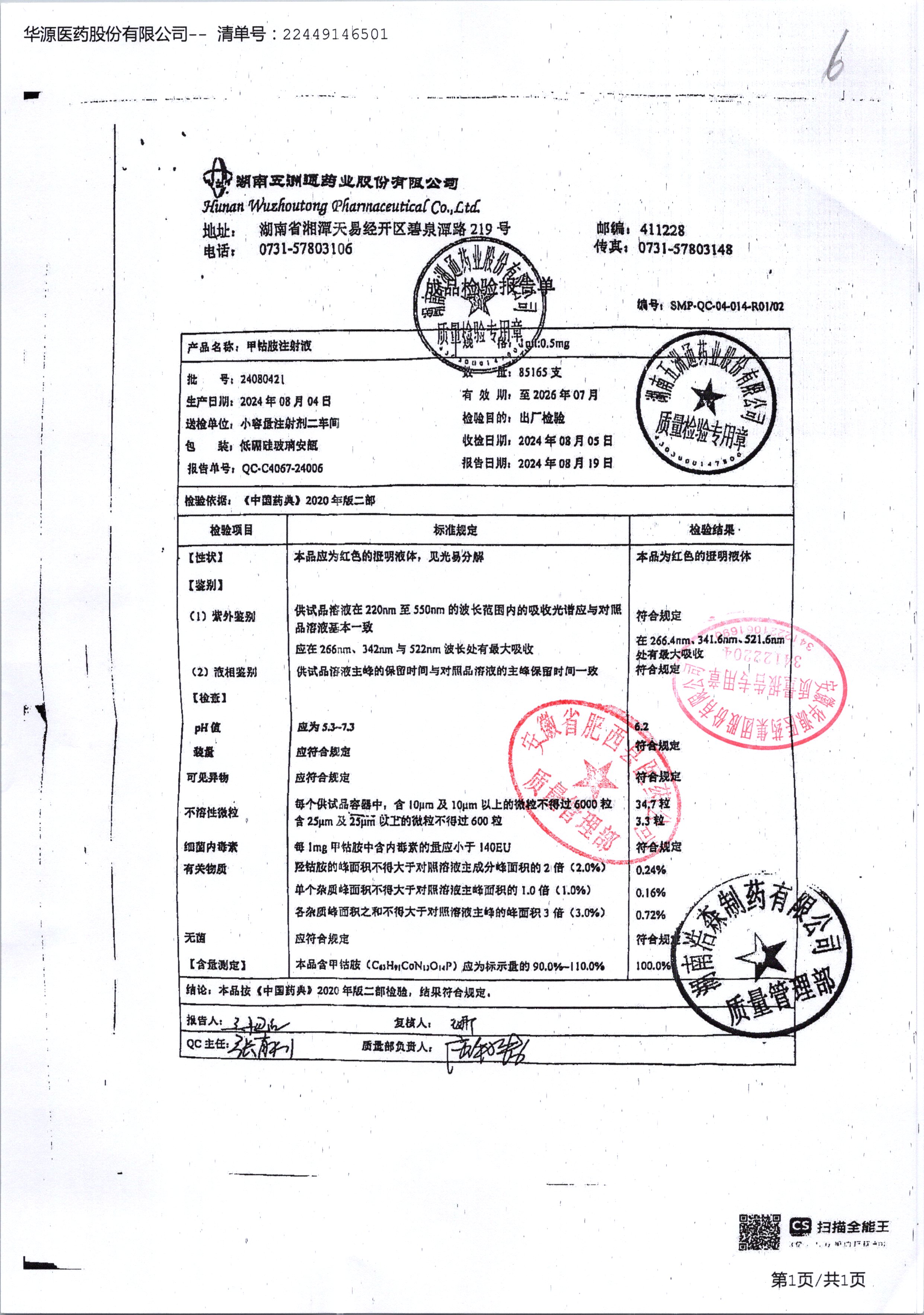 甲鈷胺注射液 1ml:0.5mg 24080421 查看詳情