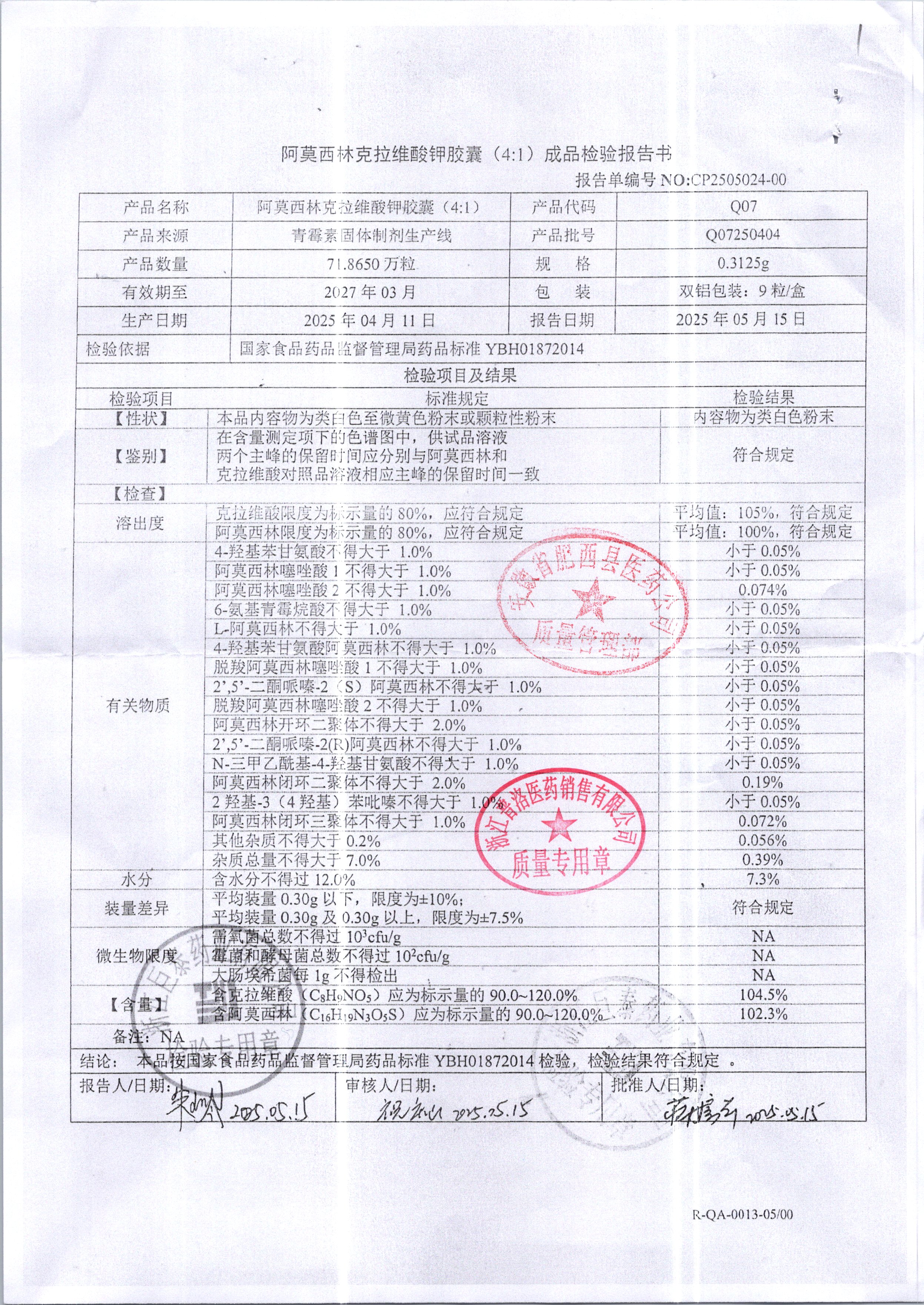 阿莫西林克拉維酸鉀膠囊 0.3125g Q07250103 查看詳情