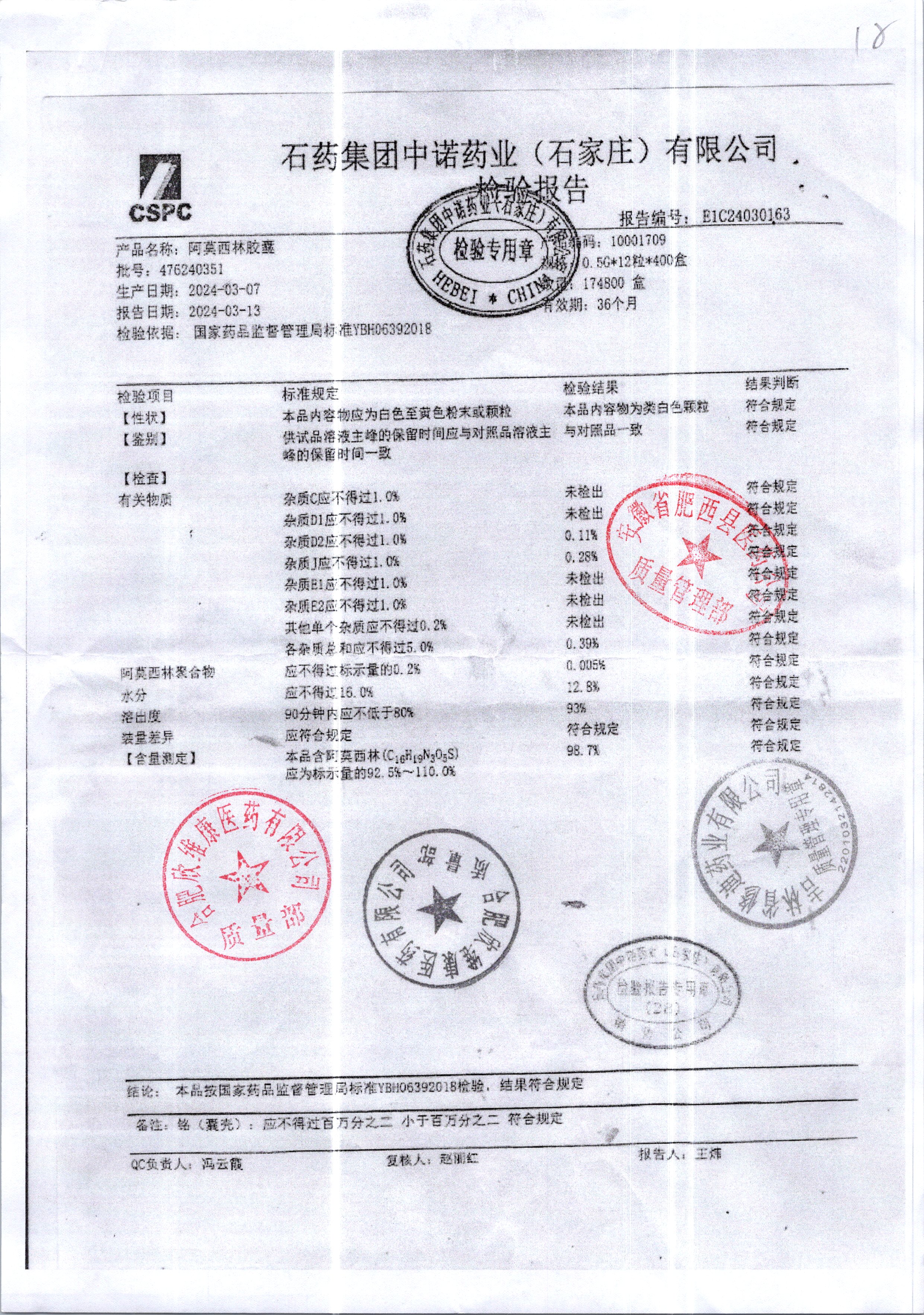 名稱 規格 批號 藥檢報告