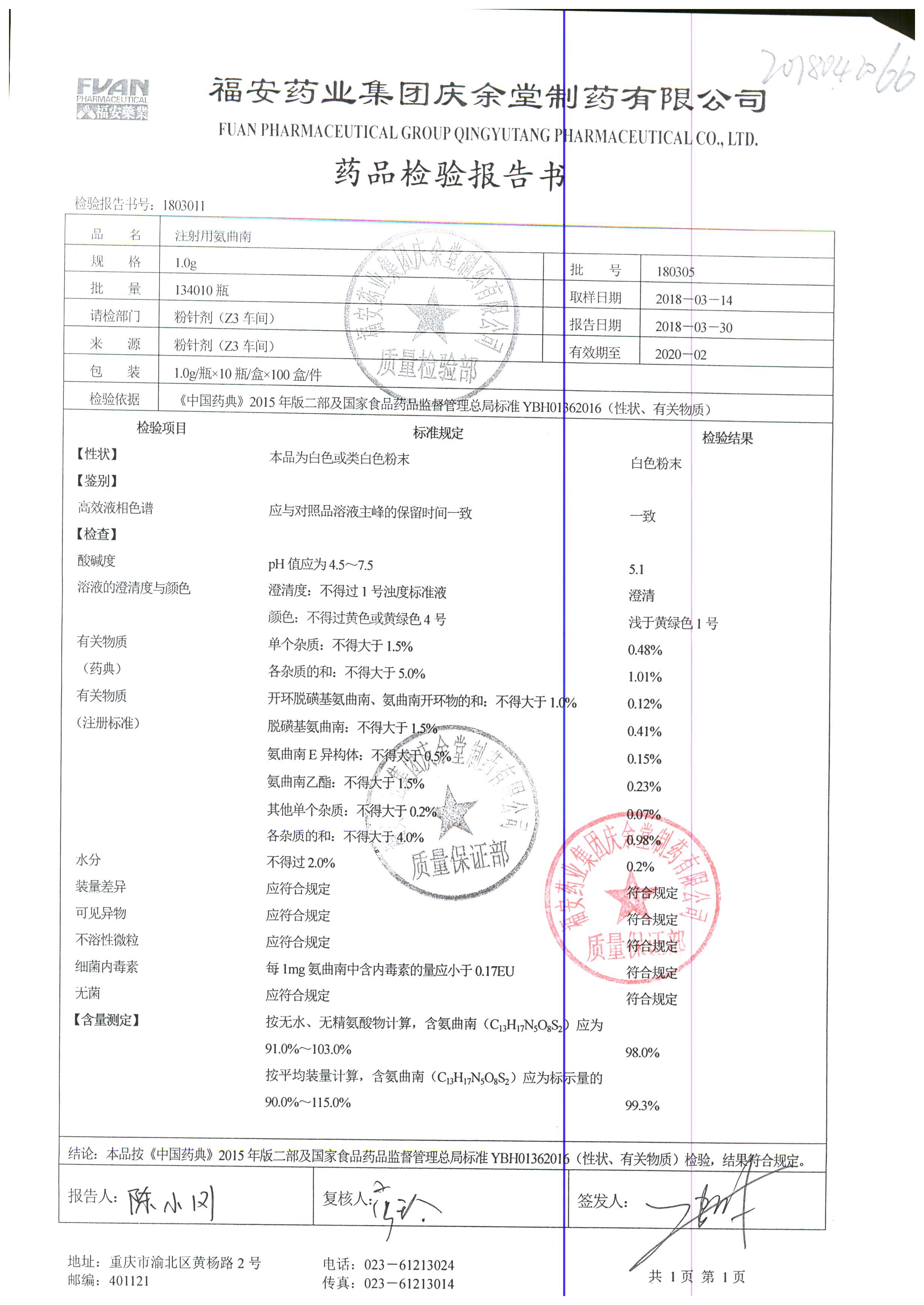 | 名稱(chēng) | 規(guī)格 | 批號(hào) | 藥檢報(bào)告 |
