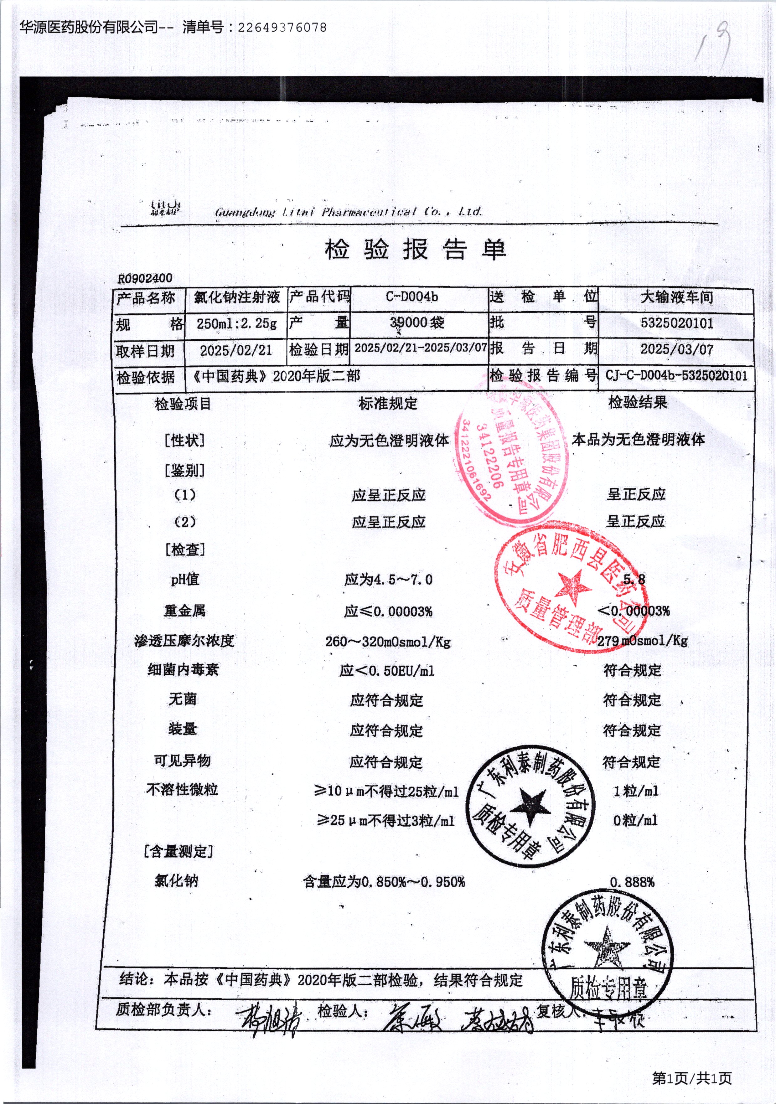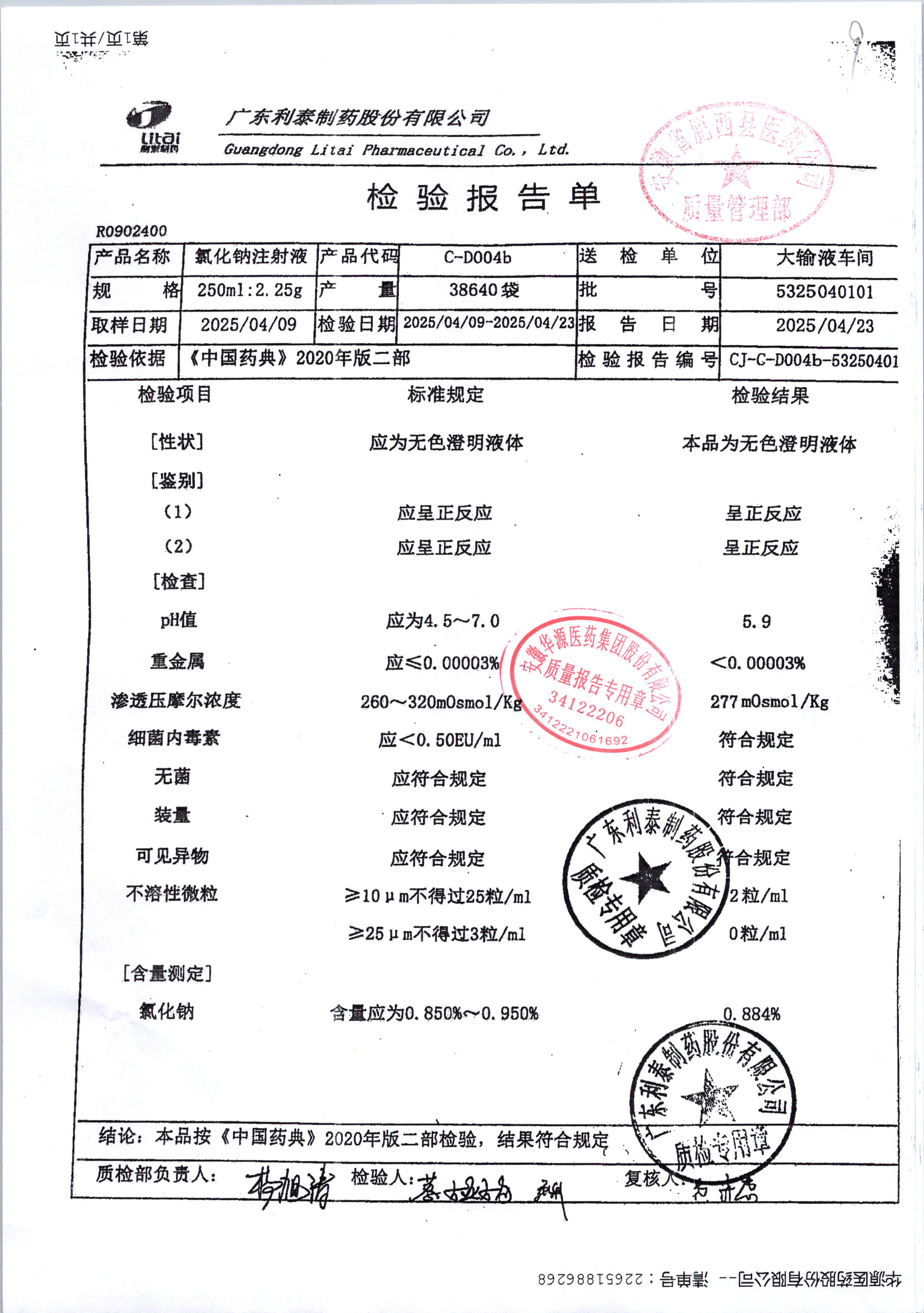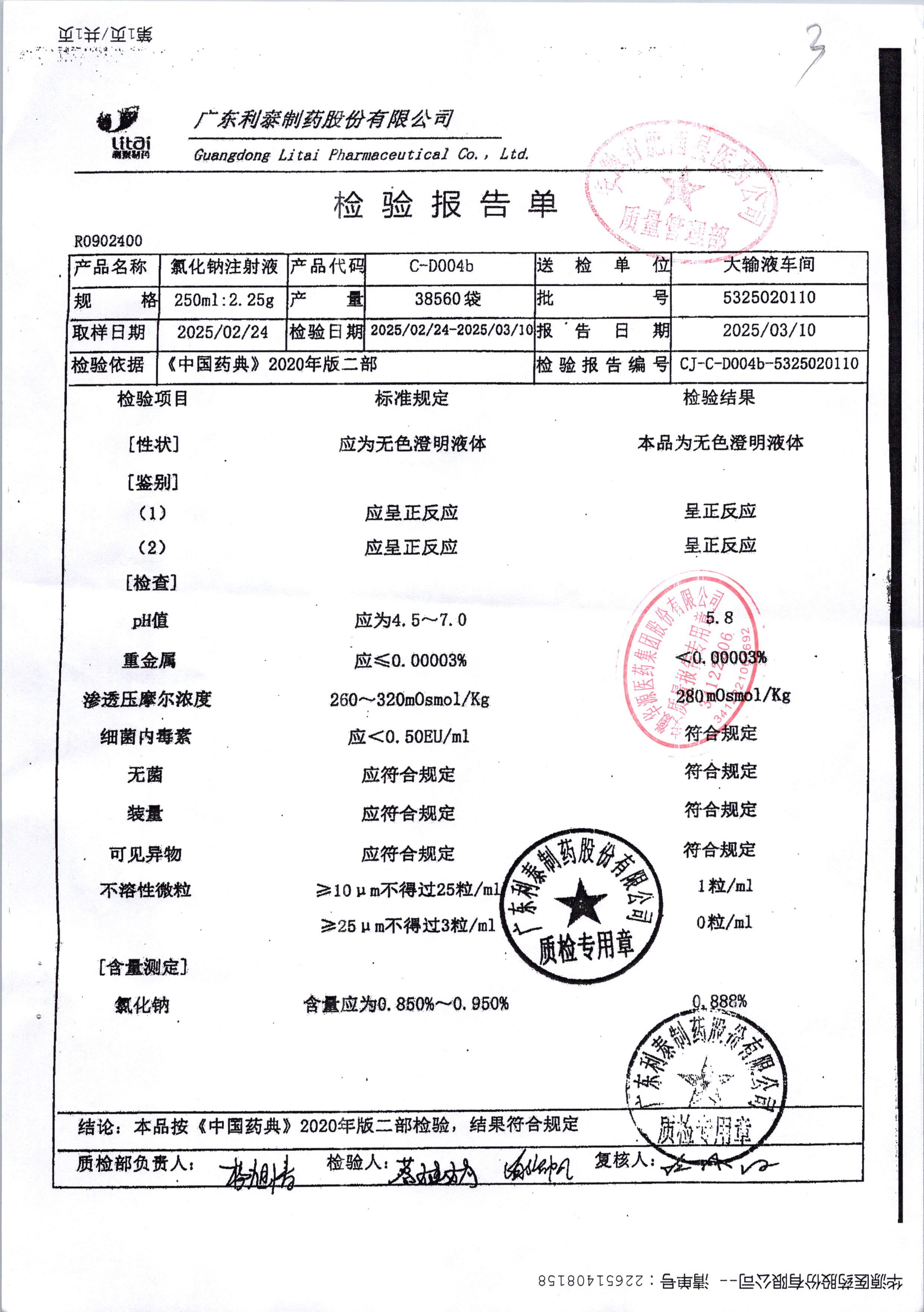 | 氯化鈉注射液 | 250ml | 5325020110 | 查看詳情 |