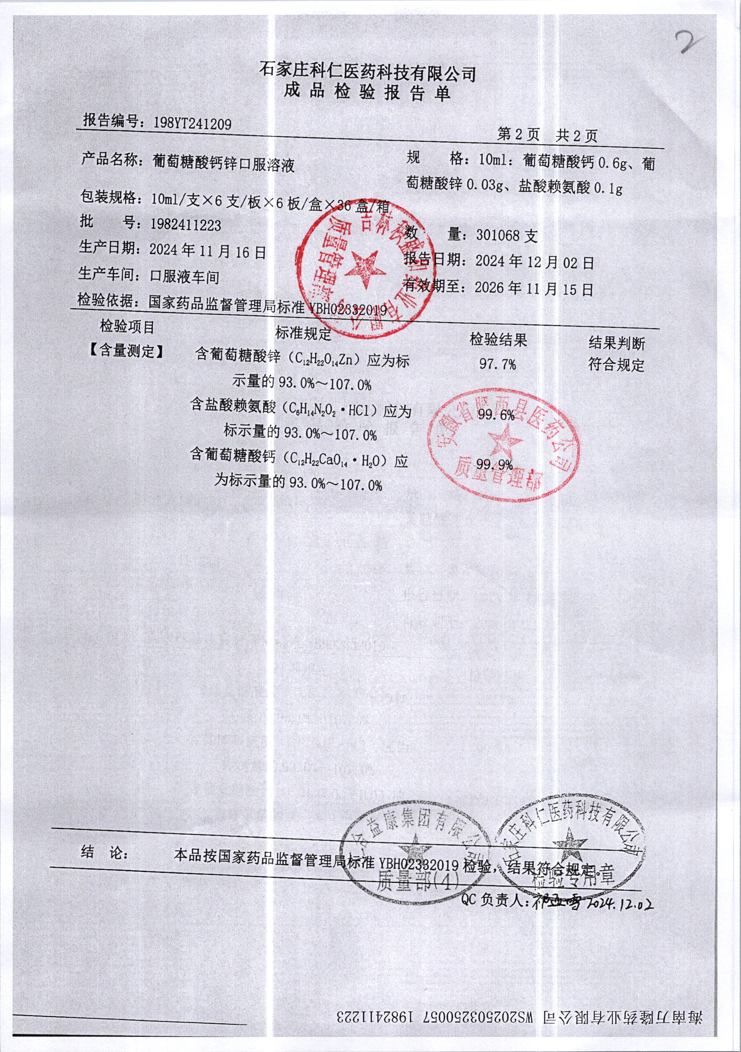 葡萄糖酸鈣鋅口服溶液 10ml*6支 1982411223 查看詳情