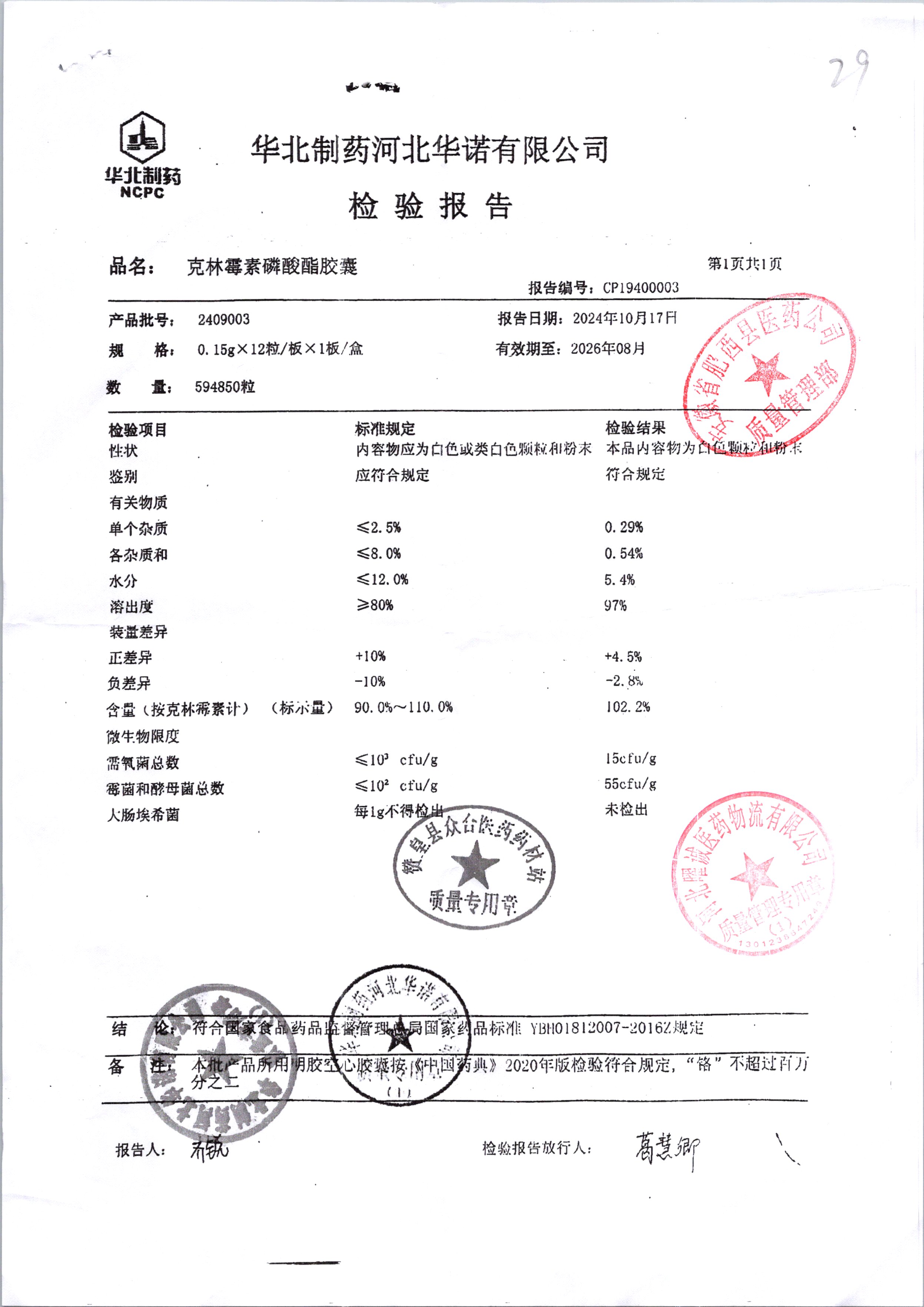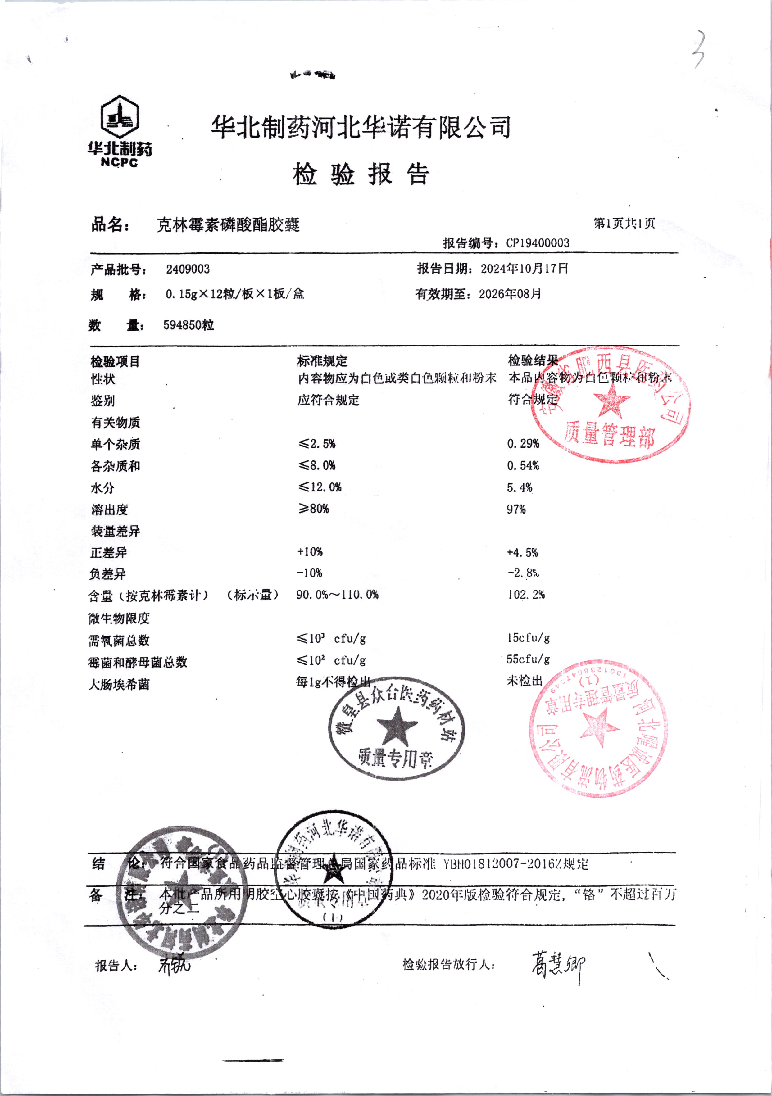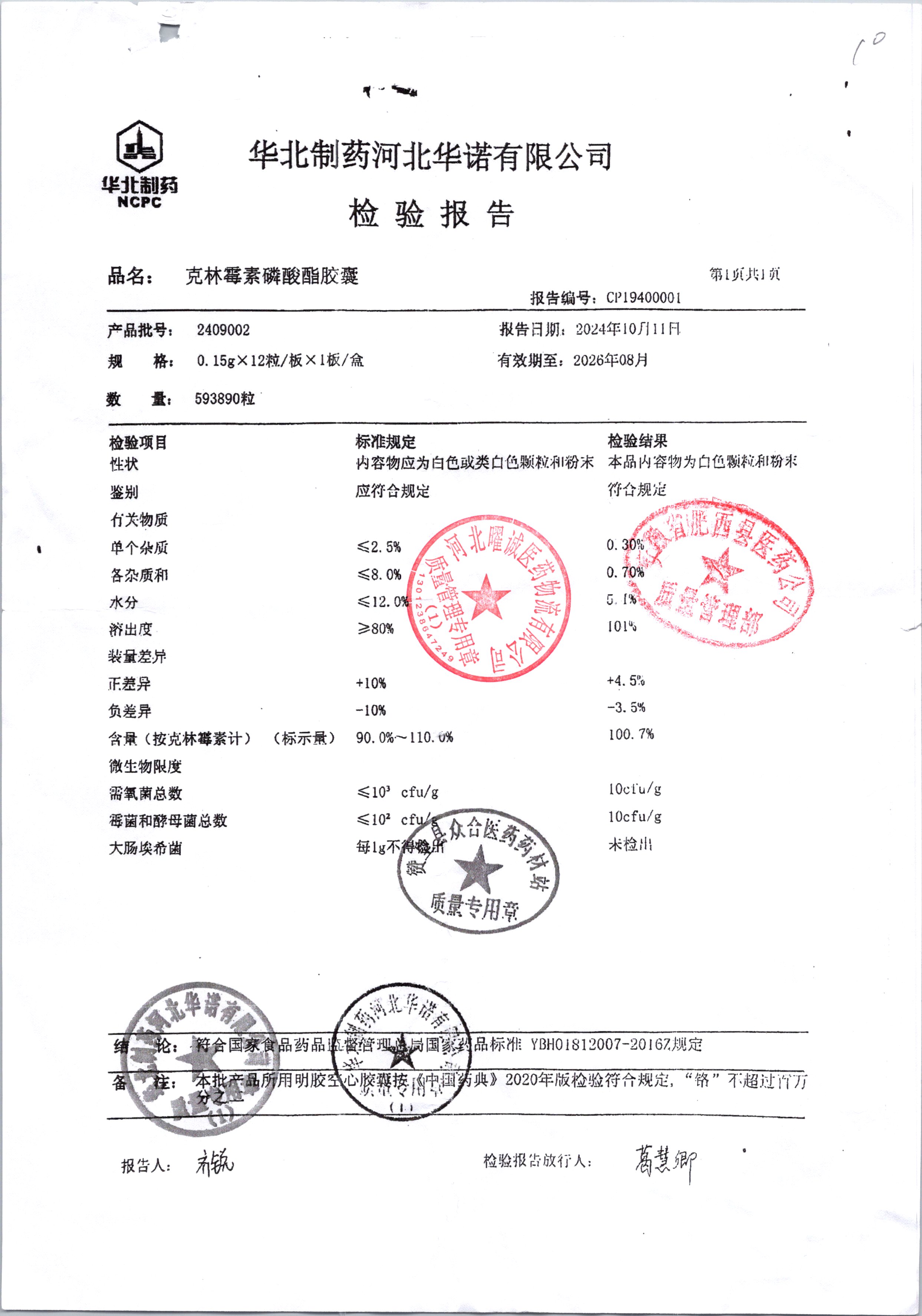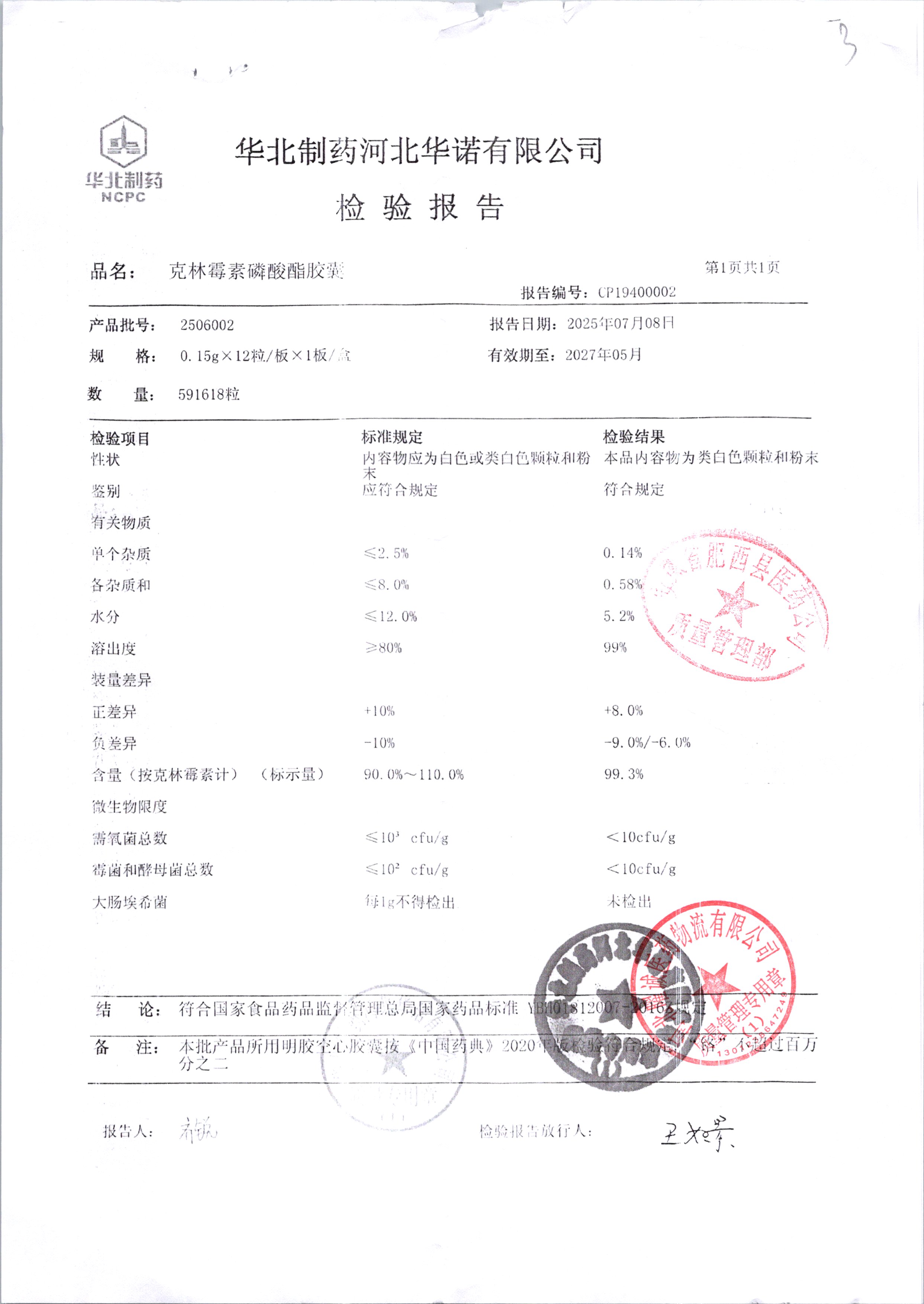 名稱 規格 批號 藥檢報告