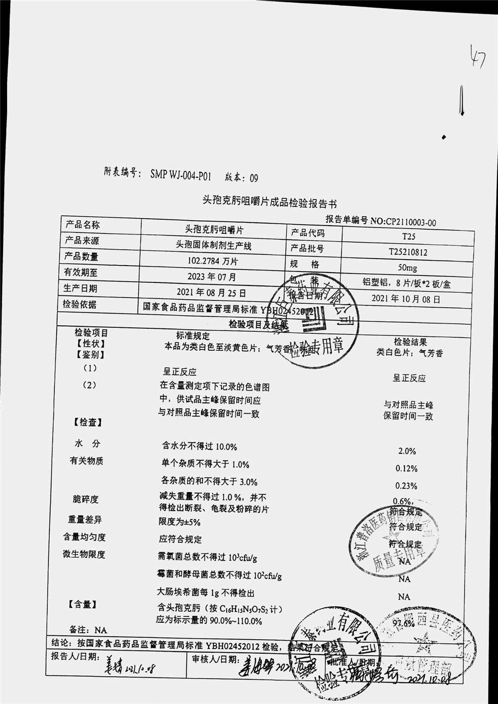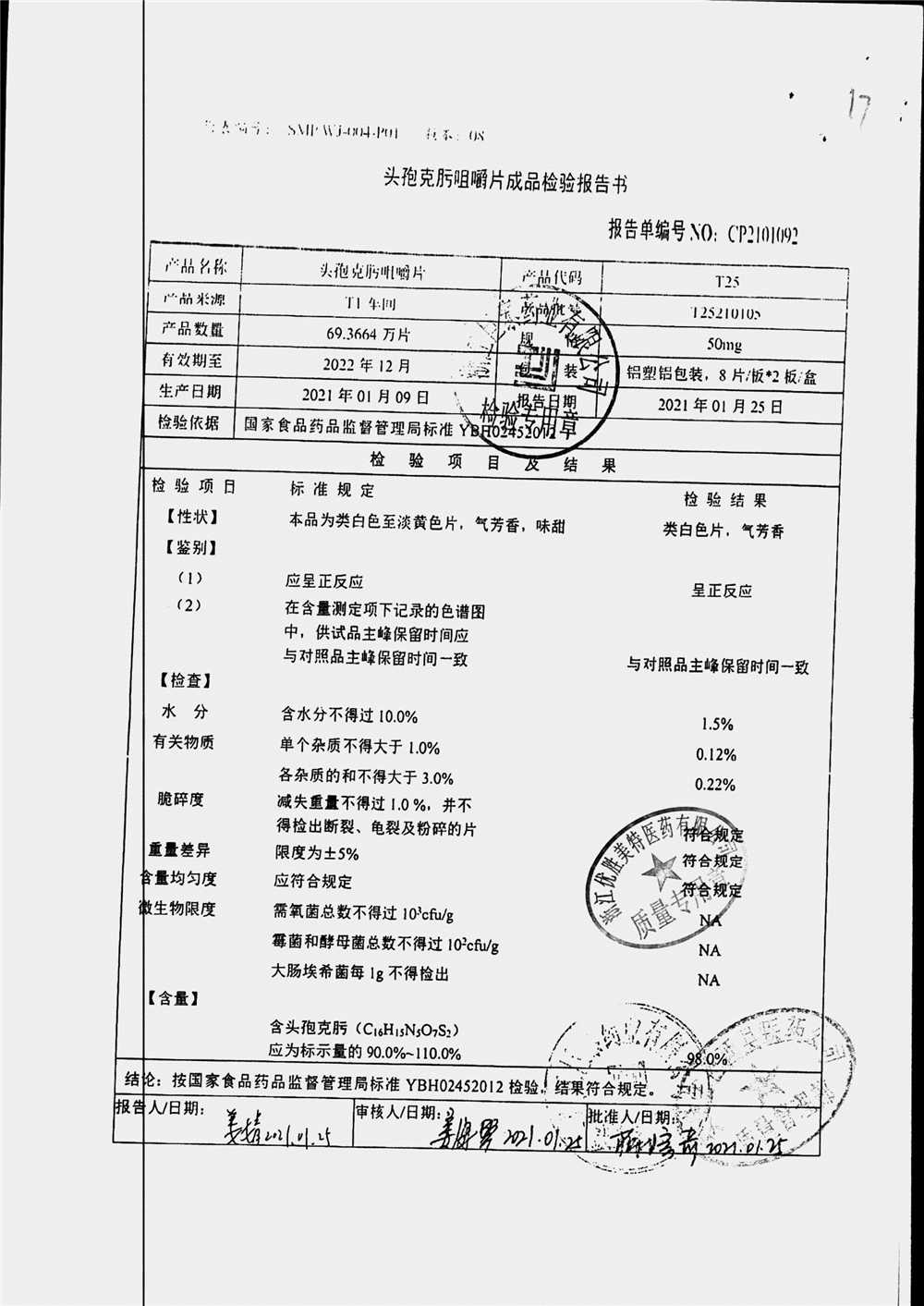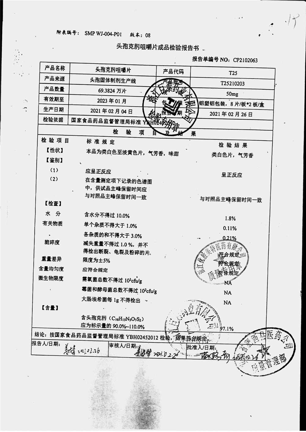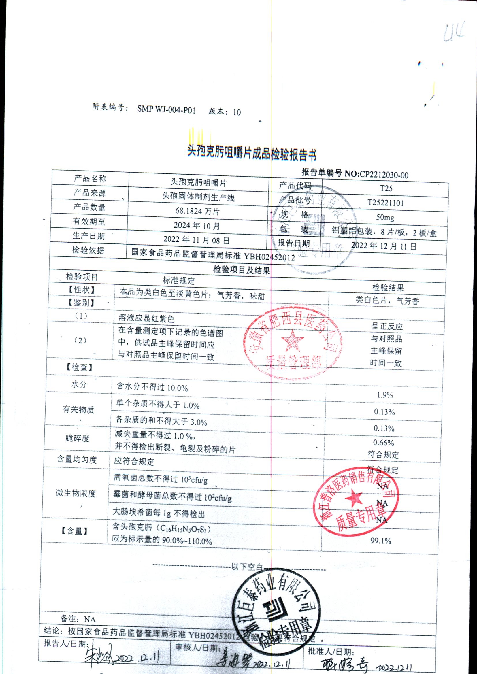 | 頭孢克肟咀嚼片 | 50mg*16s | T25210203 | 查看詳情 |