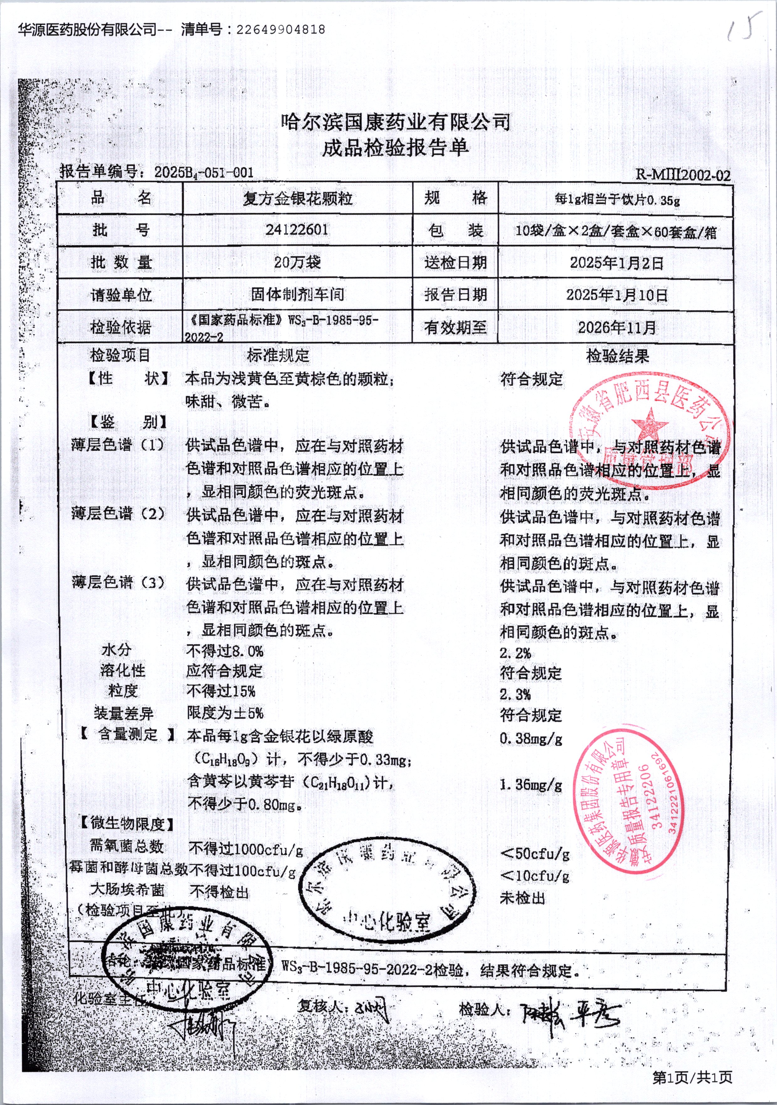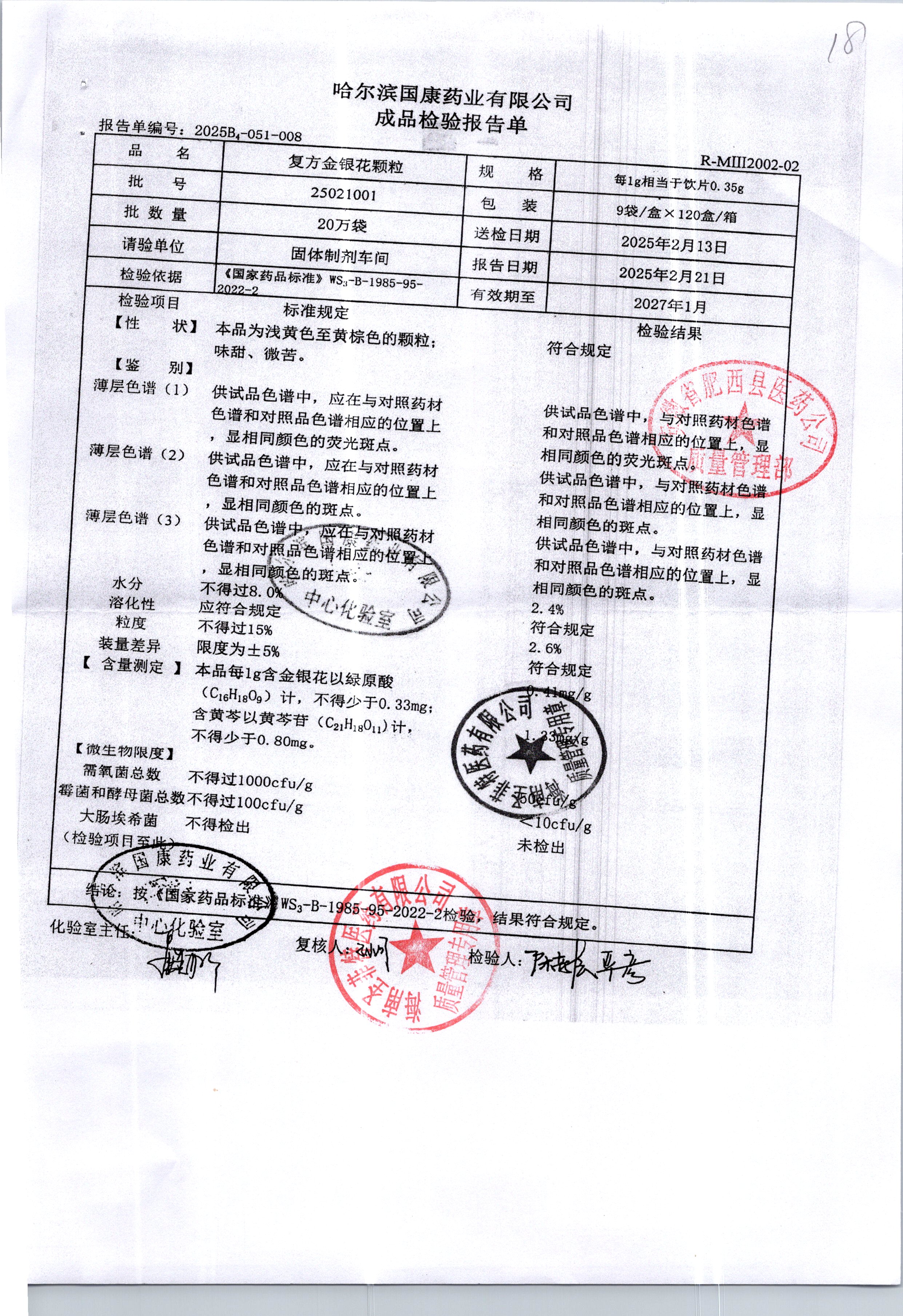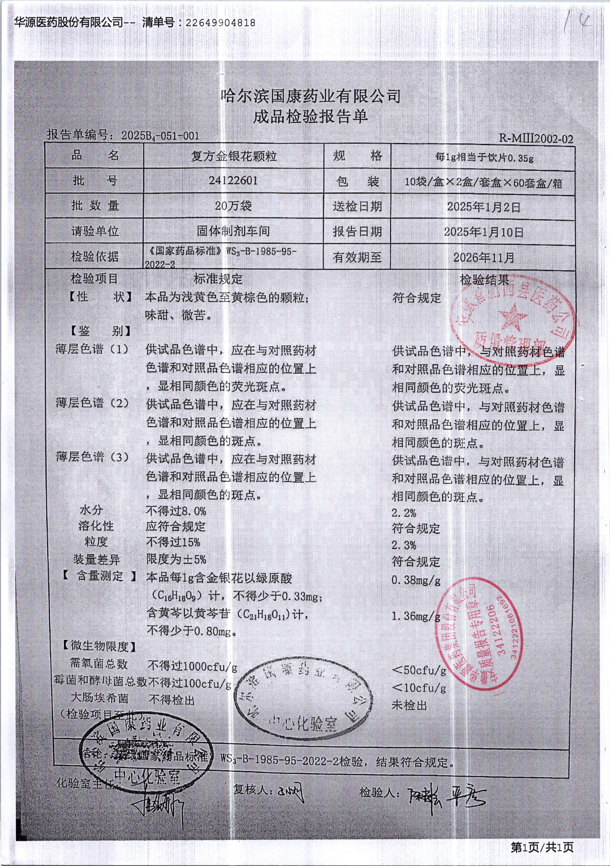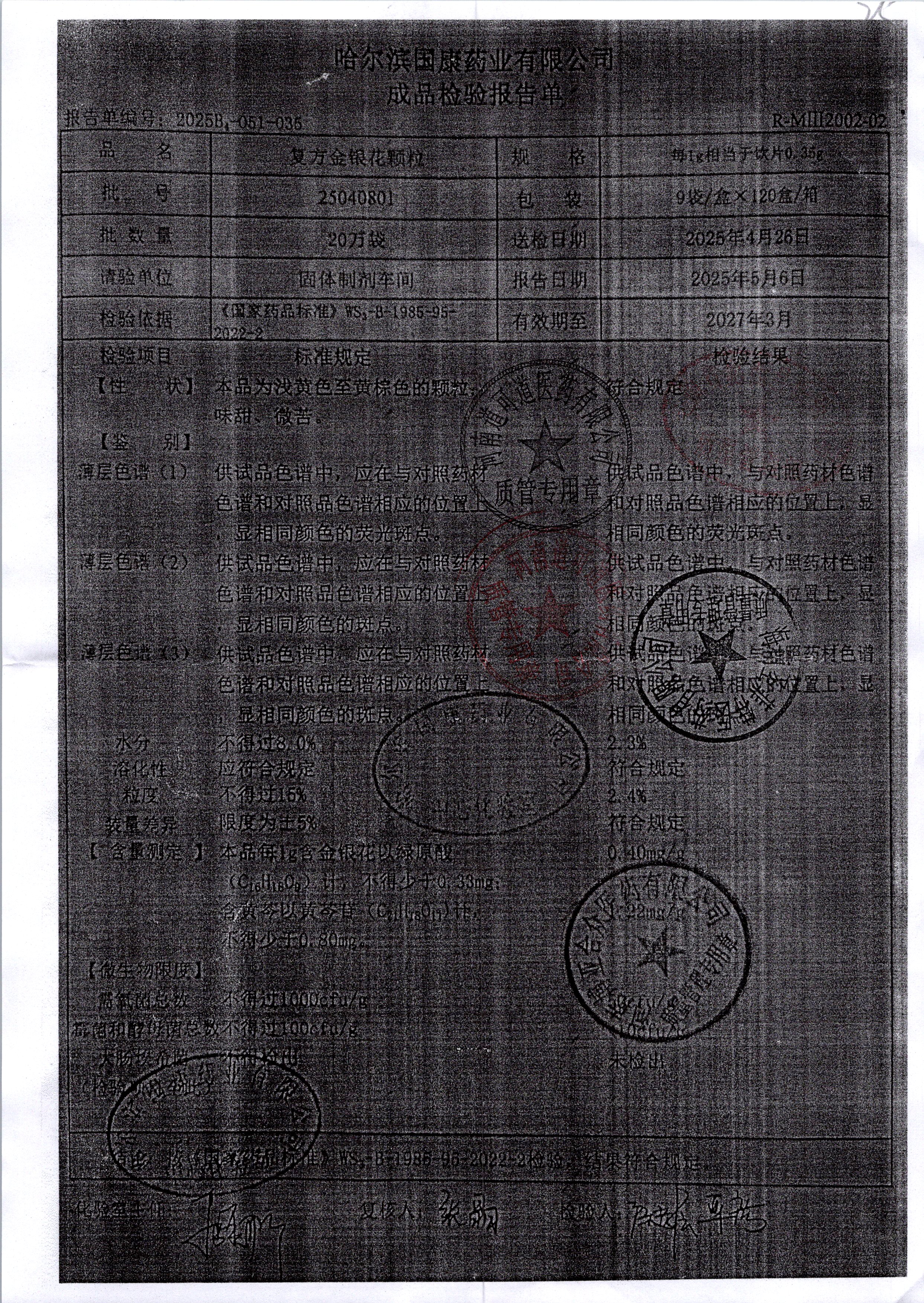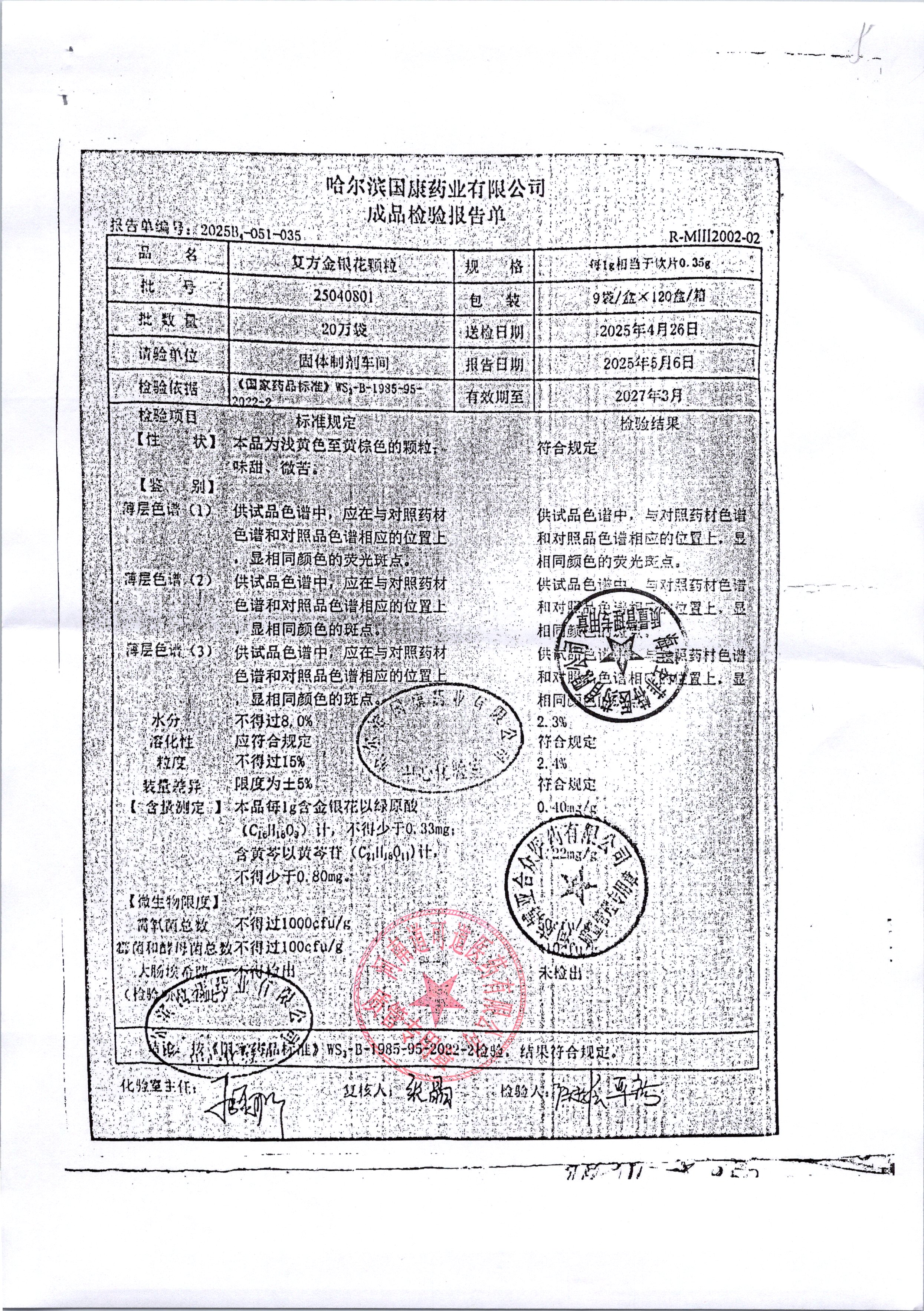 | 復方金銀花顆粒 | 0.35g*20粒 | 25040801 | 查看詳情 |