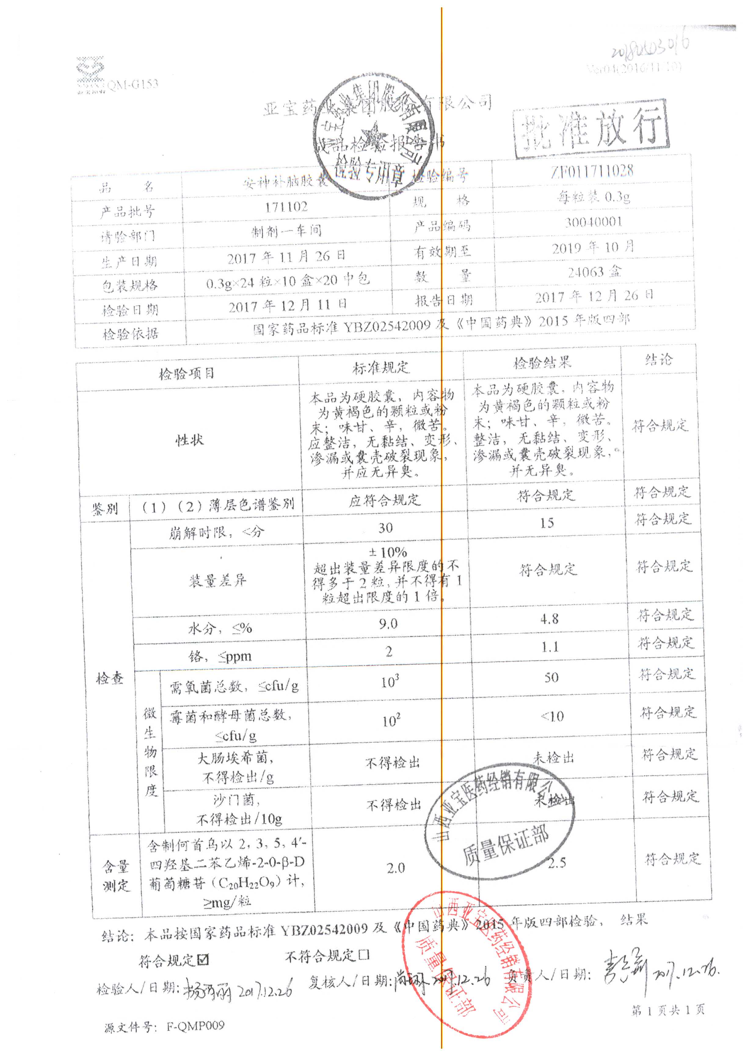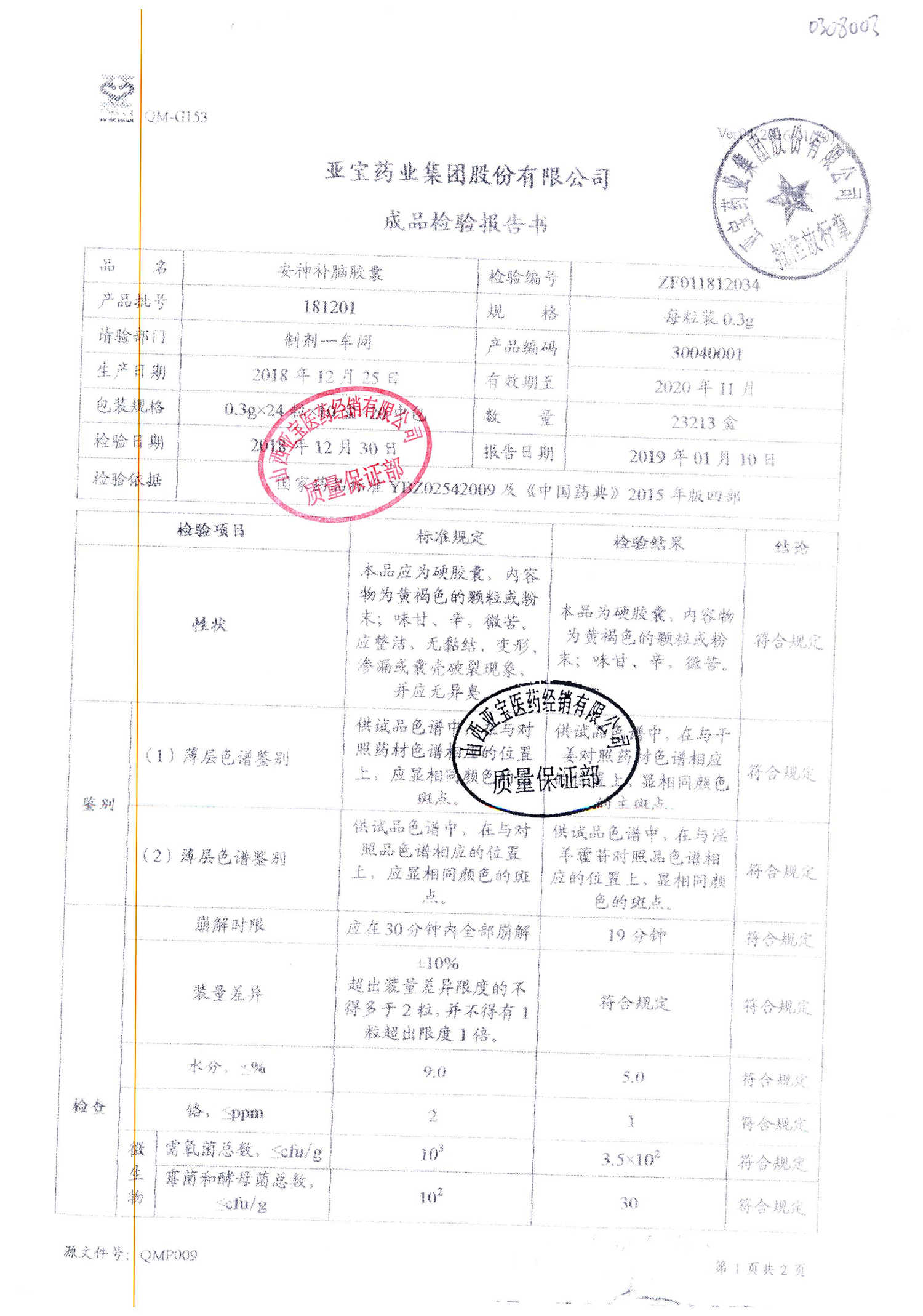 安神補腦膠囊 0.3g*24s 181201(1/2) 查看詳情