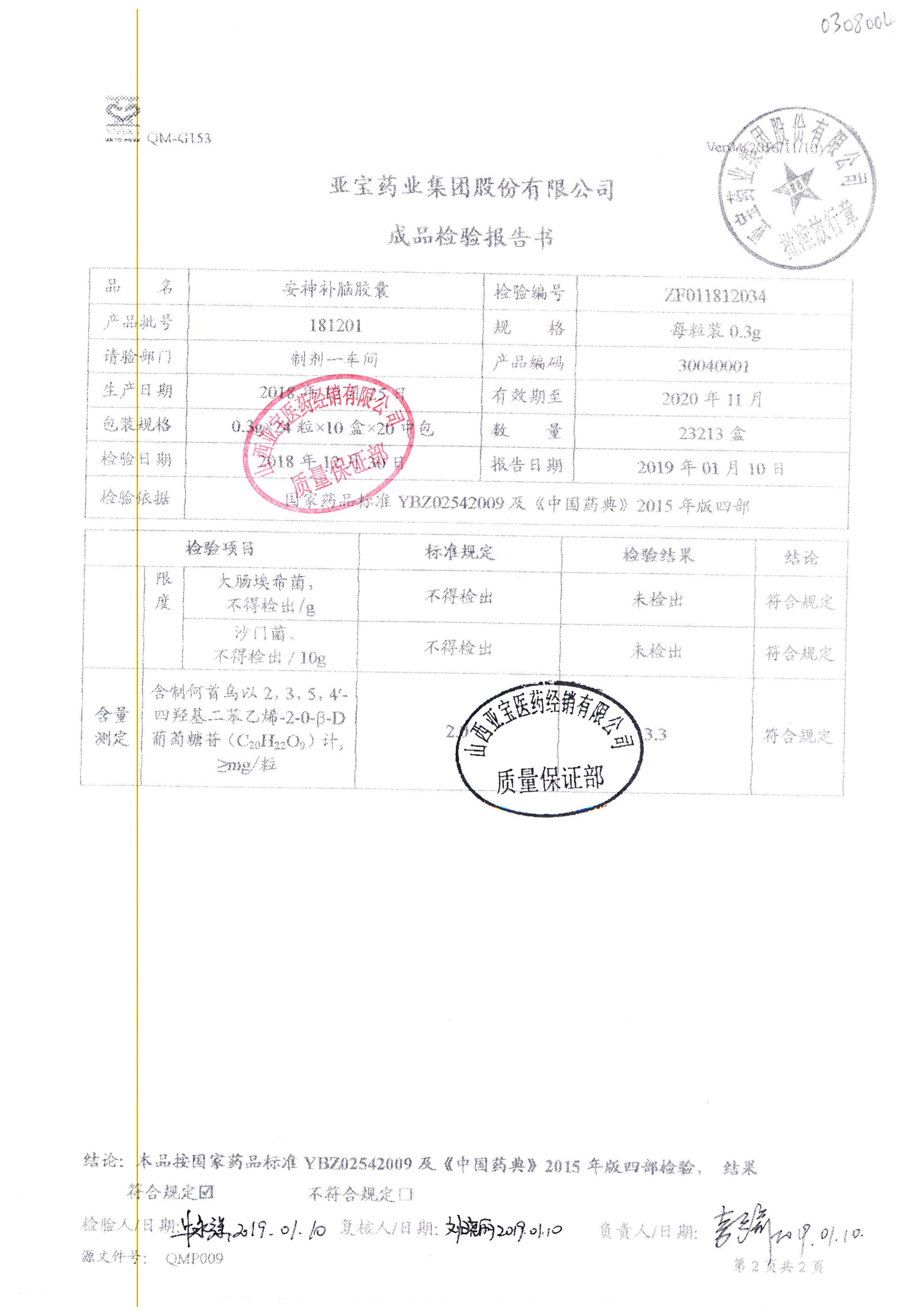 安神補腦膠囊 0.3g*24s 181201(2/2) 查看詳情