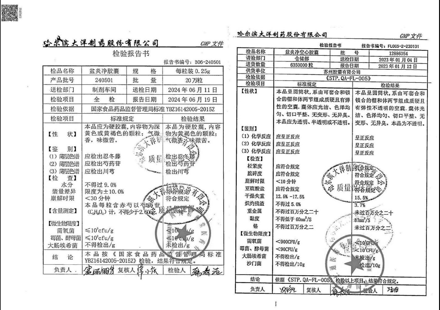 名稱 規(guī)格 批號 藥檢報告