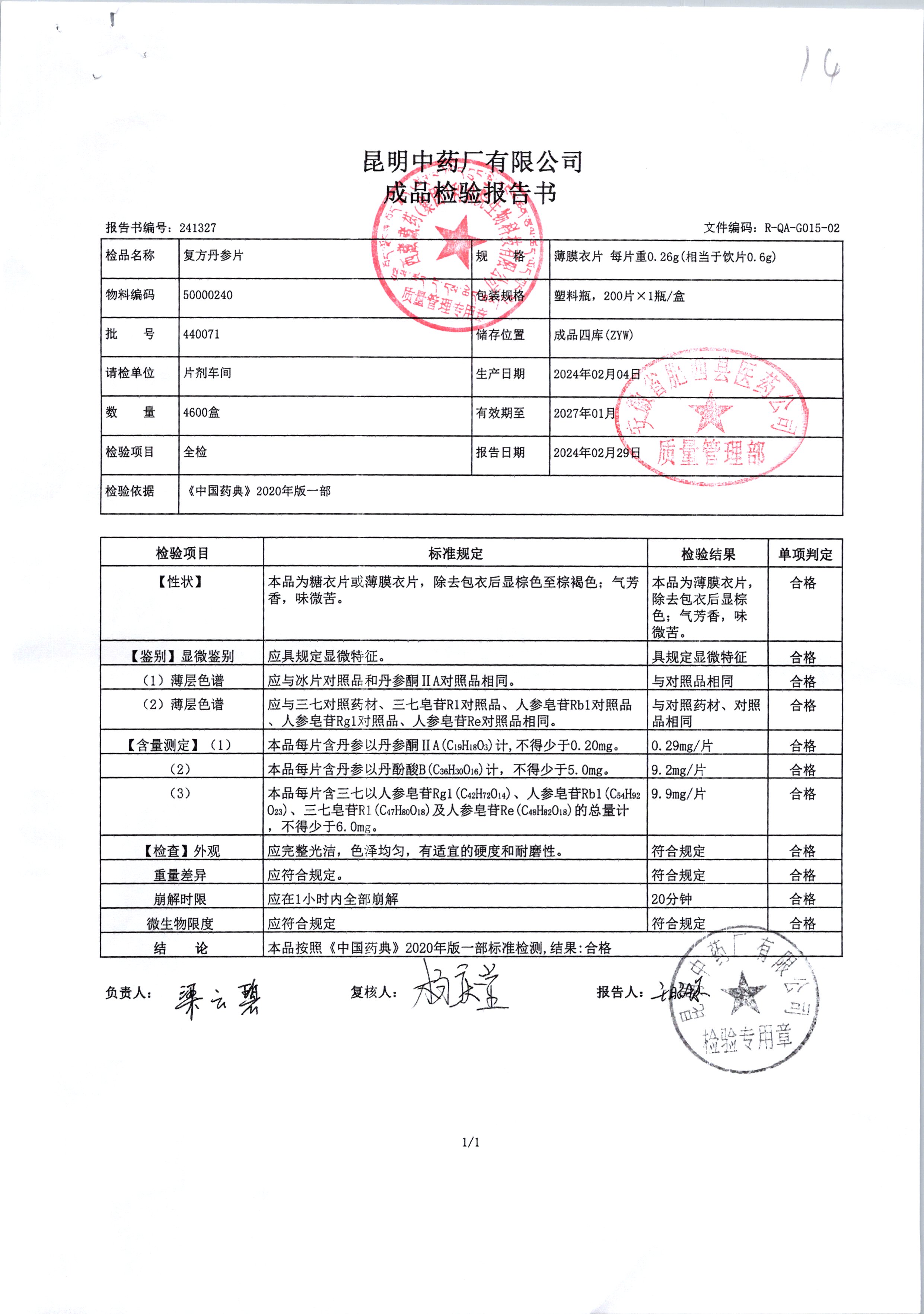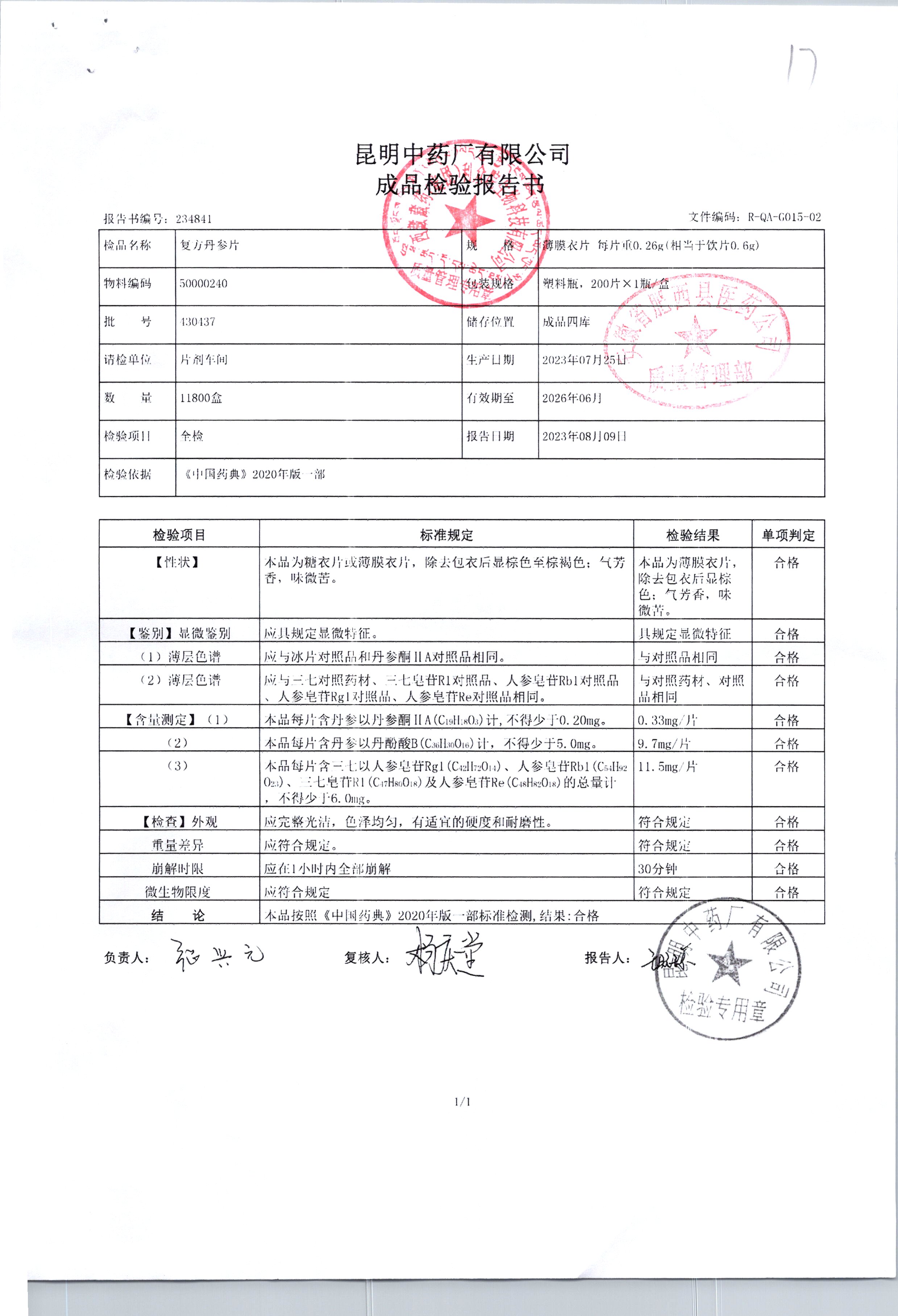 | 復方丹參片 | 0.26g | 440071 | 查看詳情 |