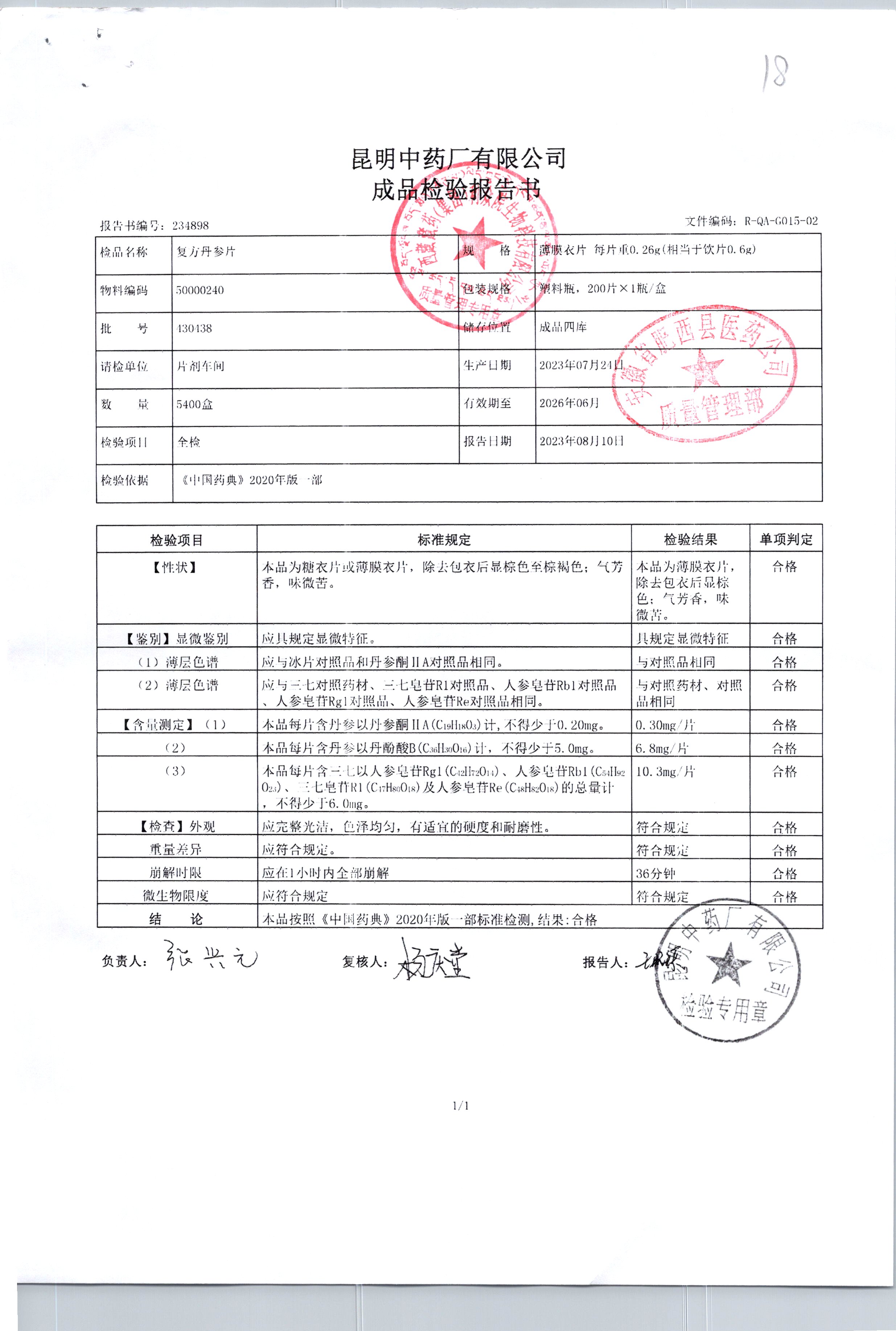 | 復方丹參片 | 0.26g | 430438 | 查看詳情 |