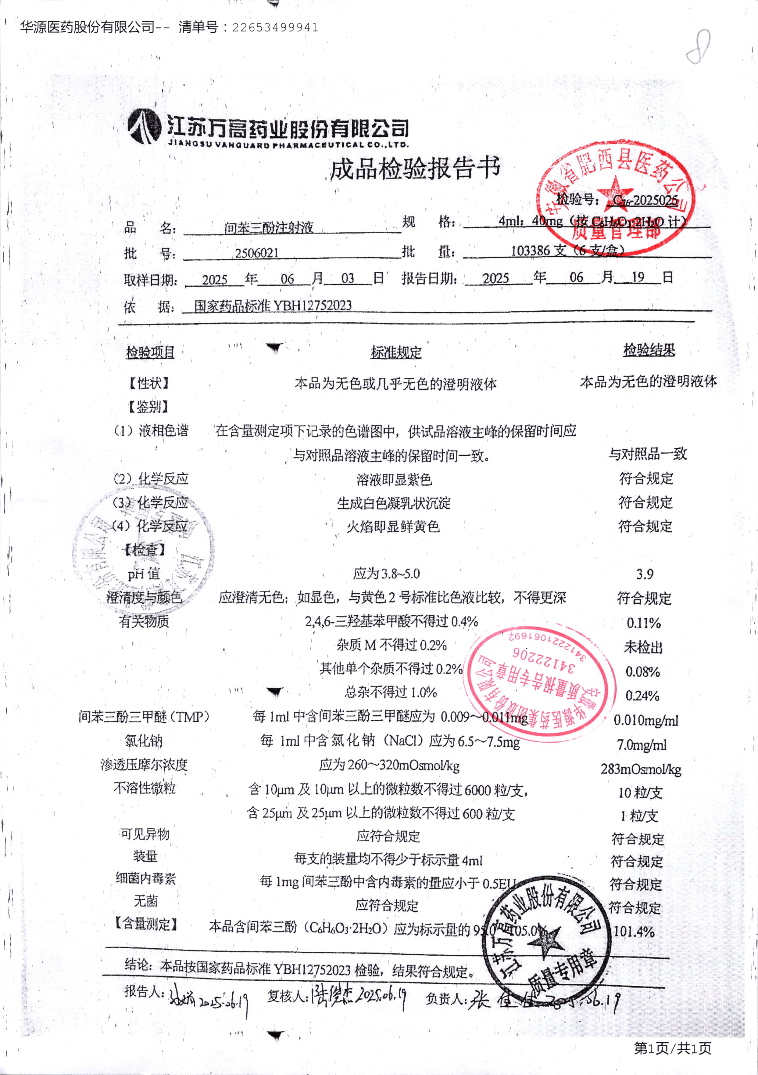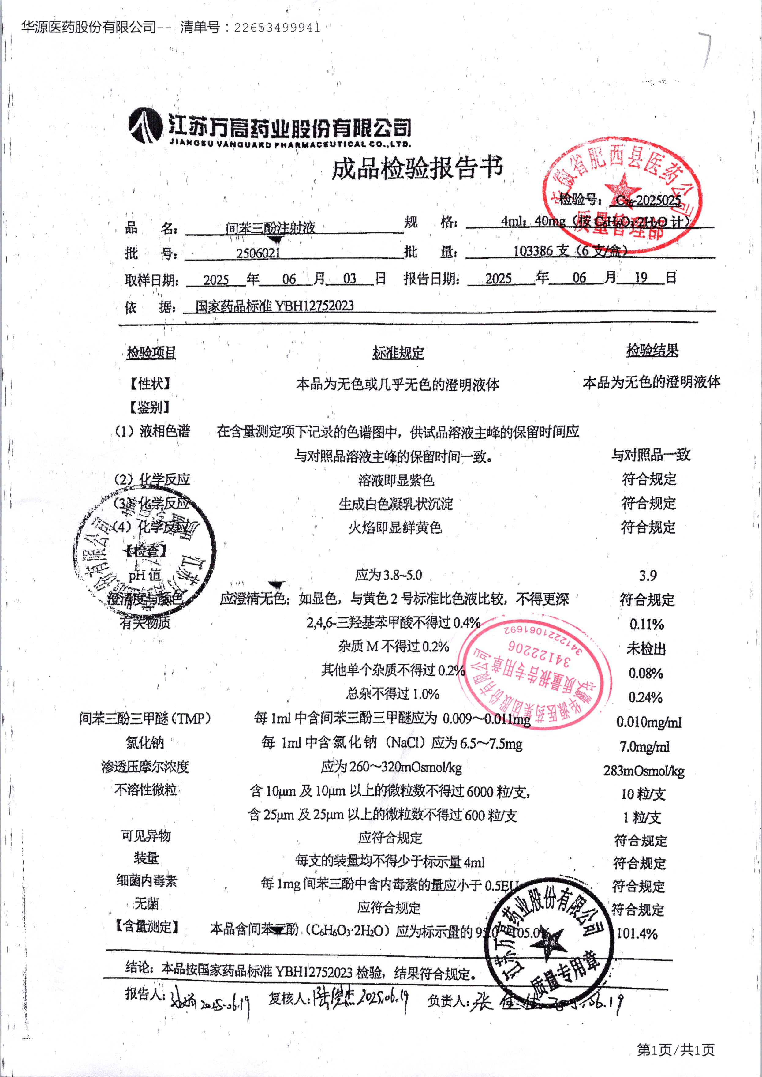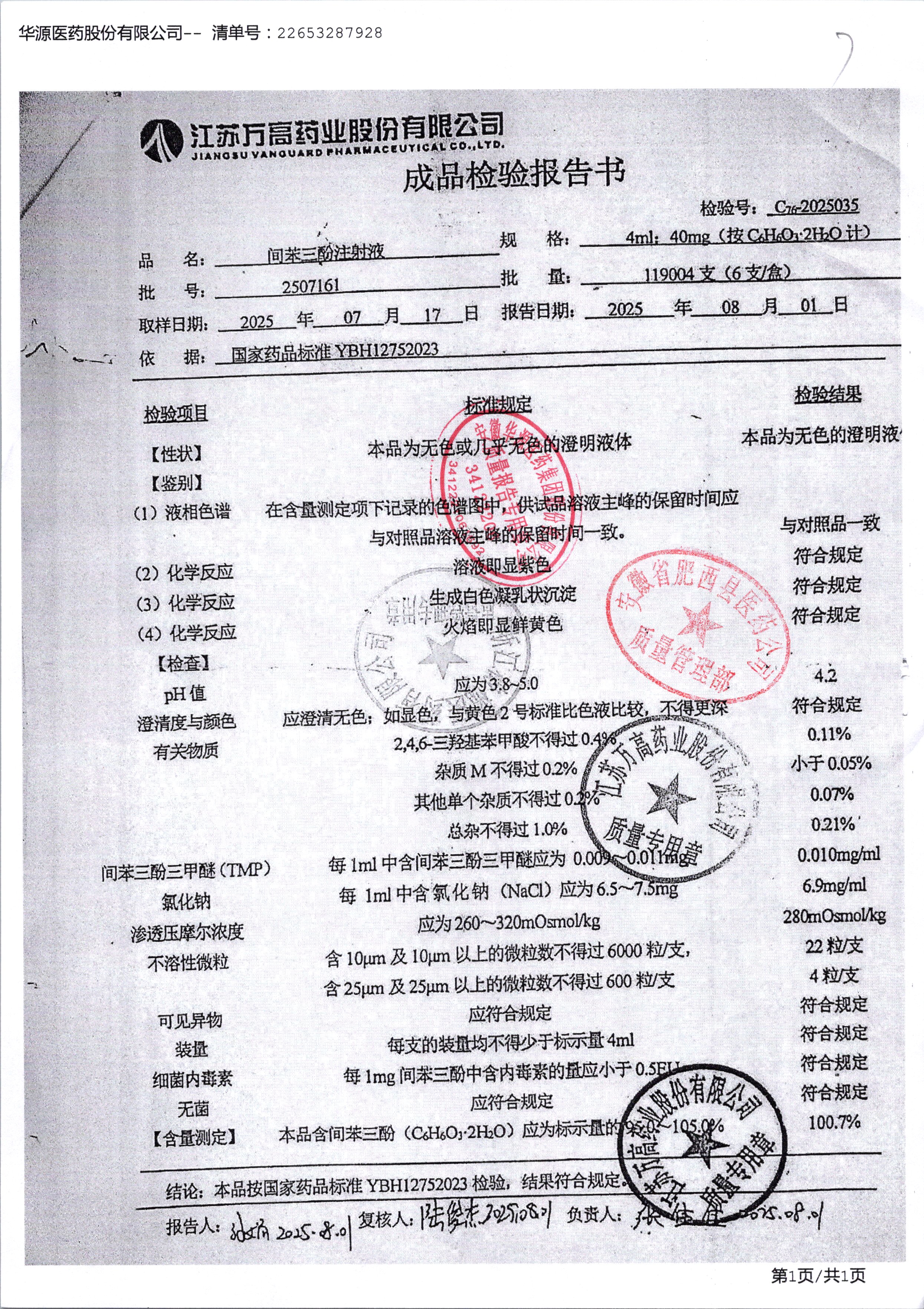 | 間苯三酚注射液 | 4ml:40mg | 2506021 | 查看詳情 |