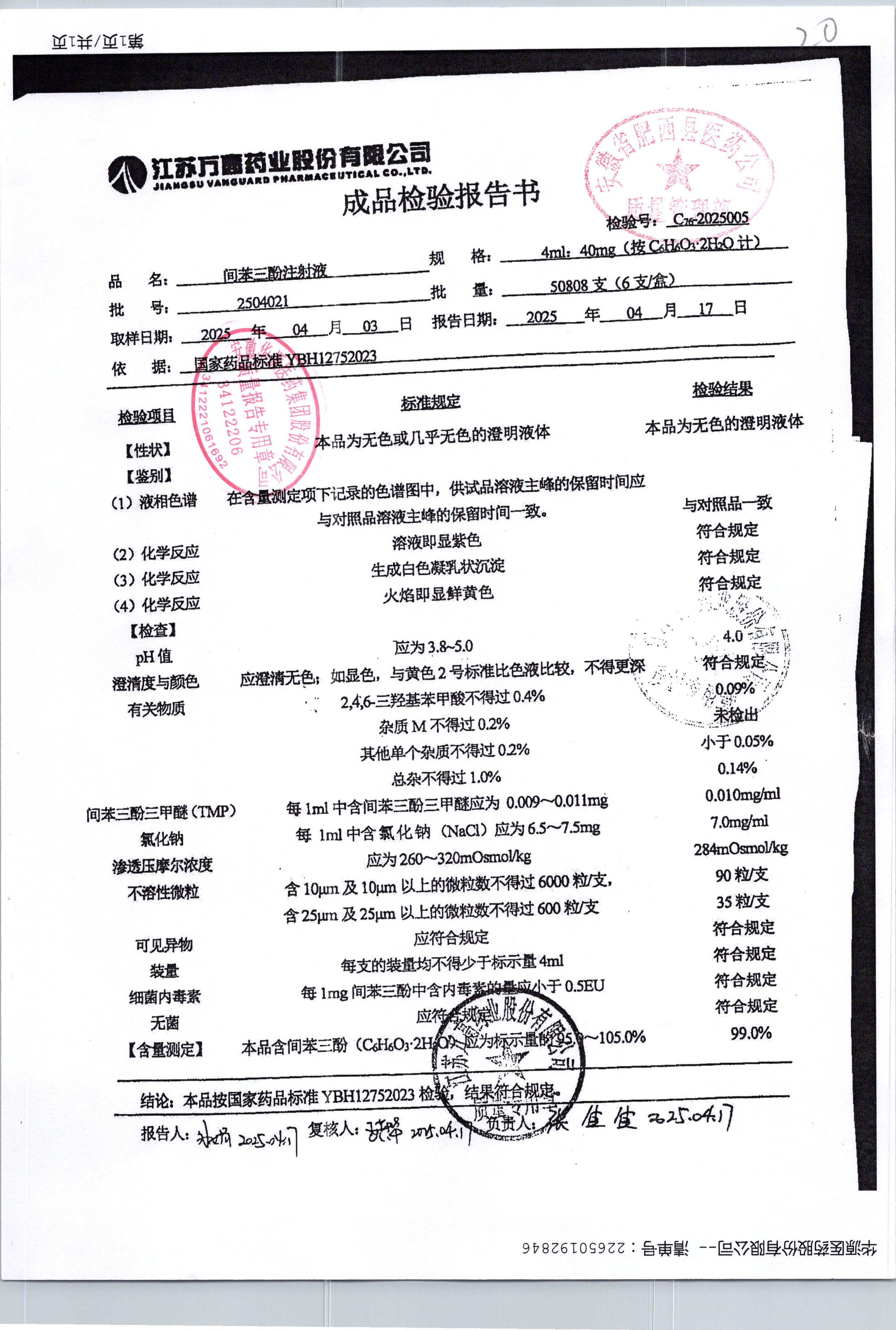 | 間苯三酚注射液 | 4ml:40mg | 2504021 | 查看詳情 |