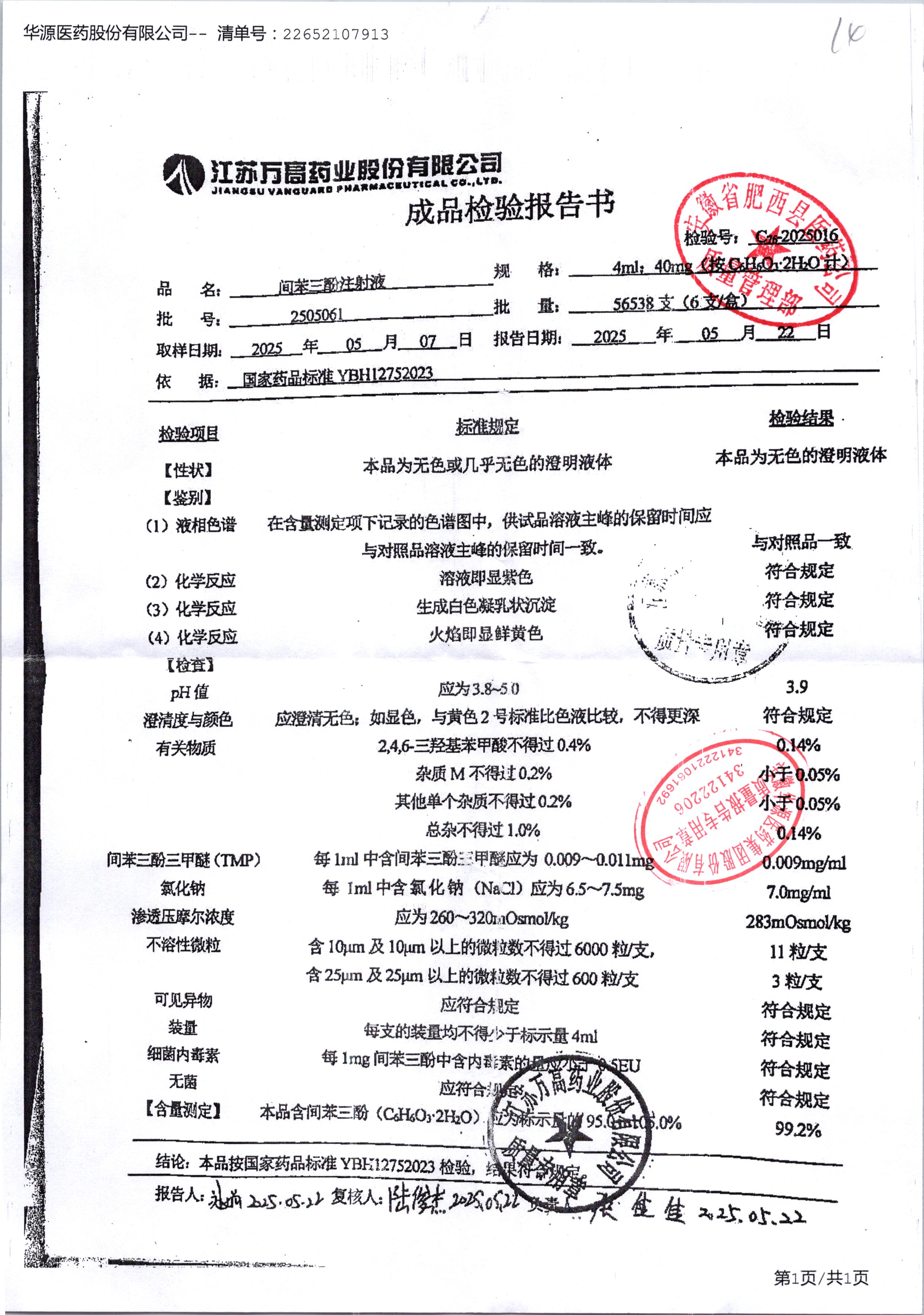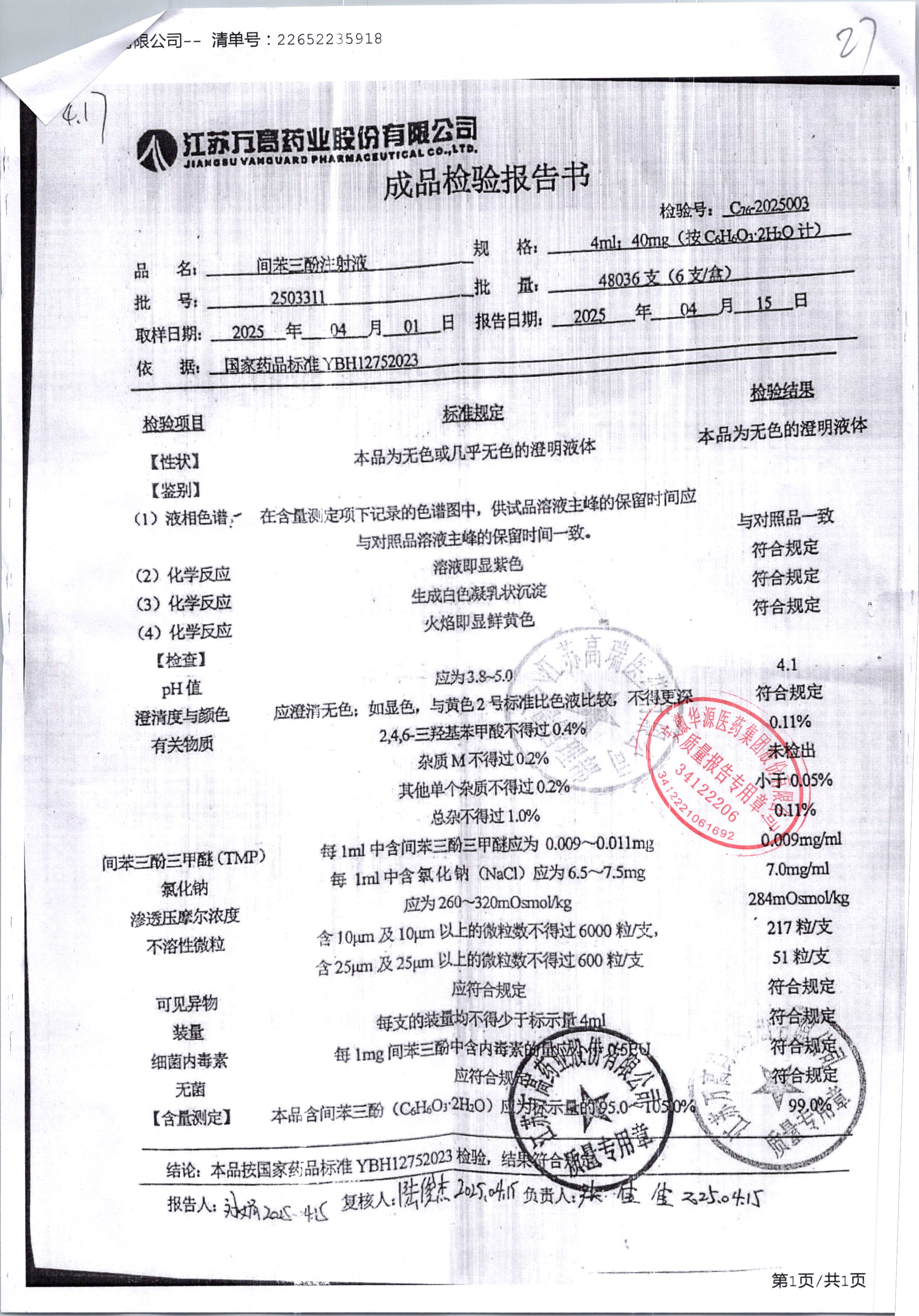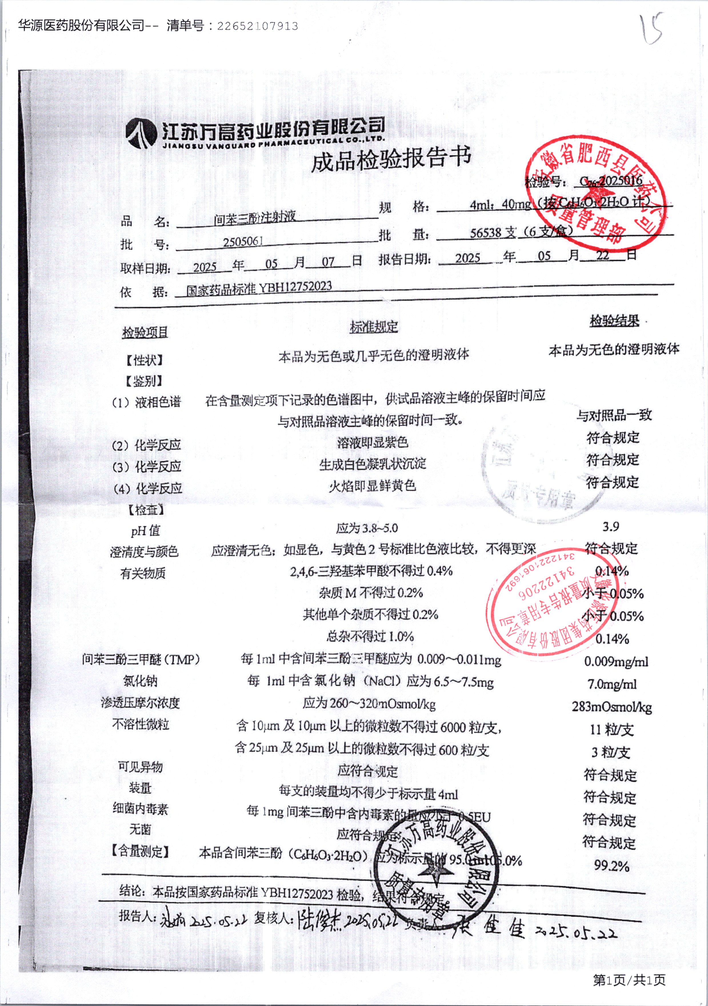 | 間苯三酚注射液 | 4ml:40mg | 2505041 | 查看詳情 |
