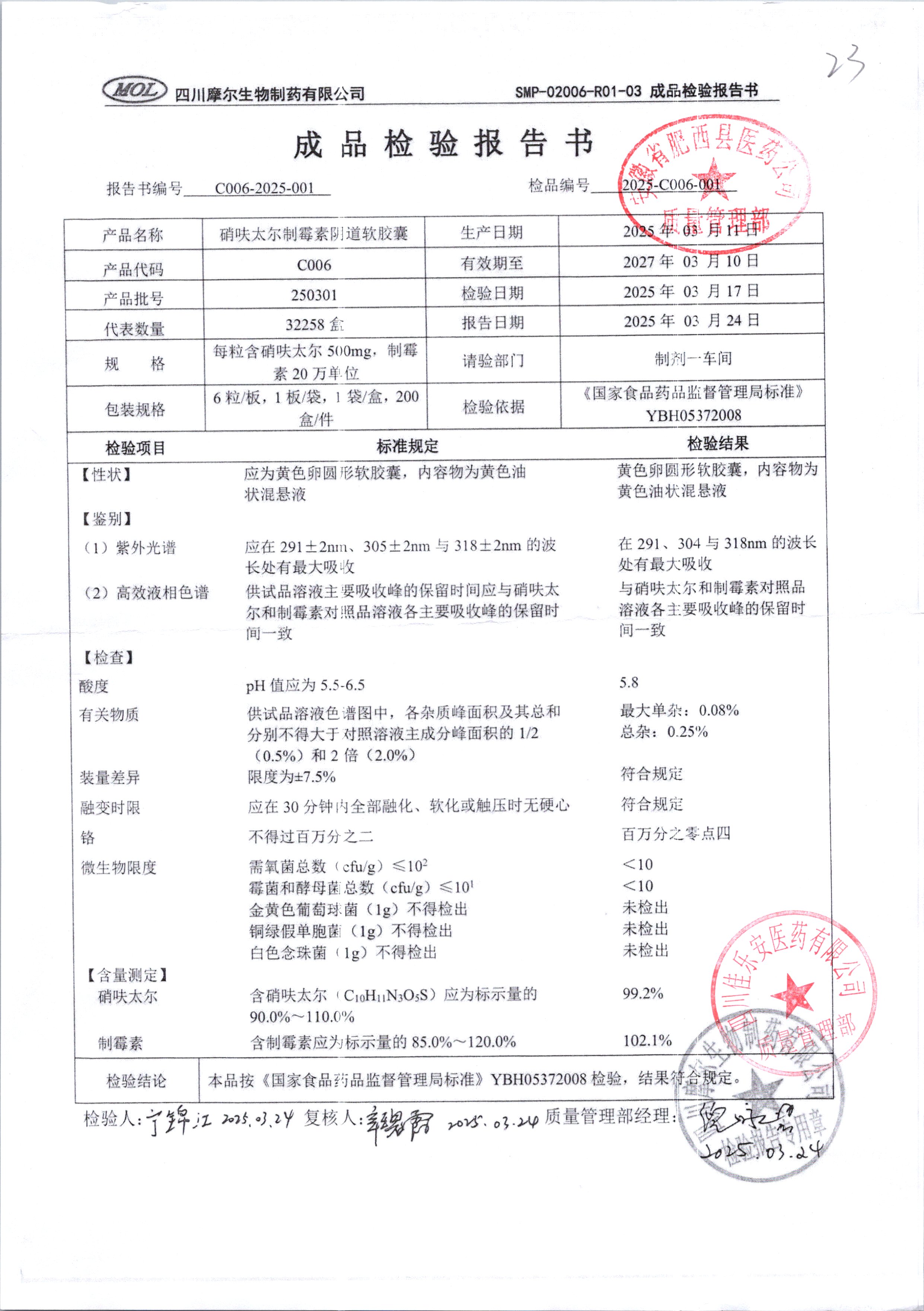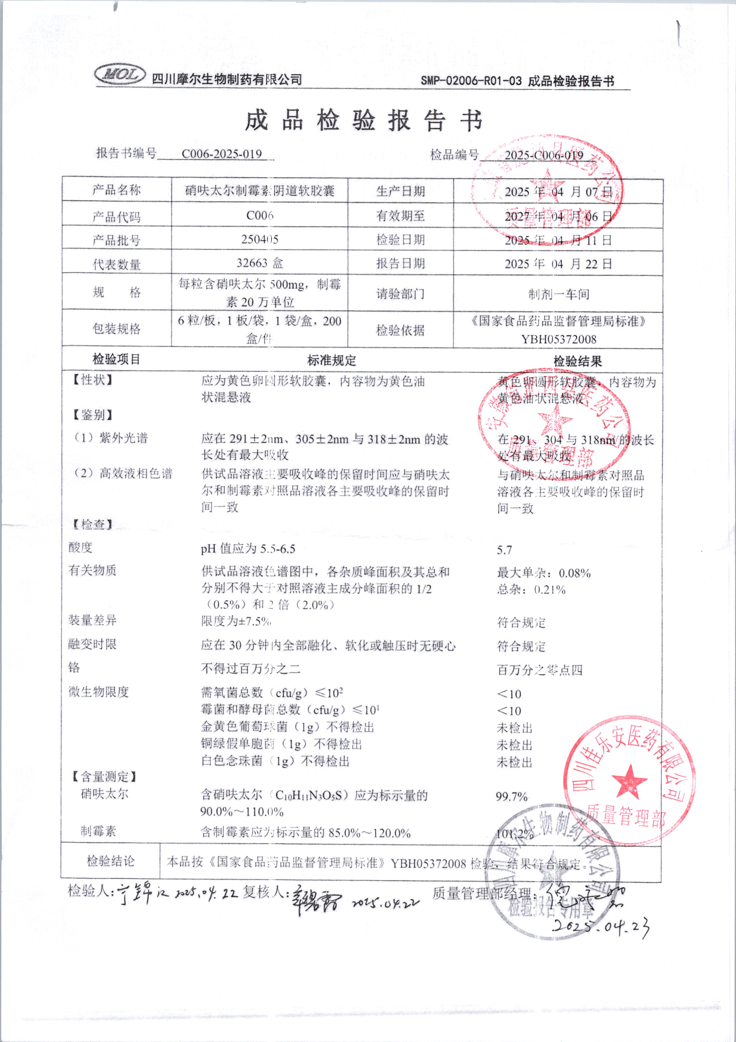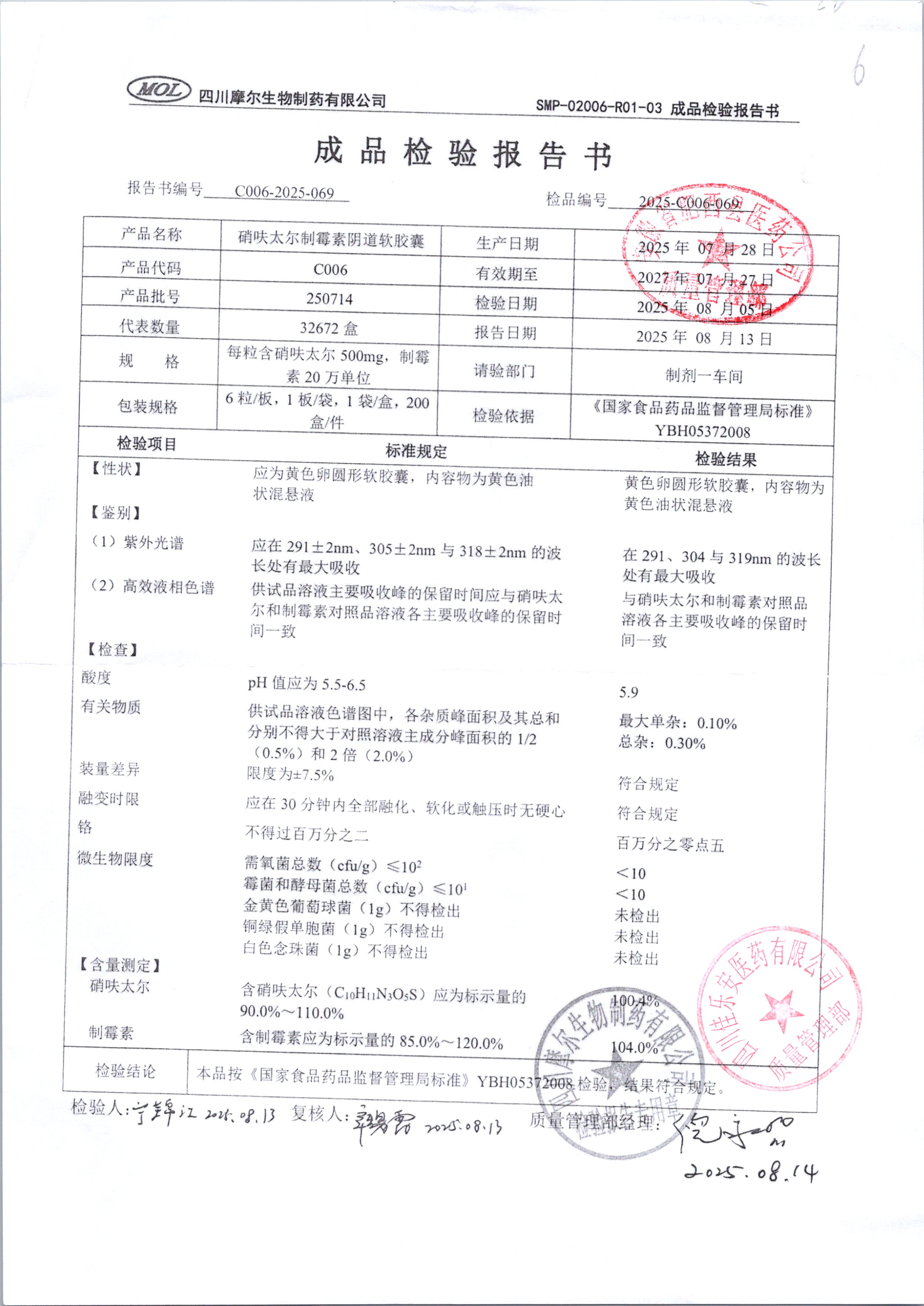 硝呋太爾制霉素陰道軟膠囊 500mg*6粒 250405 查看詳情