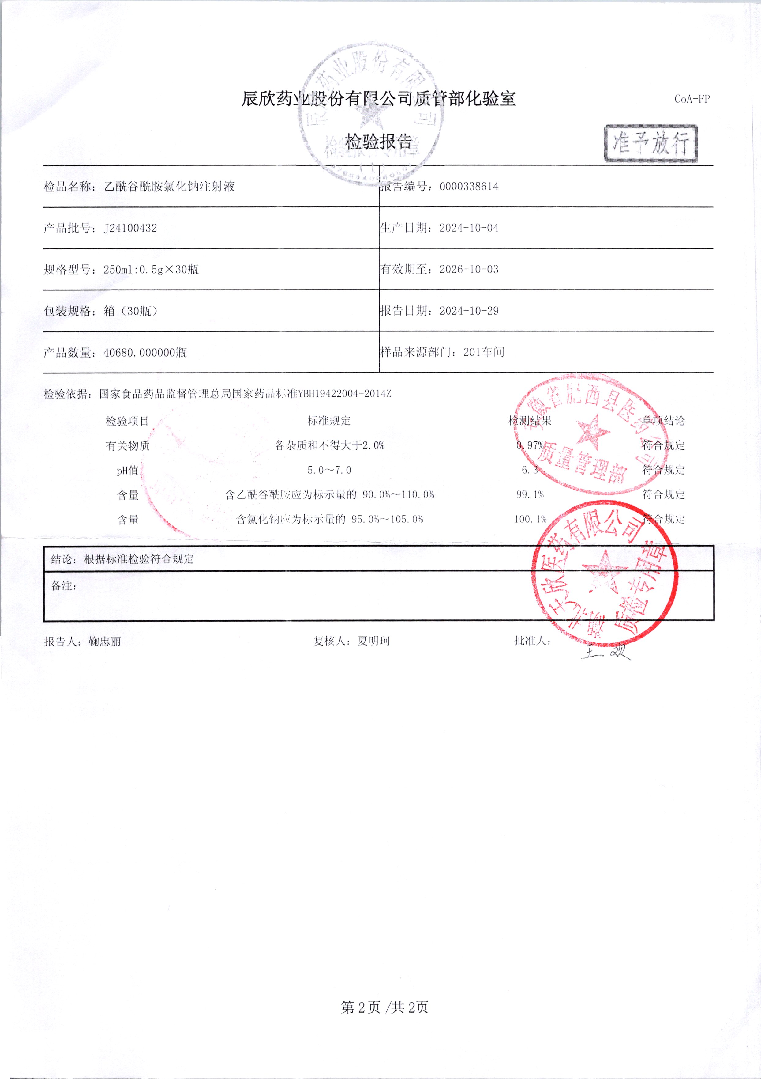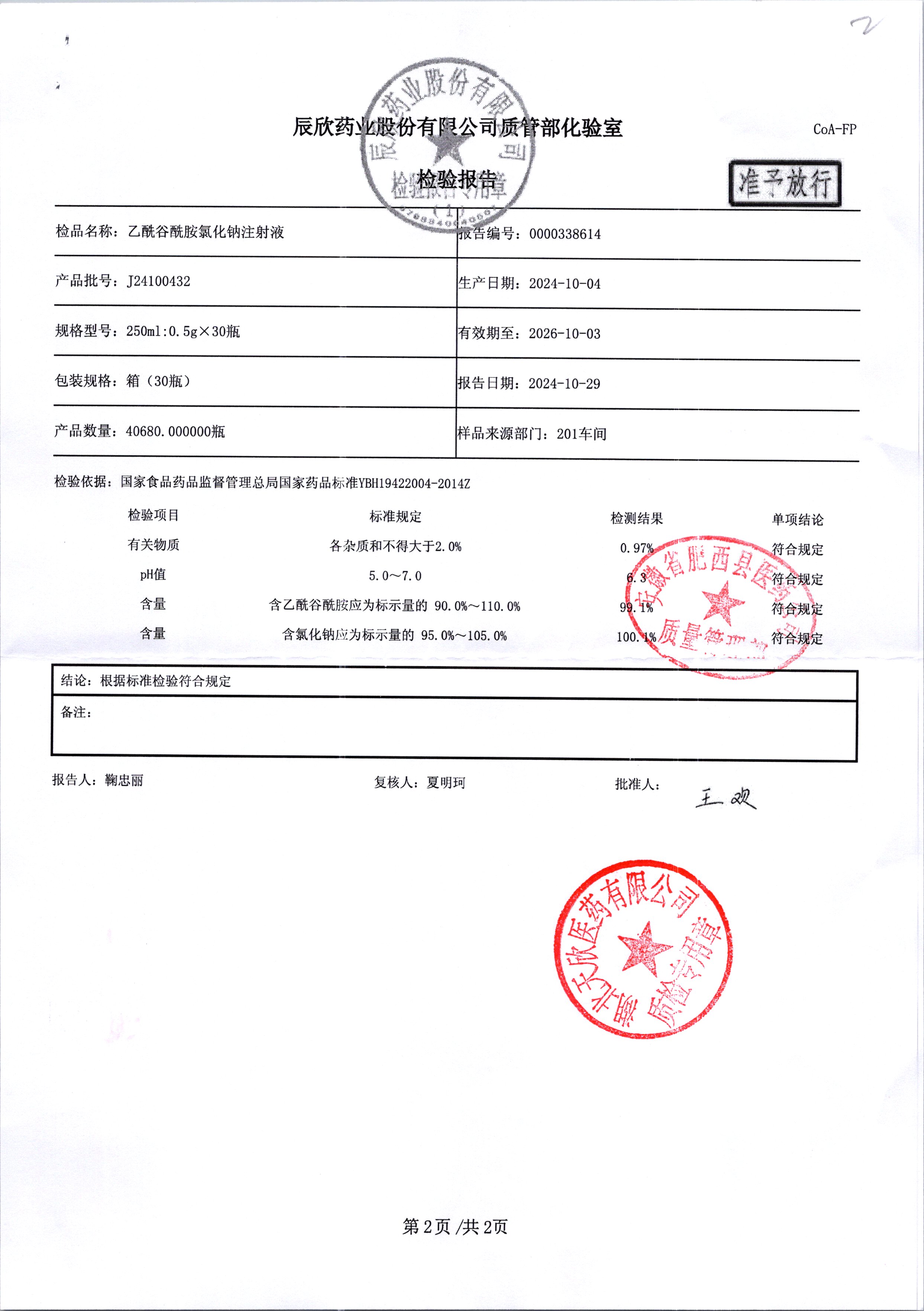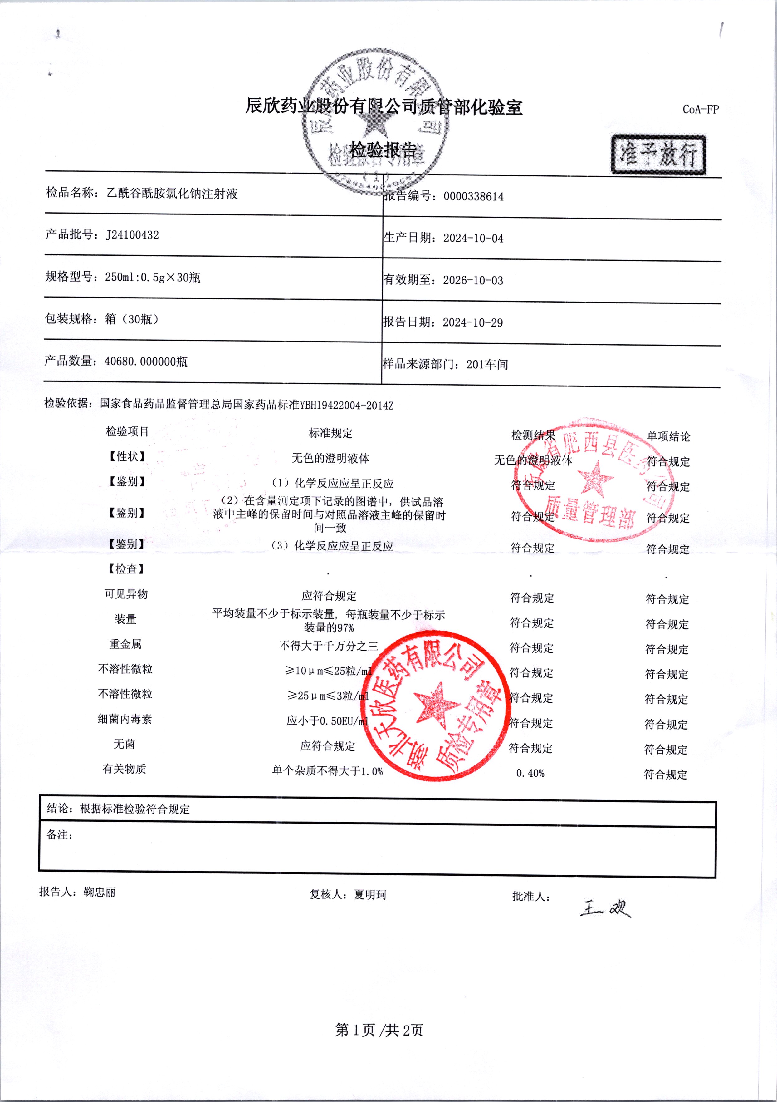 | 乙酰谷酰胺氯化鈉注射液 | 250ml | J24100432/2 | 查看詳情 |