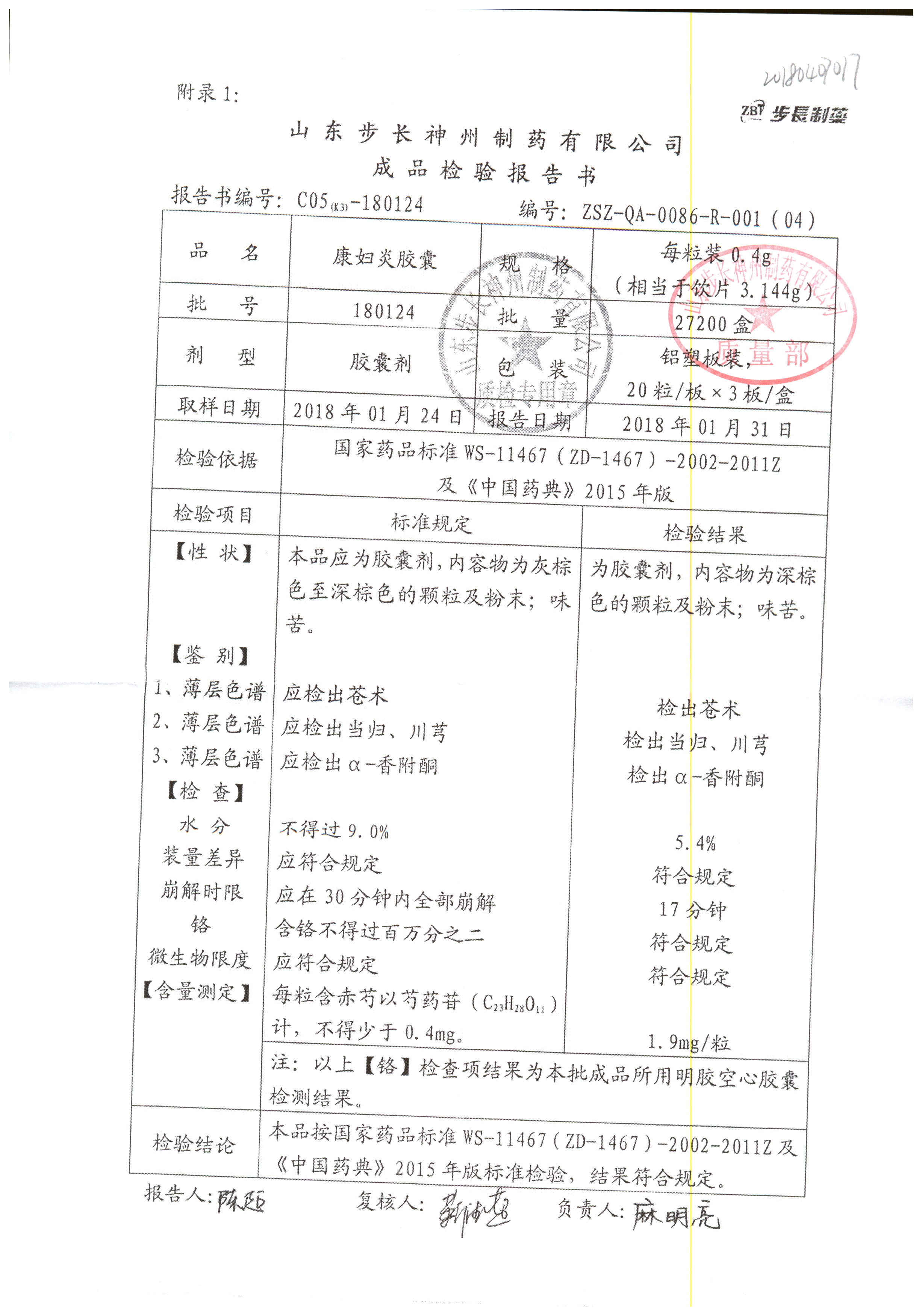 | 康婦炎膠囊 | 0.4g*60粒 | 180124 | 查看詳情 |