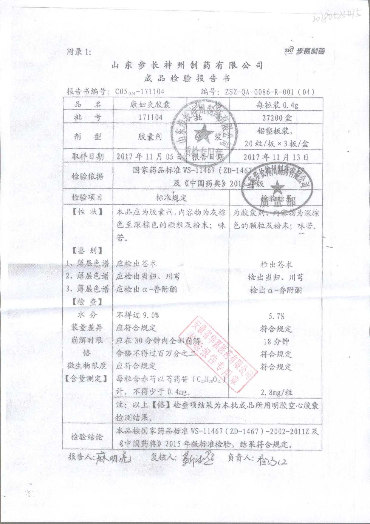 | 康婦炎膠囊 | 0.4g*60粒 | 171104 | 查看詳情 |