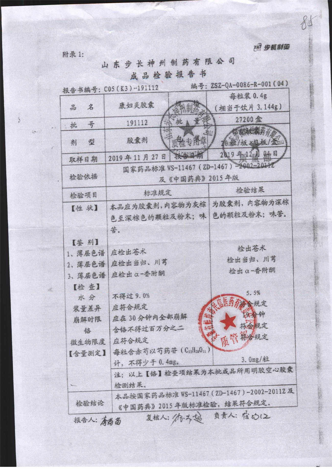 | 康婦炎膠囊 | 0.4g*60粒 | 191112 | 查看詳情 |