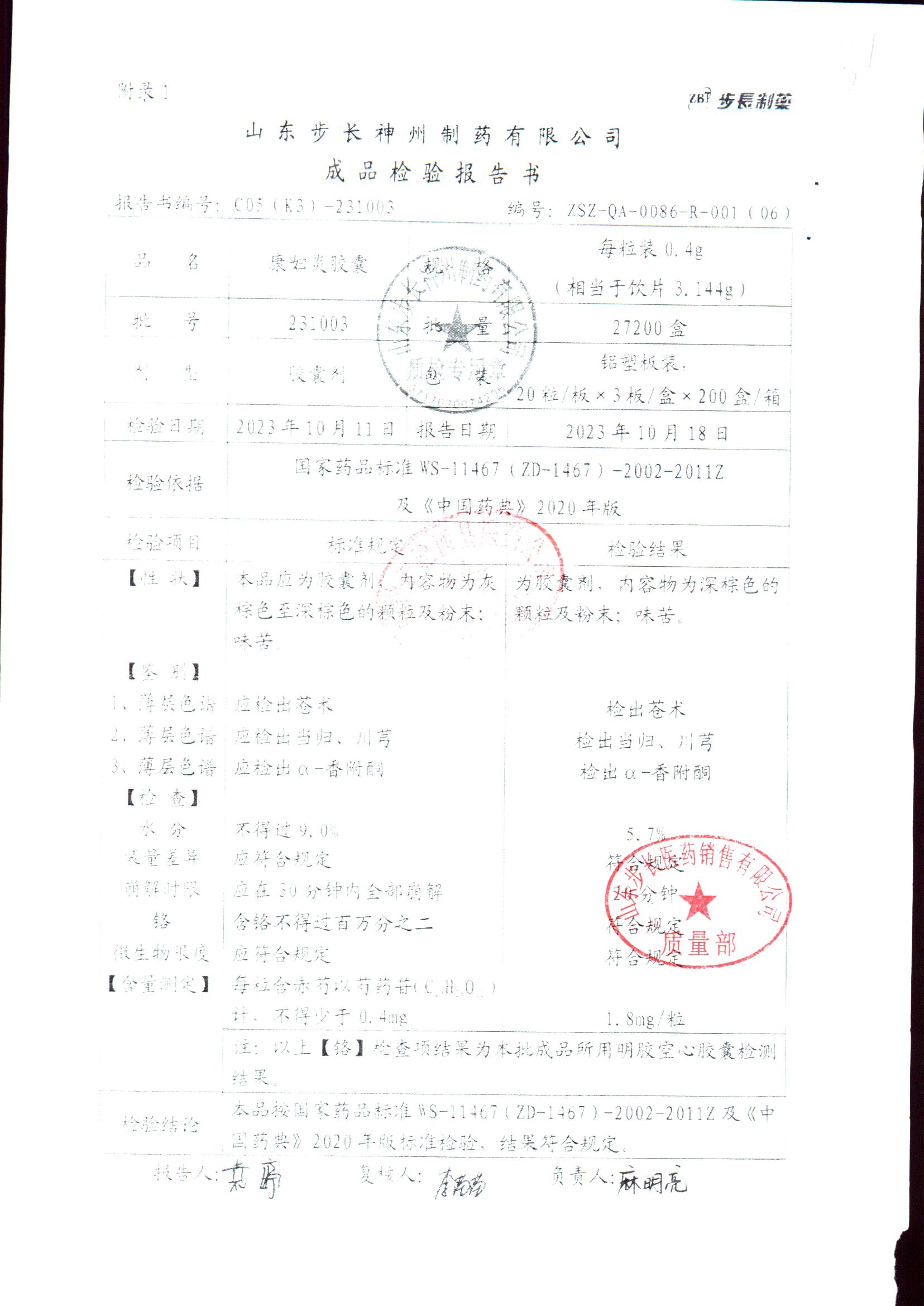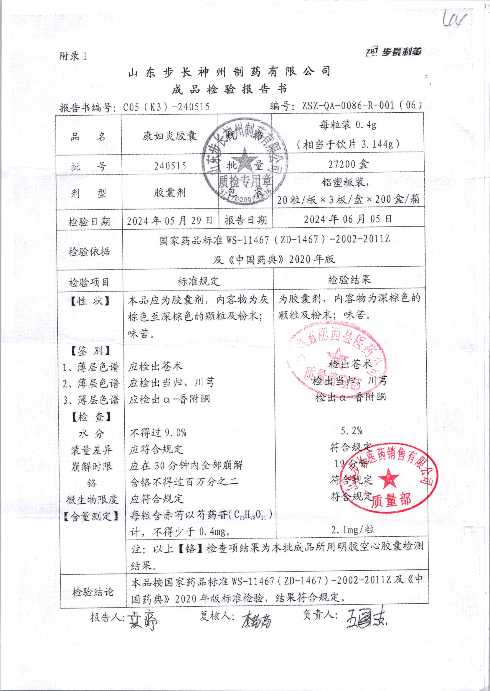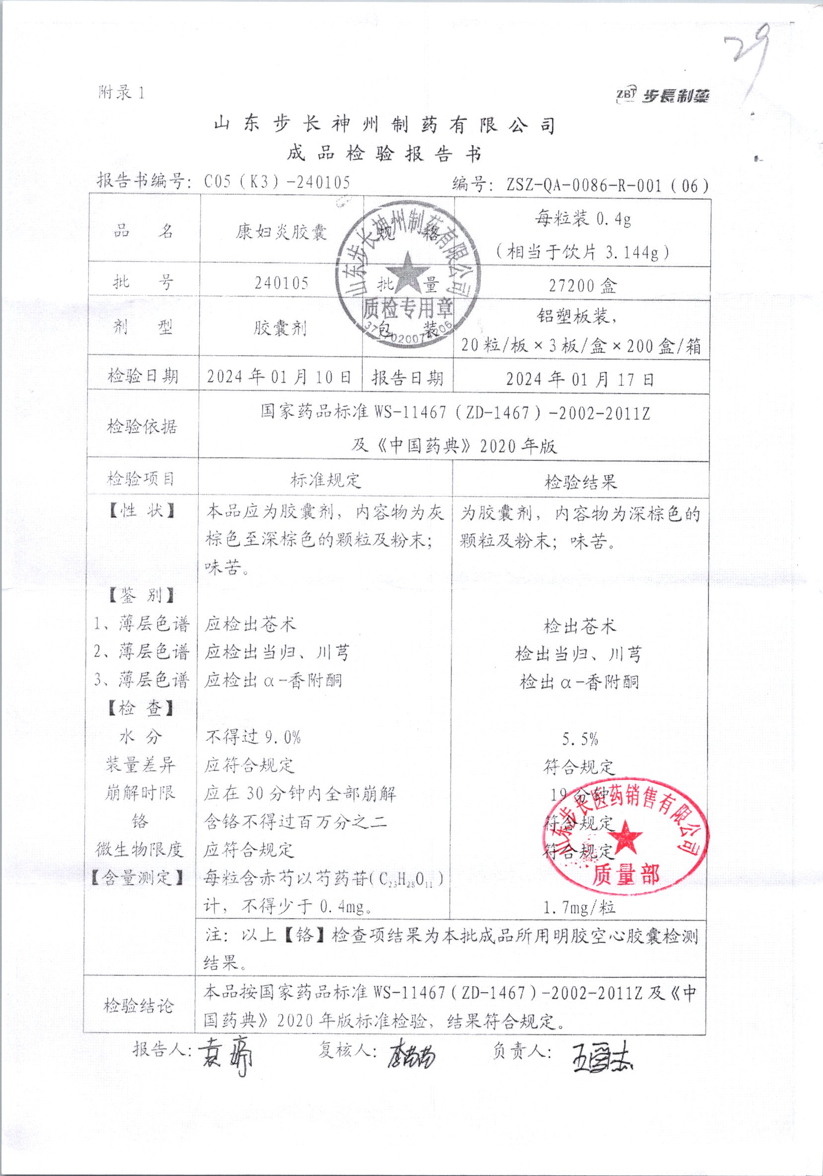 | 康婦炎膠囊 | 0.4g*60粒 | 240608 | 查看詳情 |