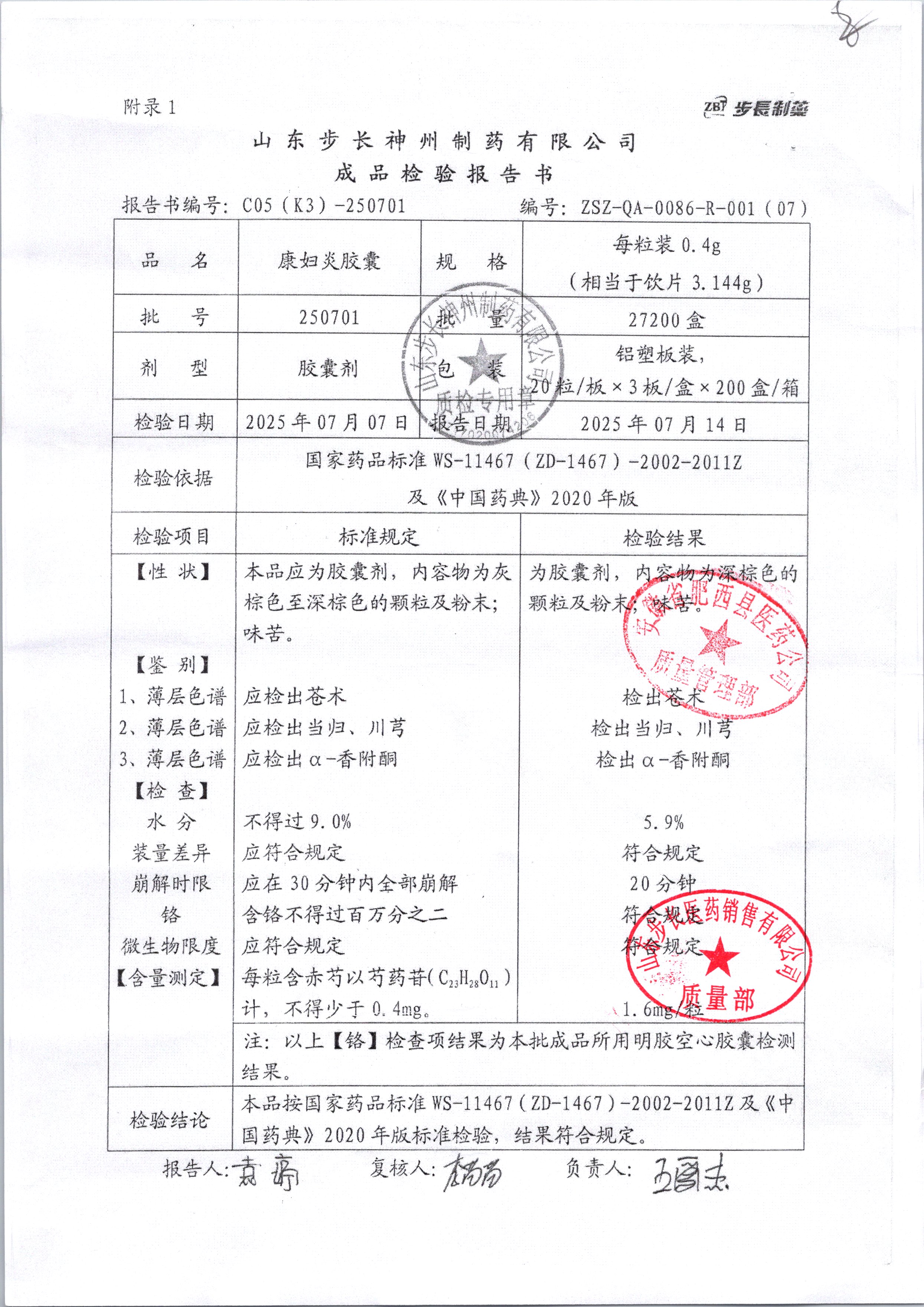 | 康婦炎膠囊 | 0.4g*60粒 | 250701 | 查看詳情 |