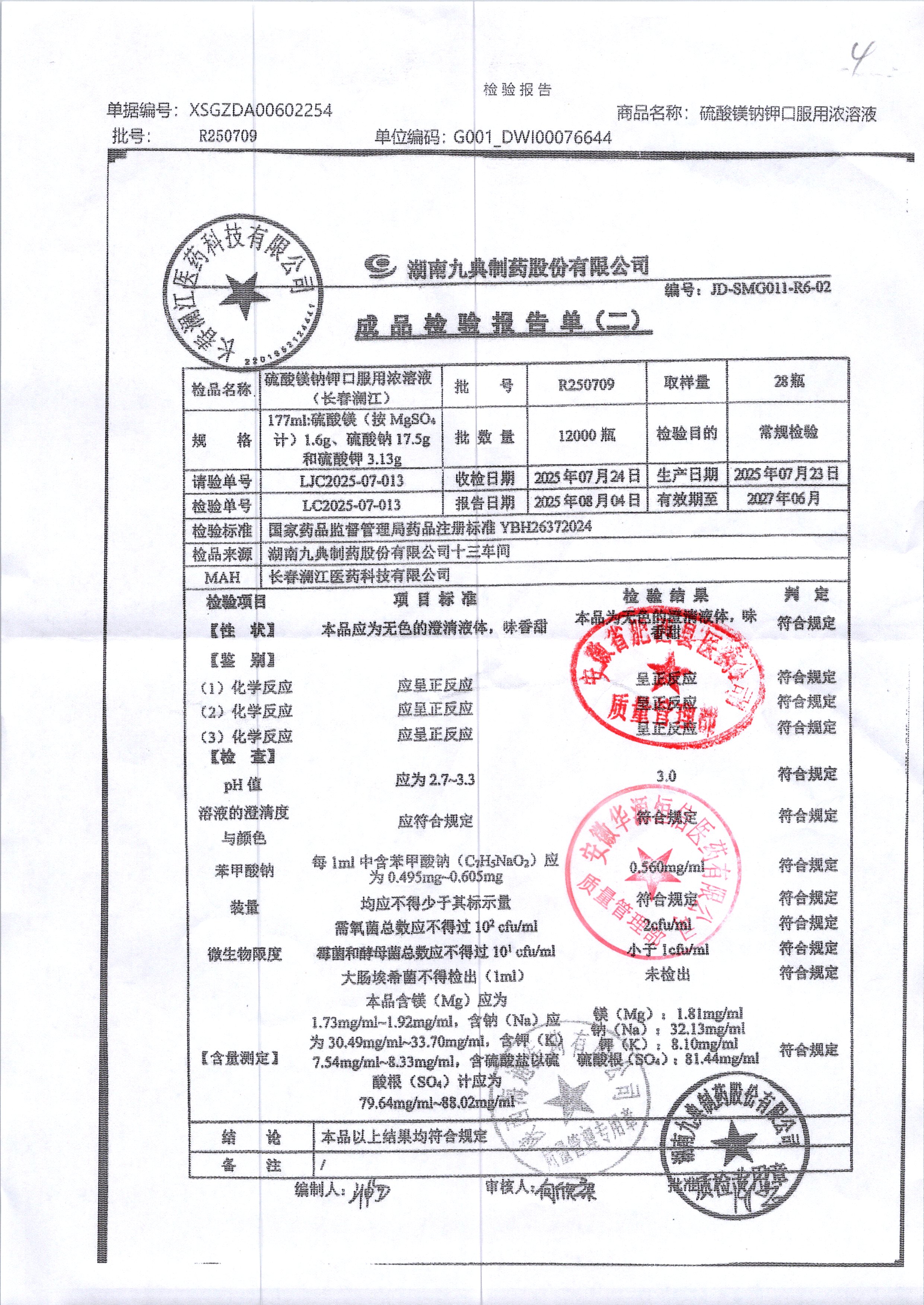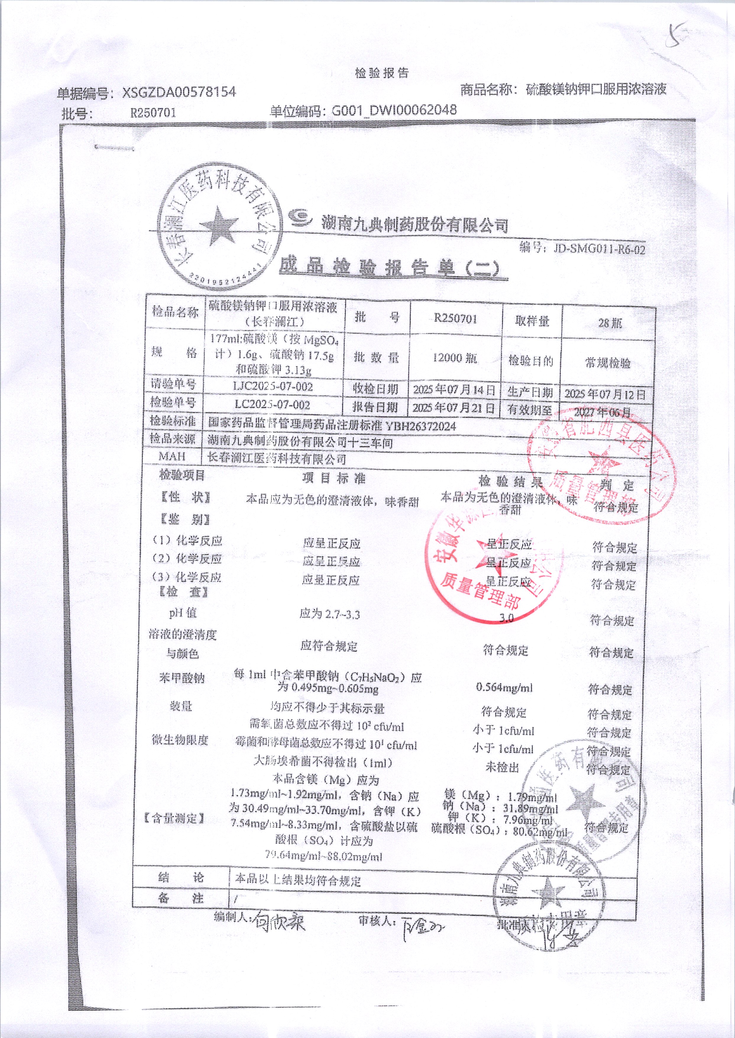 硫酸鎂鈉鉀口服用濃溶液 177ml R250712 查看詳情