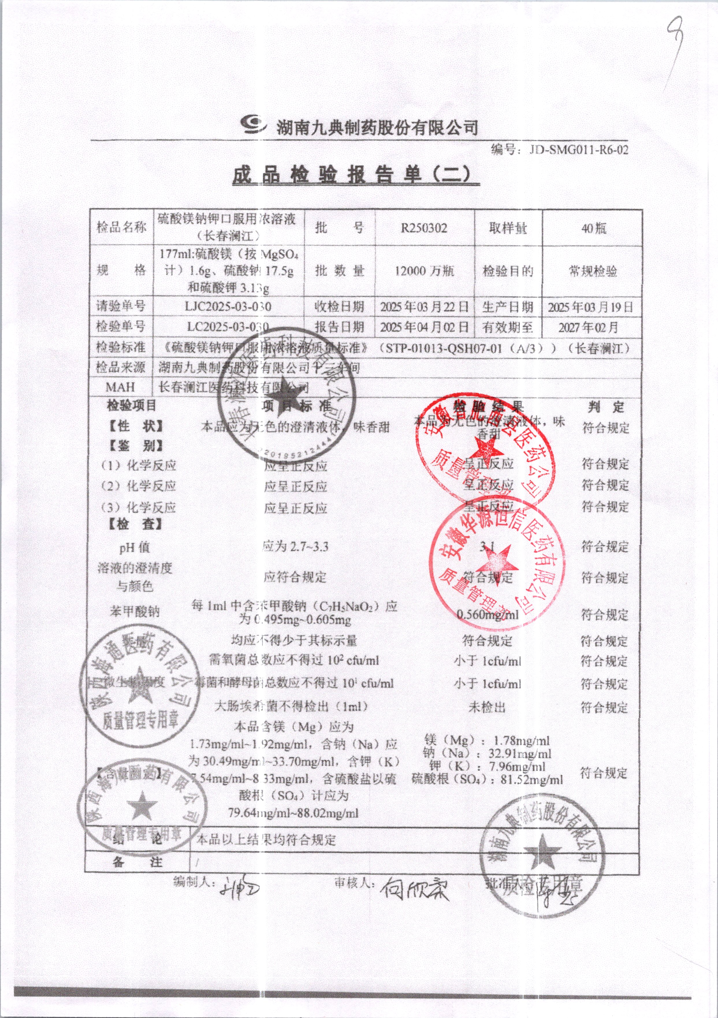 硫酸鎂鈉鉀口服用濃溶液 177ml R250302 查看詳情