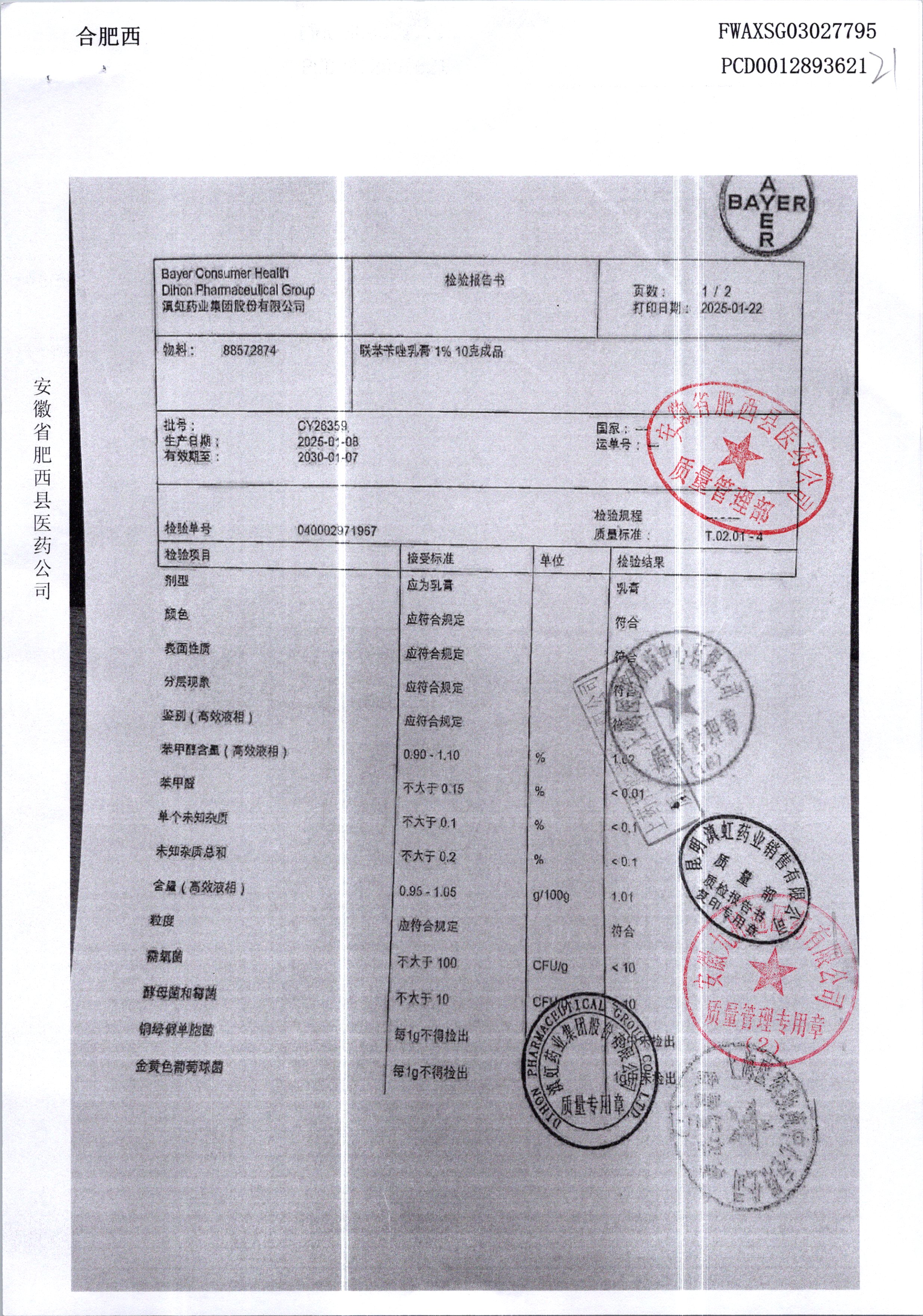 | 聯苯芐唑乳膏 | 1% | CY26359/2 | 查看詳情 |